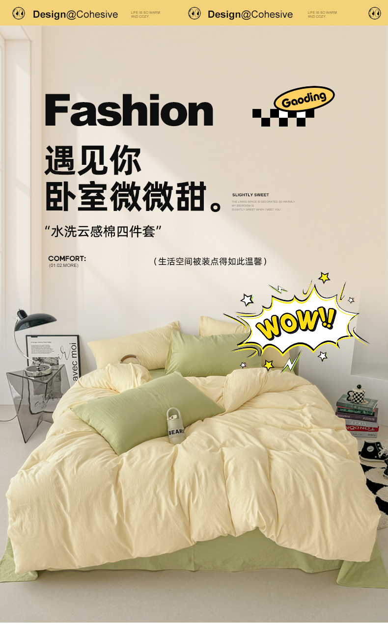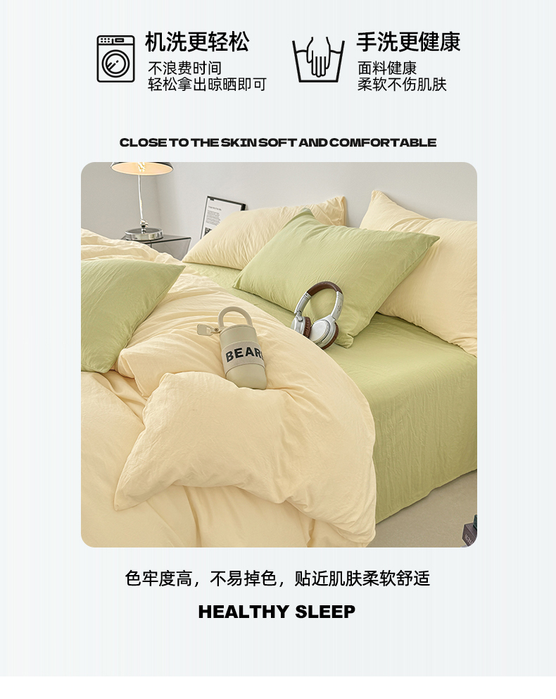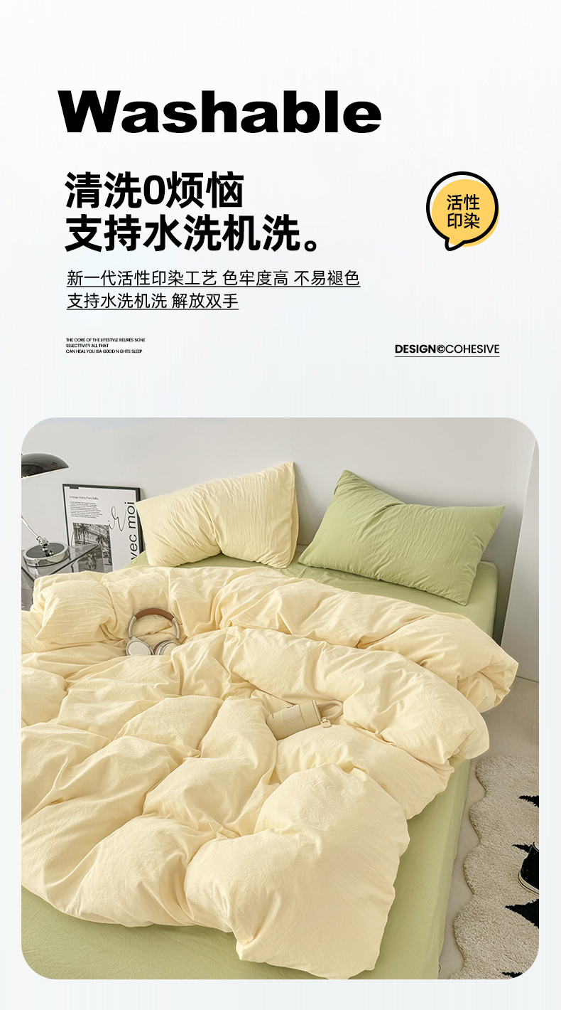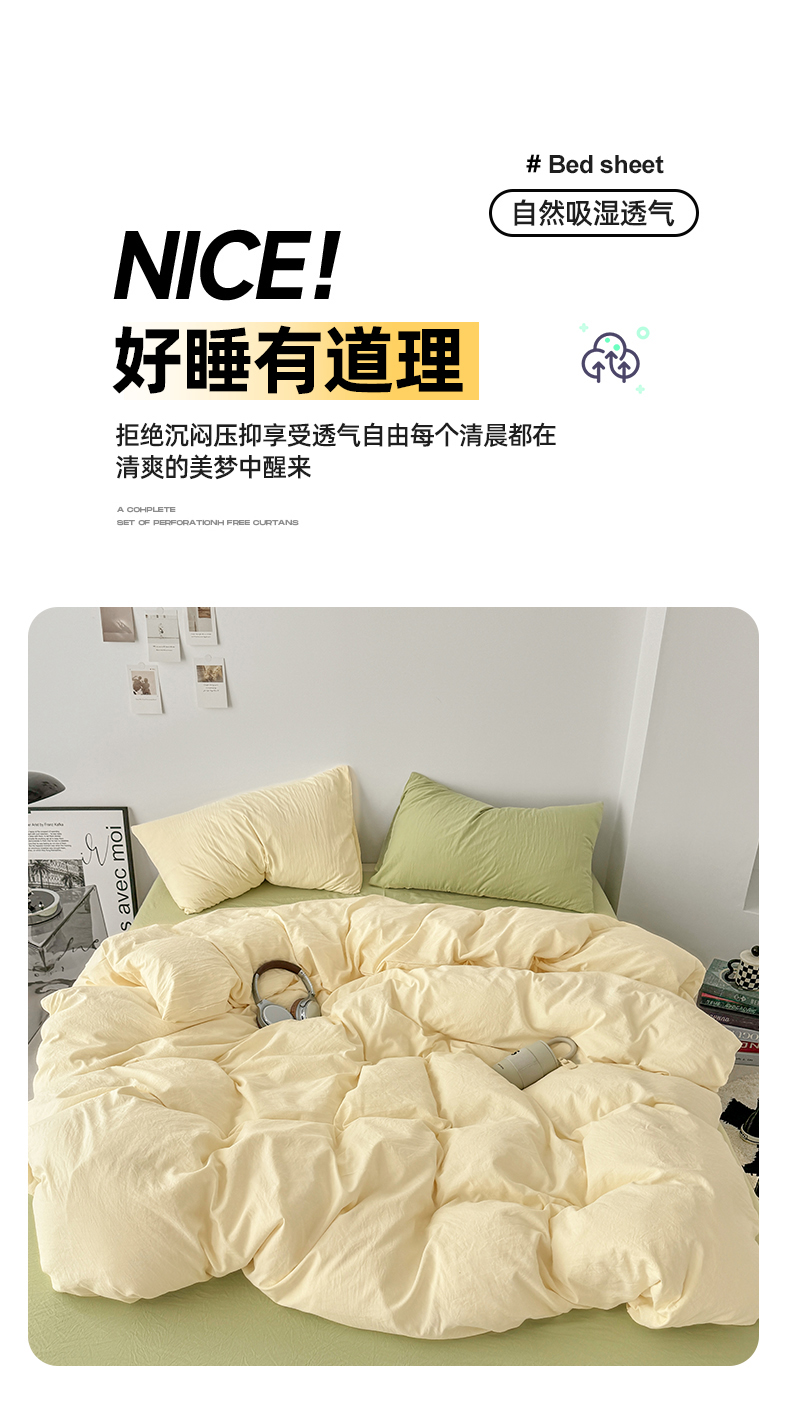 当前位置: 91家纺网 > 商品网购 > 床品套件 > 四件套 > 水洗棉四件套 > 芷凡家纺 2025新款A类加厚水洗棉云朵棉四件套 浅鹅黄+抹茶