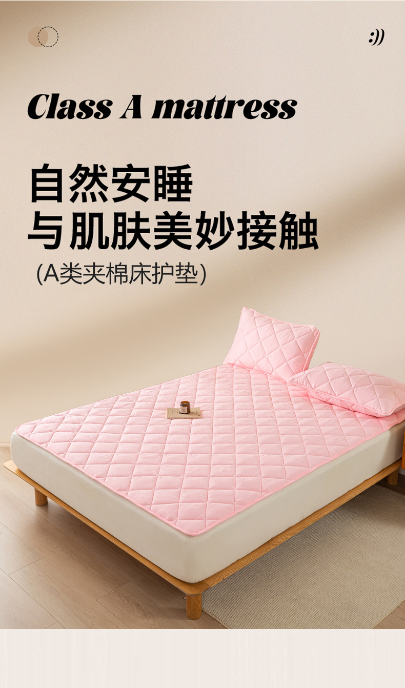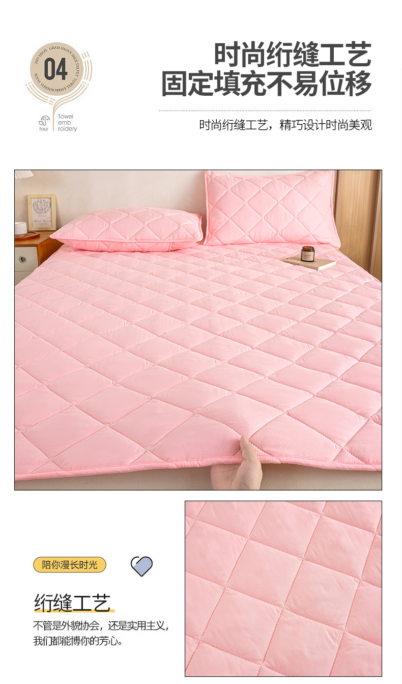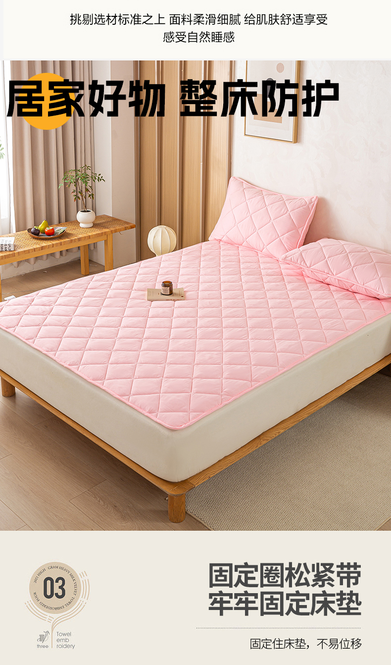 • 91家纺网 家纺一手货源 找家纺 憨豆家纺 2025新款水洗棉磨毛夹棉床笠四季床垫褥子床护垫薄款学生宿舍榻榻米垫被跨境加棉保护垫 床护垫-粉色