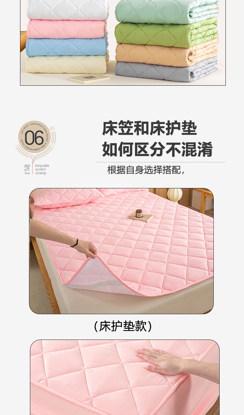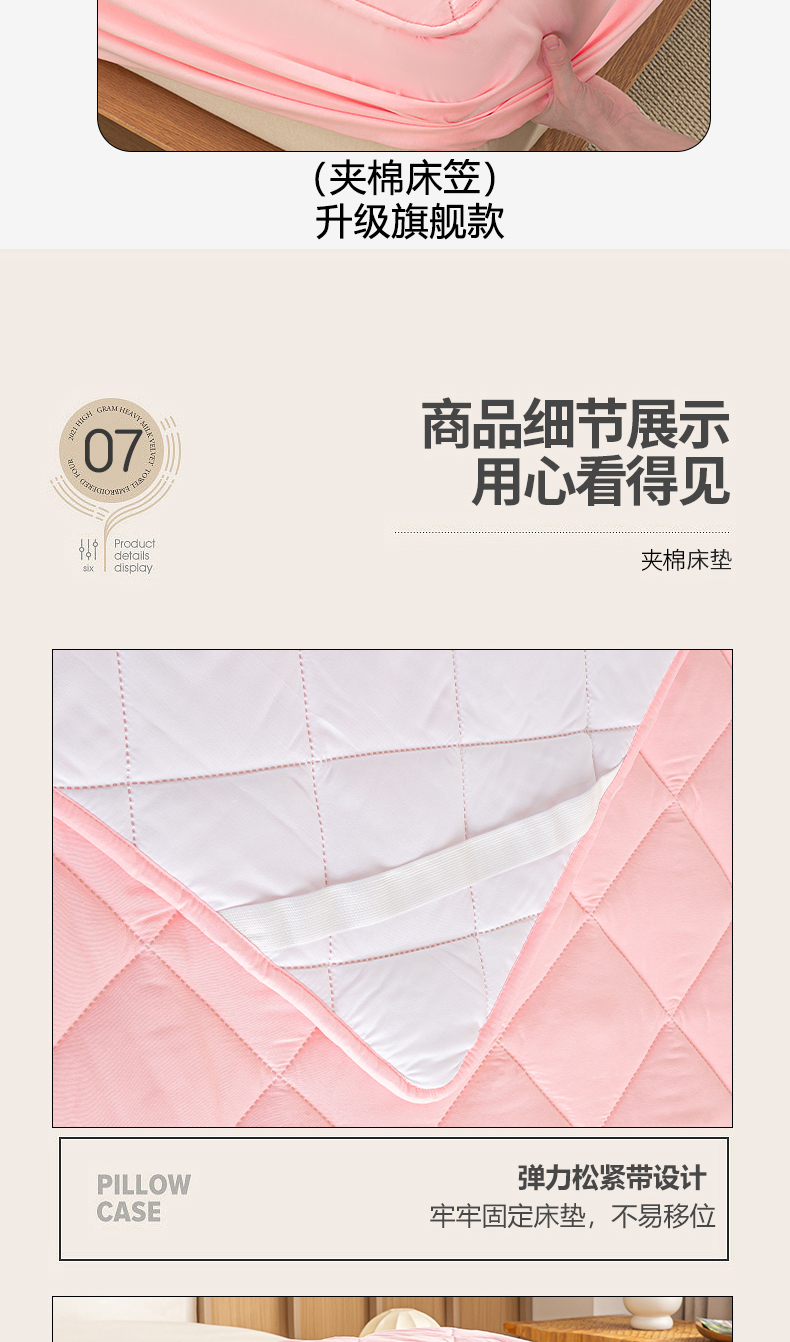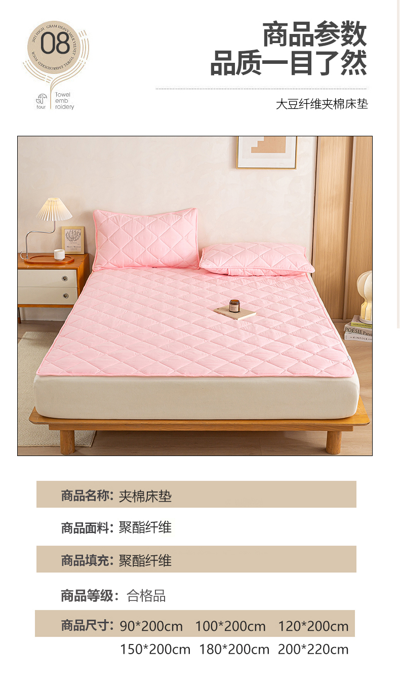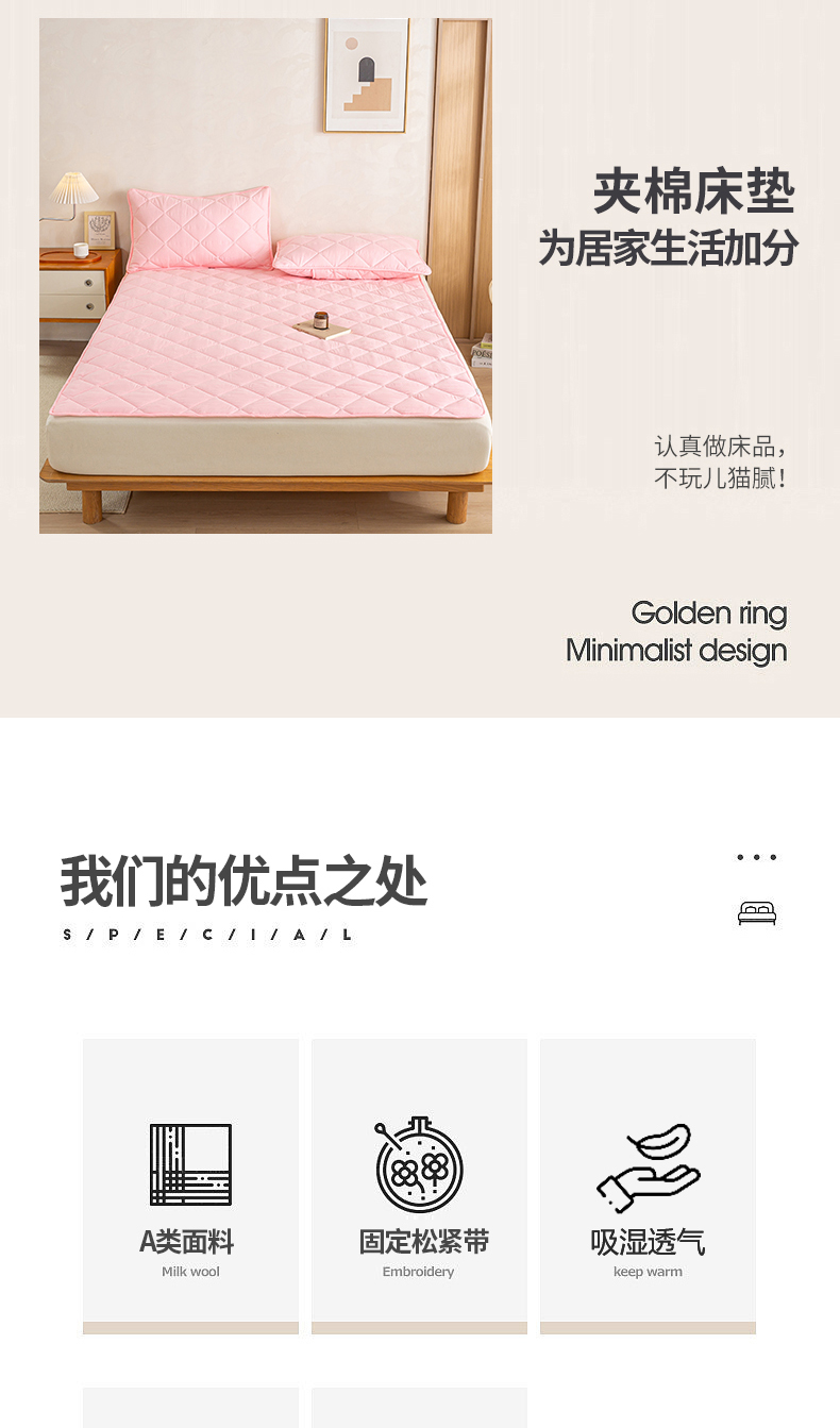• 91家纺网 家纺一手货源 找家纺 憨豆家纺 2025新款水洗棉磨毛夹棉床笠四季床垫褥子床护垫薄款学生宿舍榻榻米垫被跨境加棉保护垫 床护垫-粉色