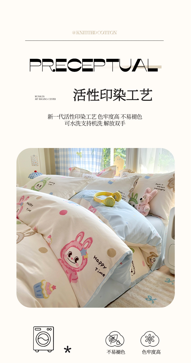 当前位置: 91家纺网 > 商品网购 > 床品套件 > 四件套 > 全棉普通四件套 > 金盛纺 2025新款全棉印花四件套 彩萌布布