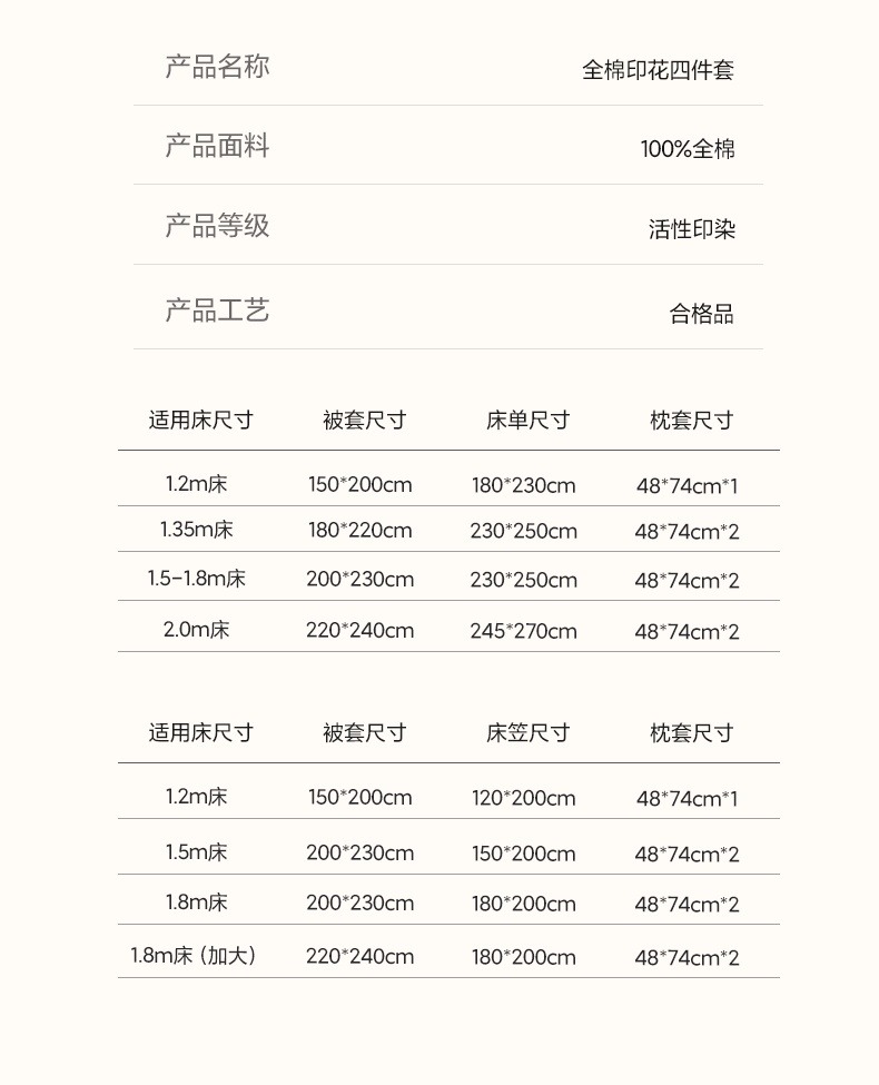 1.8m床笠款四件套-(被套200*230,床笠180*200,枕套48*74*2) | ¥125.00 |