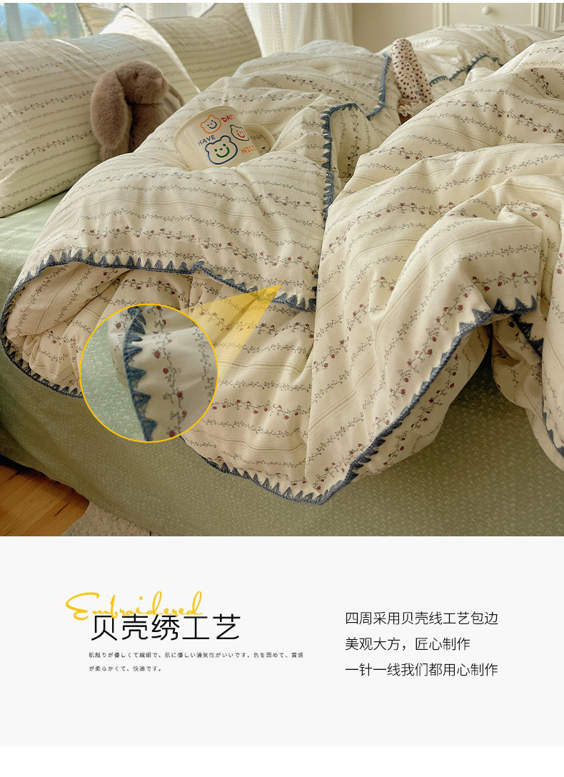 (总)瑞莱 2025新款全棉轻奢水洗棉贝壳绣四件套,豆沙,粉玉,米白,米黄,浅灰,浅蓝,深灰,深蓝,水绿,星蓝