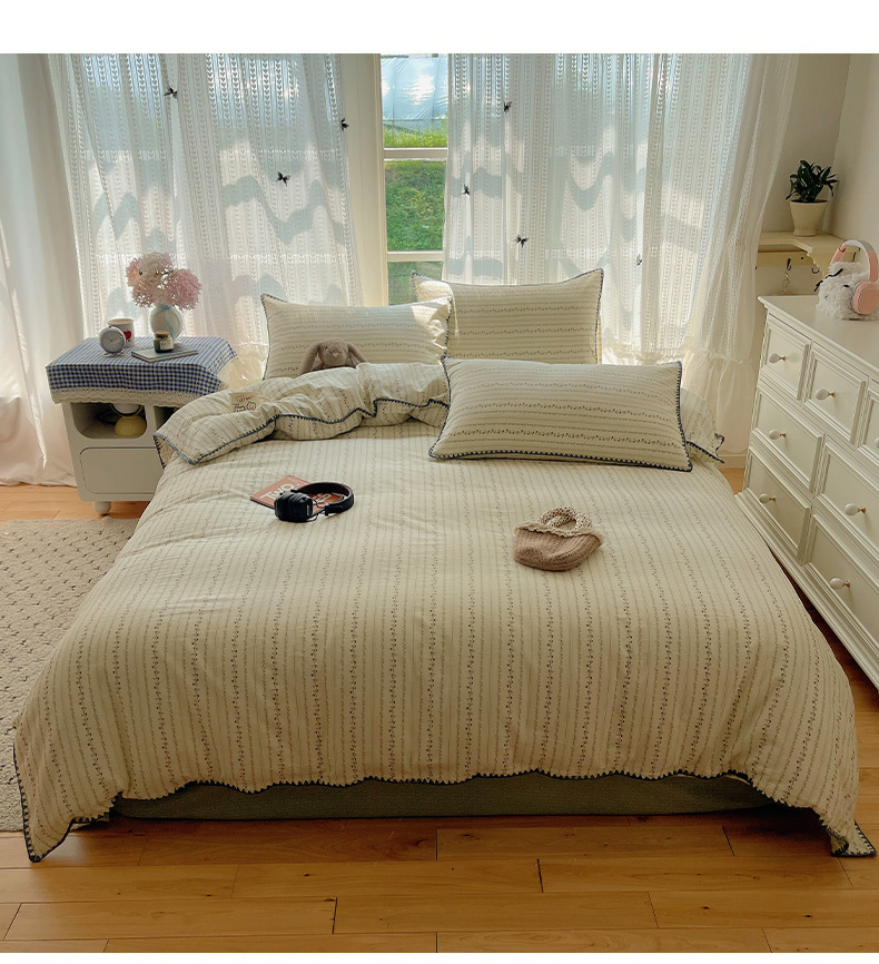 (总)瑞莱 2025新款色织水洗棉贝壳绣系列四件套-第二版,条纹灰,细条红,细条蓝,细条绿