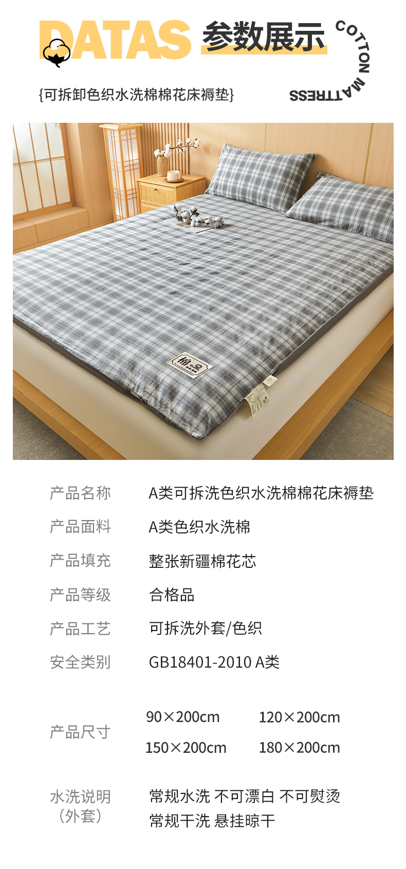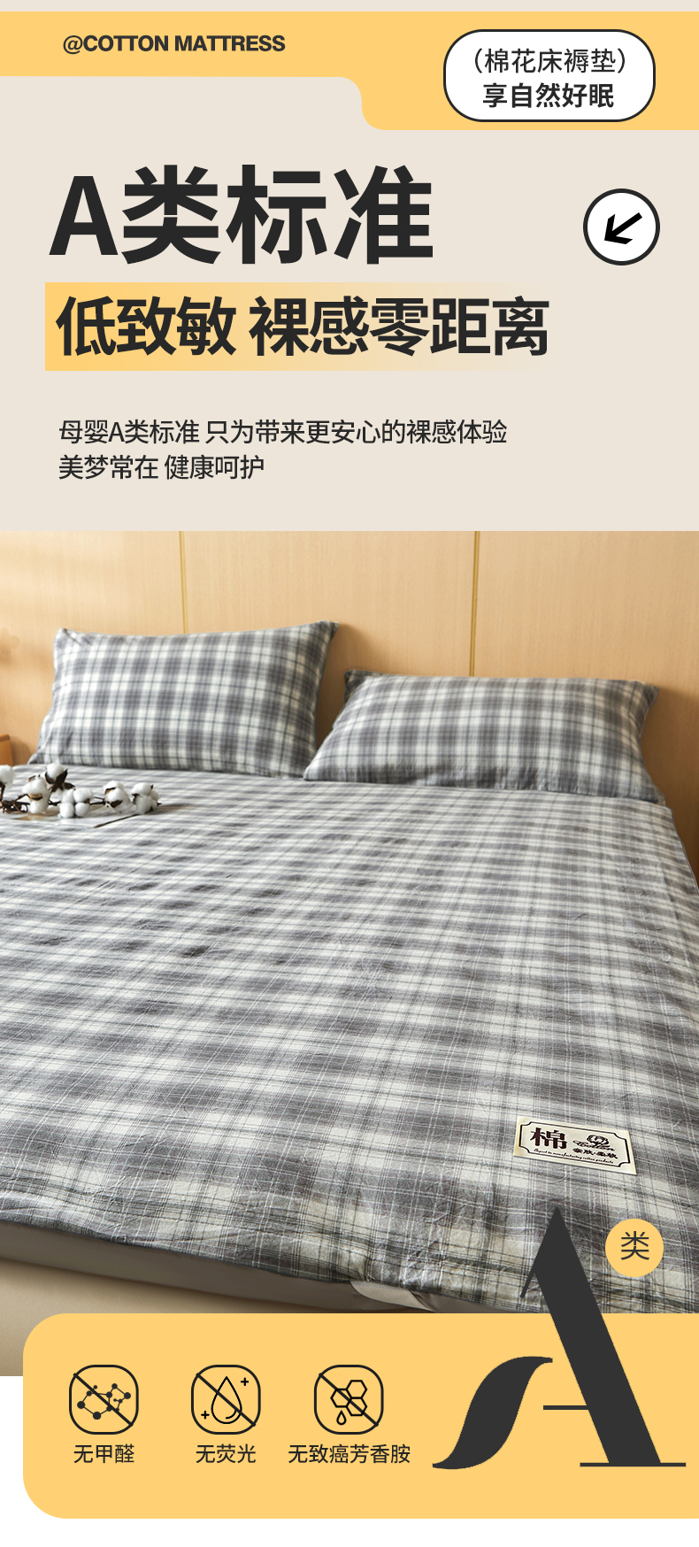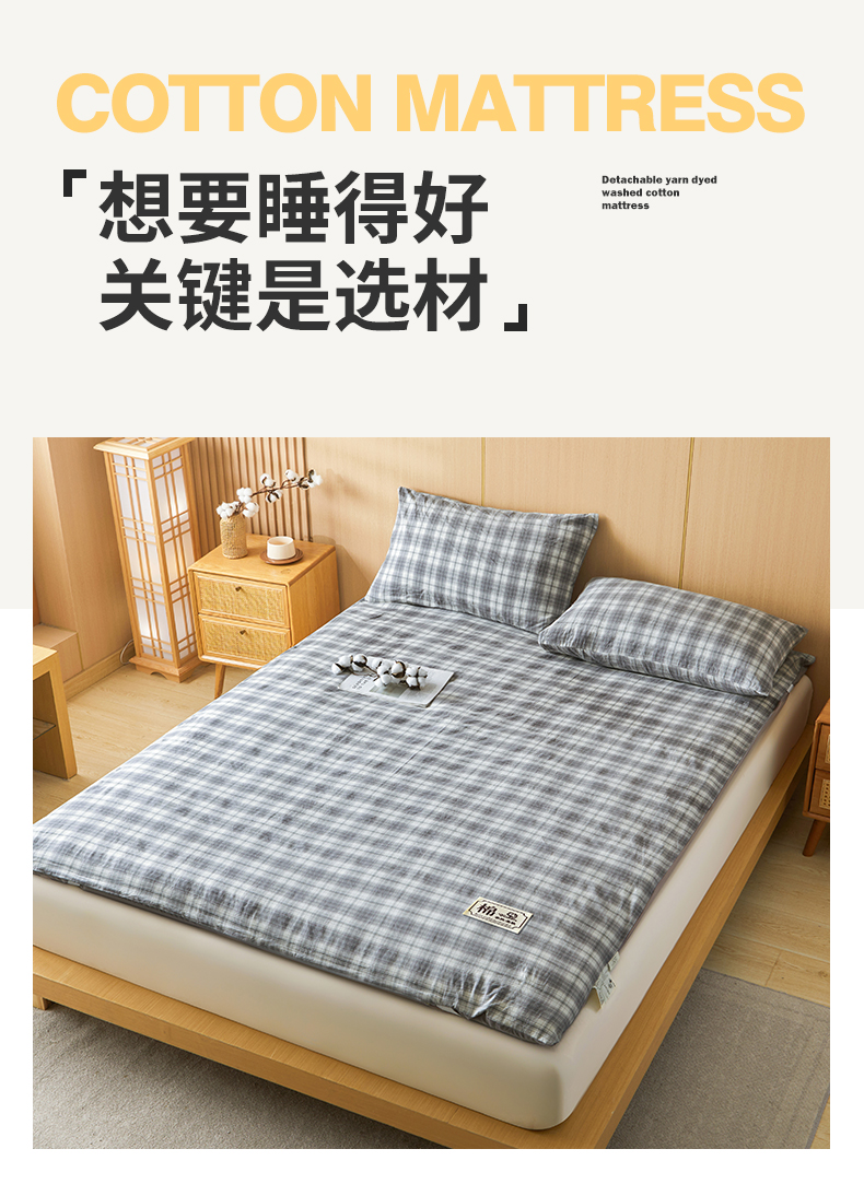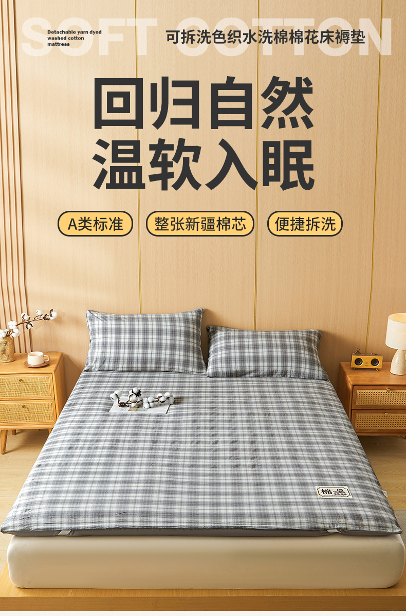 • 91家纺网 家纺一手货源 找家纺 晓时候 20252新款可拆洗新疆棉花床垫被褥子学生宿舍亲肤水洗棉棉花床垫-家用款 格韵-灰