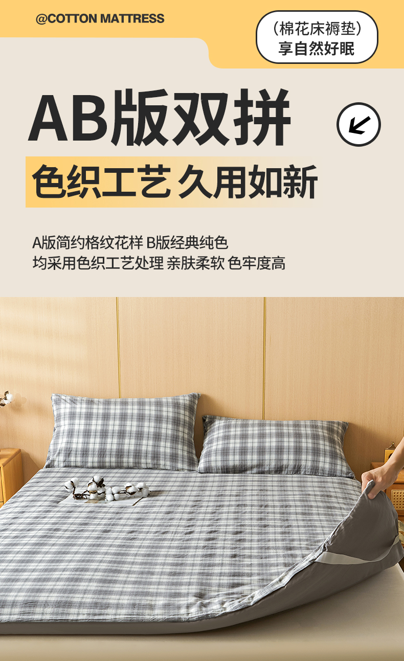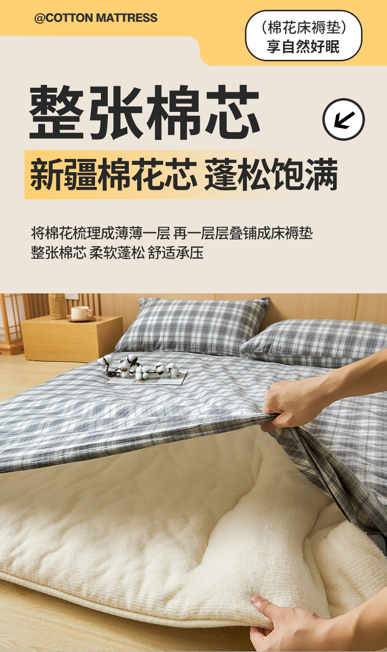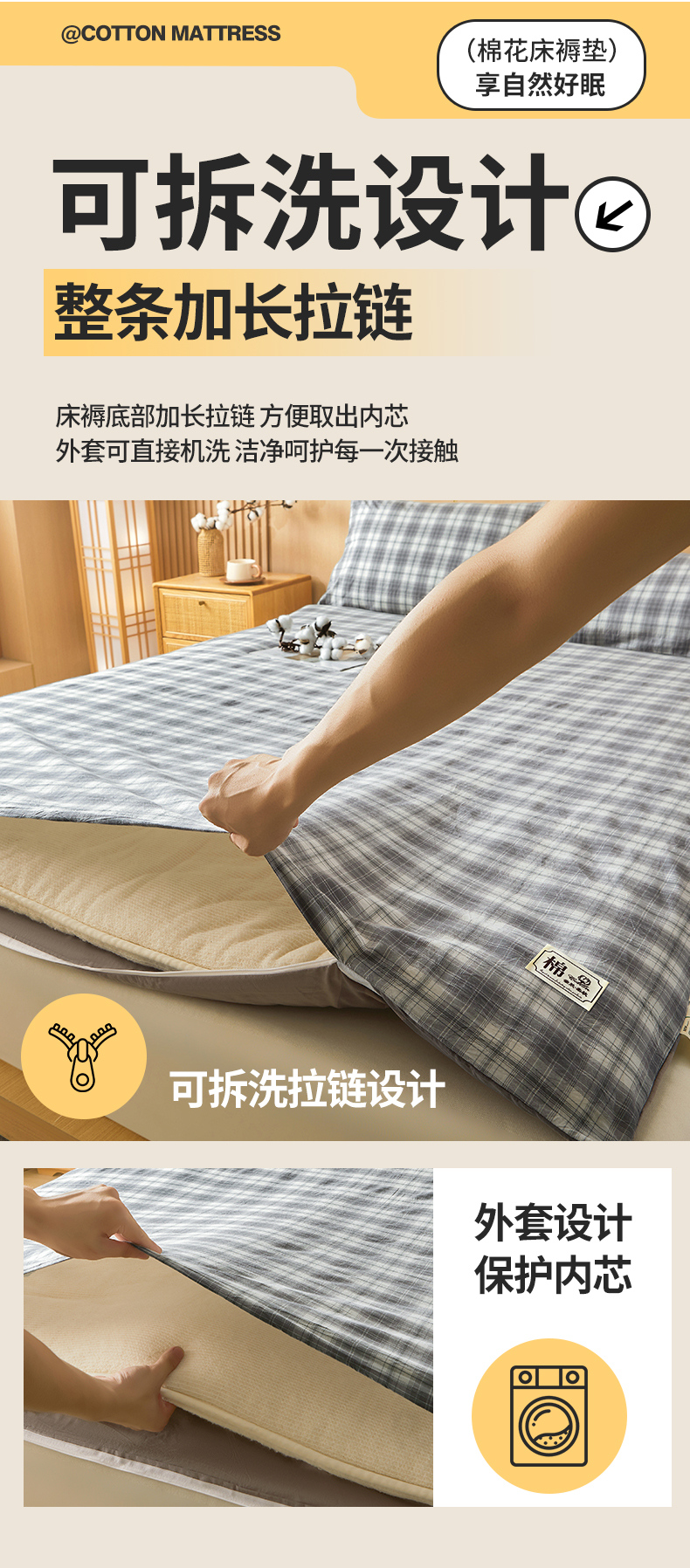 • 91家纺网 家纺一手货源 找家纺 晓时候 20252新款可拆洗新疆棉花床垫被褥子学生宿舍亲肤水洗棉棉花床垫-家用款 格韵-灰