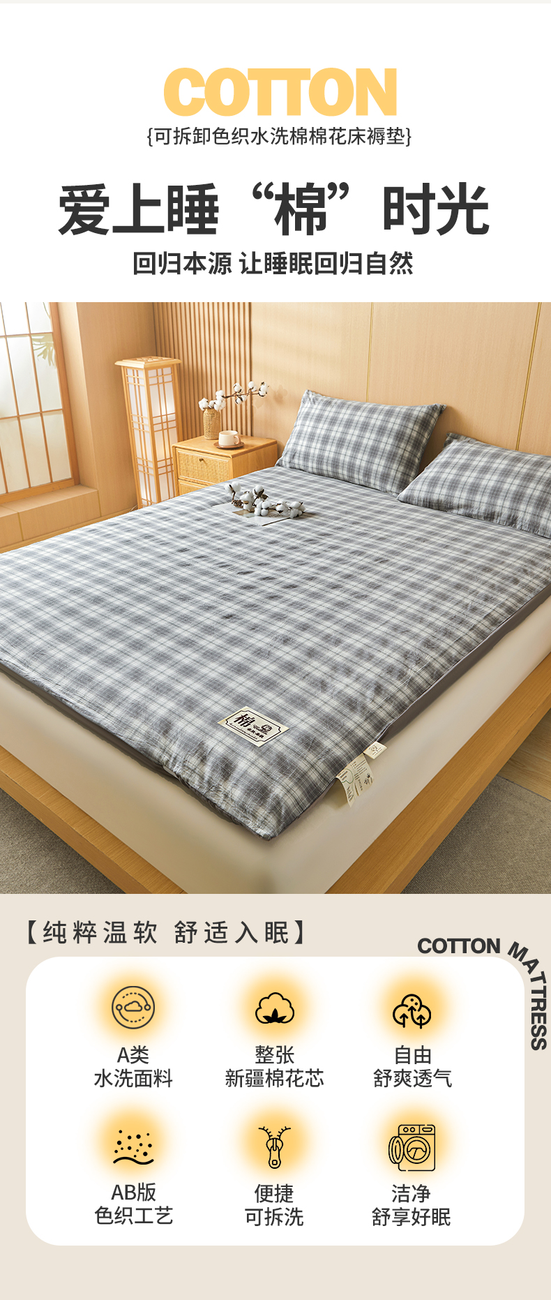 (总)晓时候 2025新款可拆洗新疆棉花床垫被褥子加厚冬被学生宿舍水洗棉床垫套-宿舍款,格韵-灰,格韵-粉,格韵-蓝,蜜粉大格,蜜粉小格,蜜桔格,青春格,森林绿,天蓝小格,烟灰大格