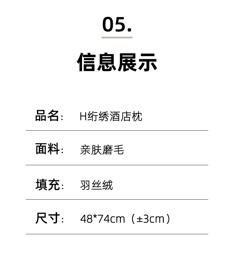单边H刺绣酒店枕-白色 48x74cm高枕/对