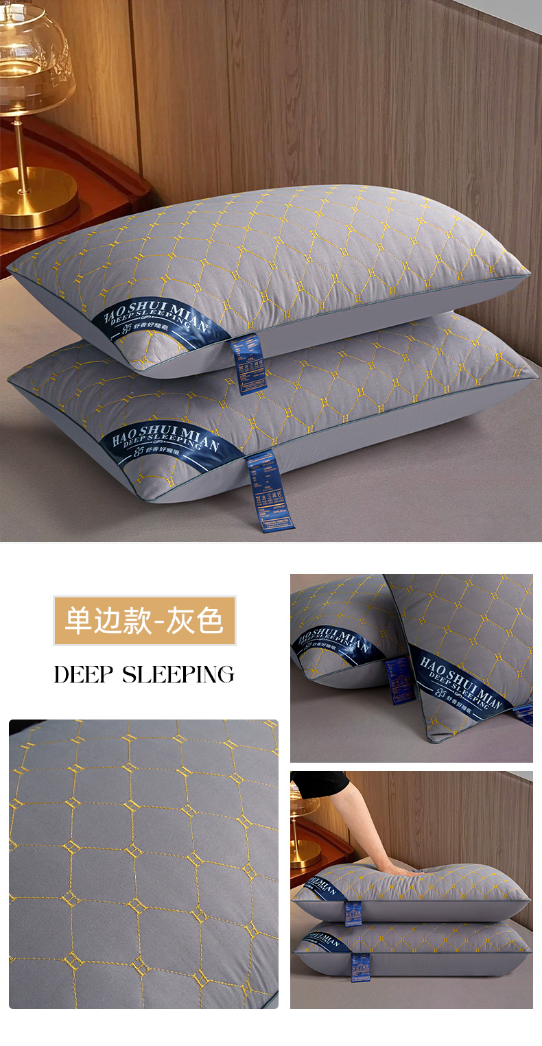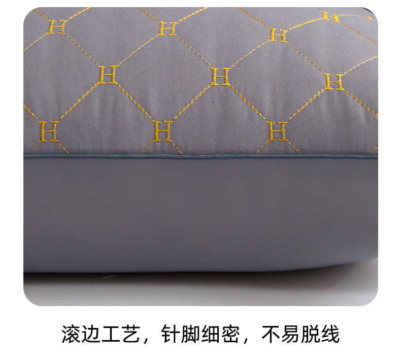 单边H刺绣酒店枕-灰色 48x74cm高枕/对