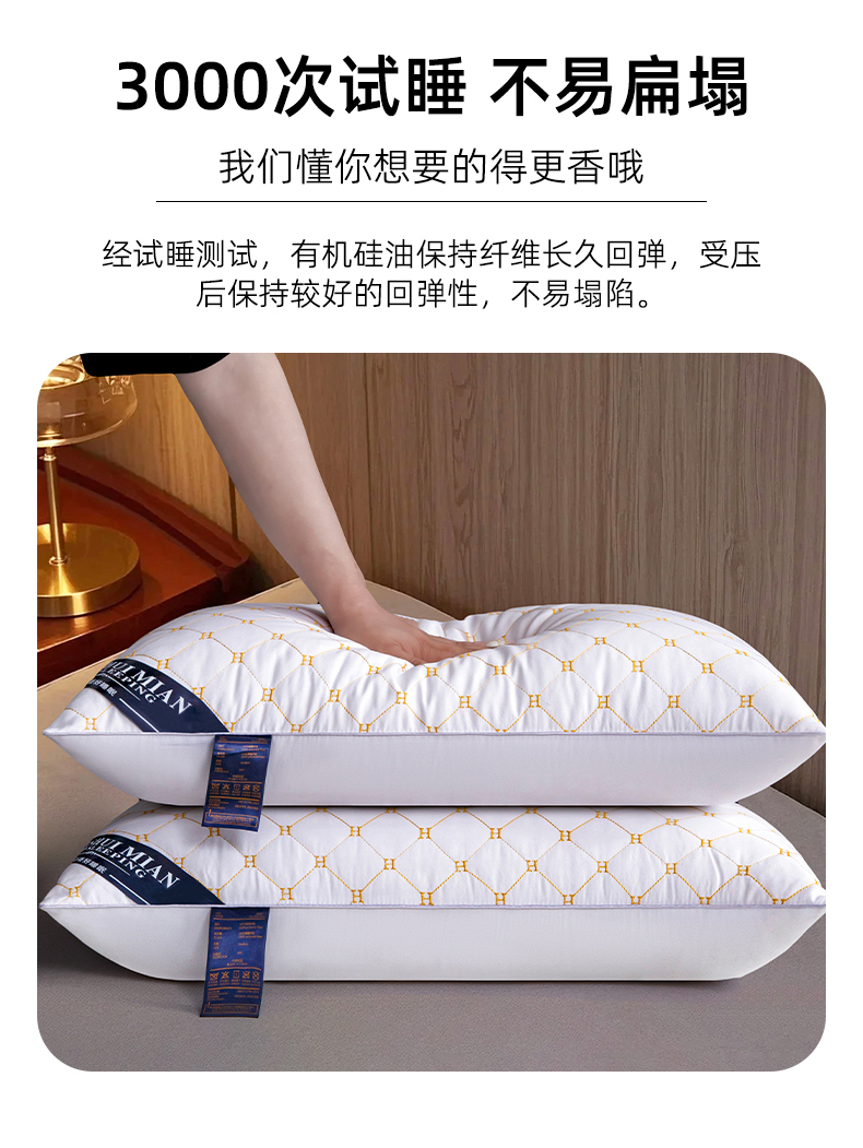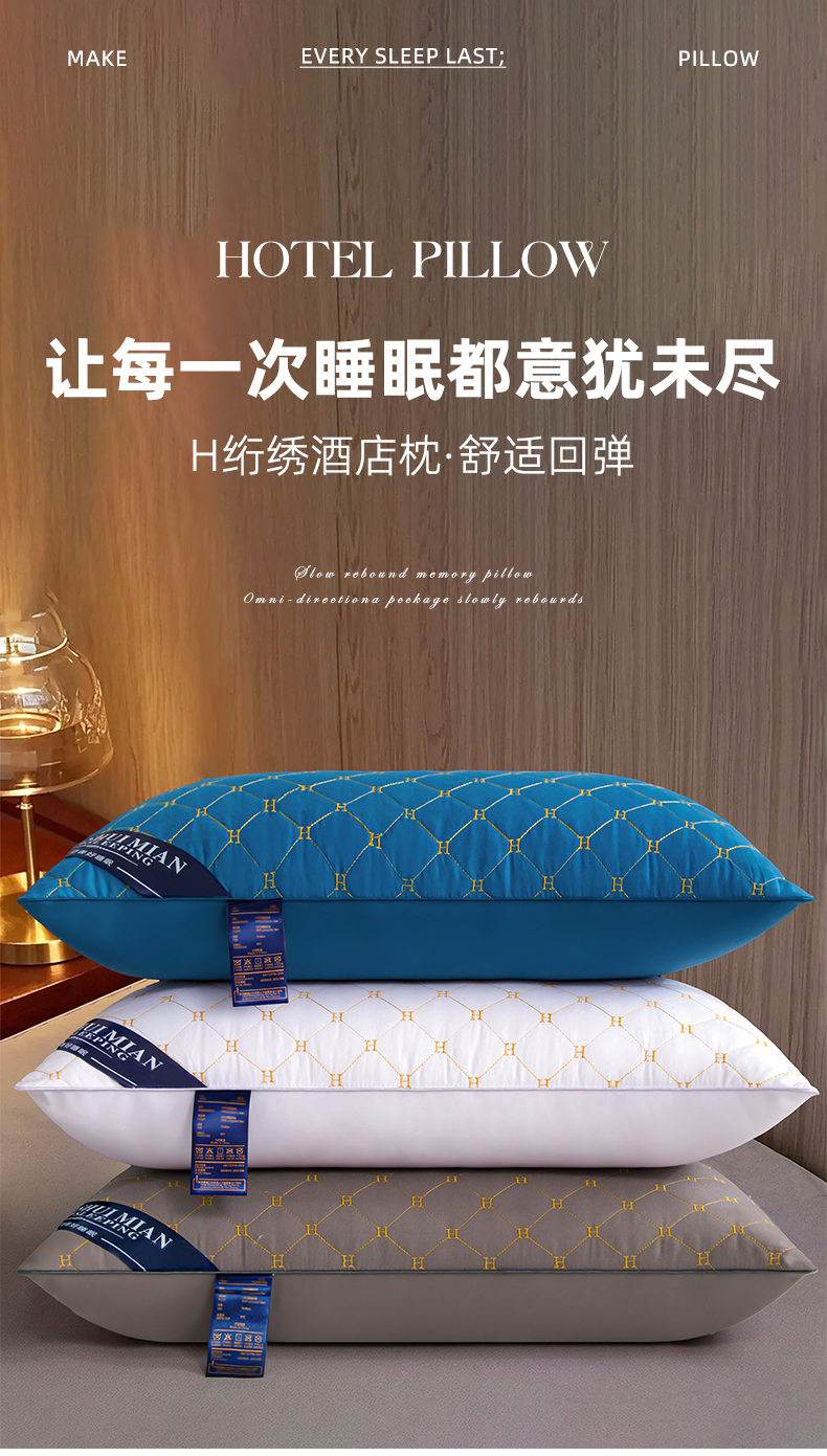 商品名称:(总)织布人 2025新款枕芯磨毛单边绗绣H刺绣酒店枕头成人家用枕头枕芯