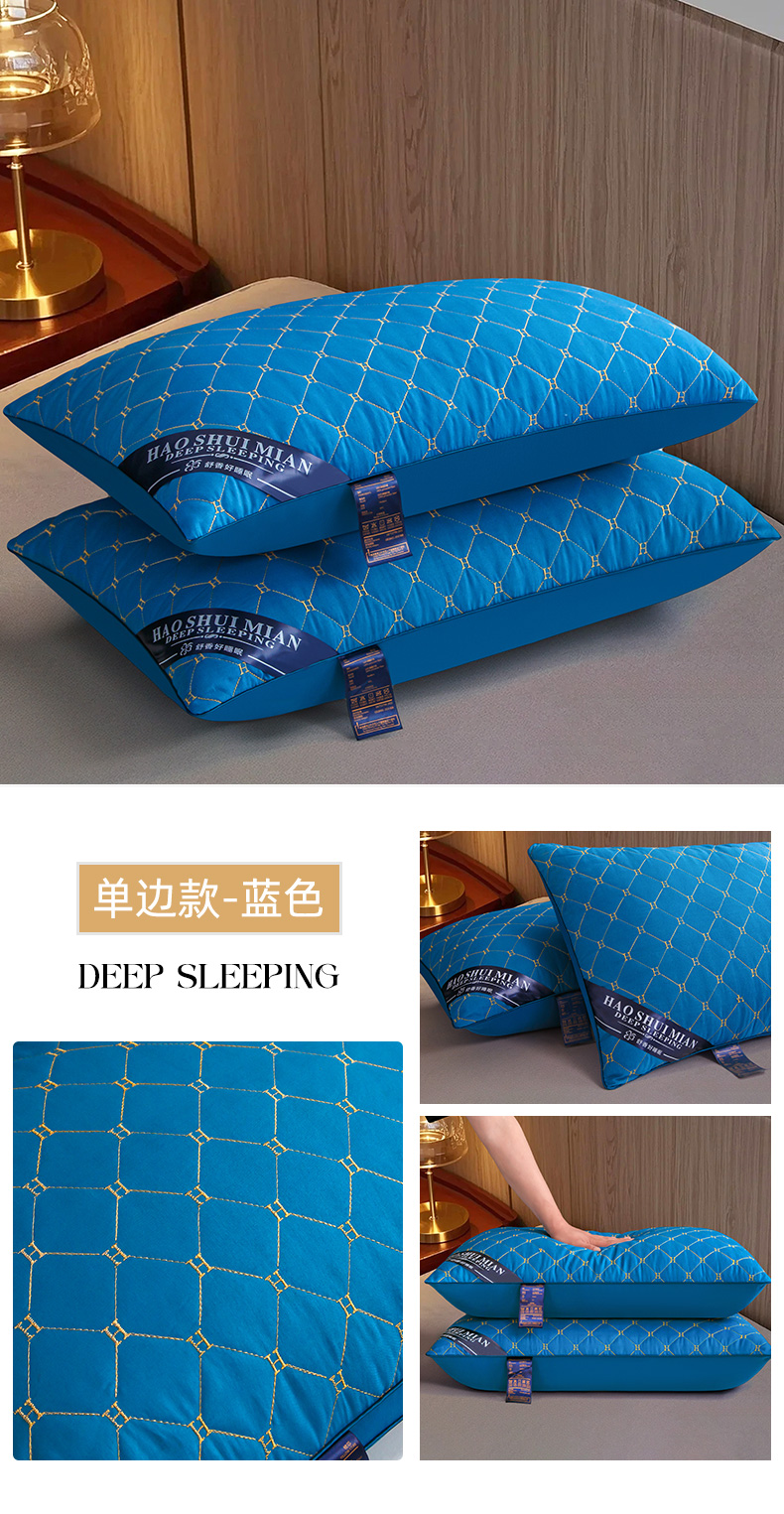 单边H刺绣酒店枕-蓝色 48x74cm高枕/对