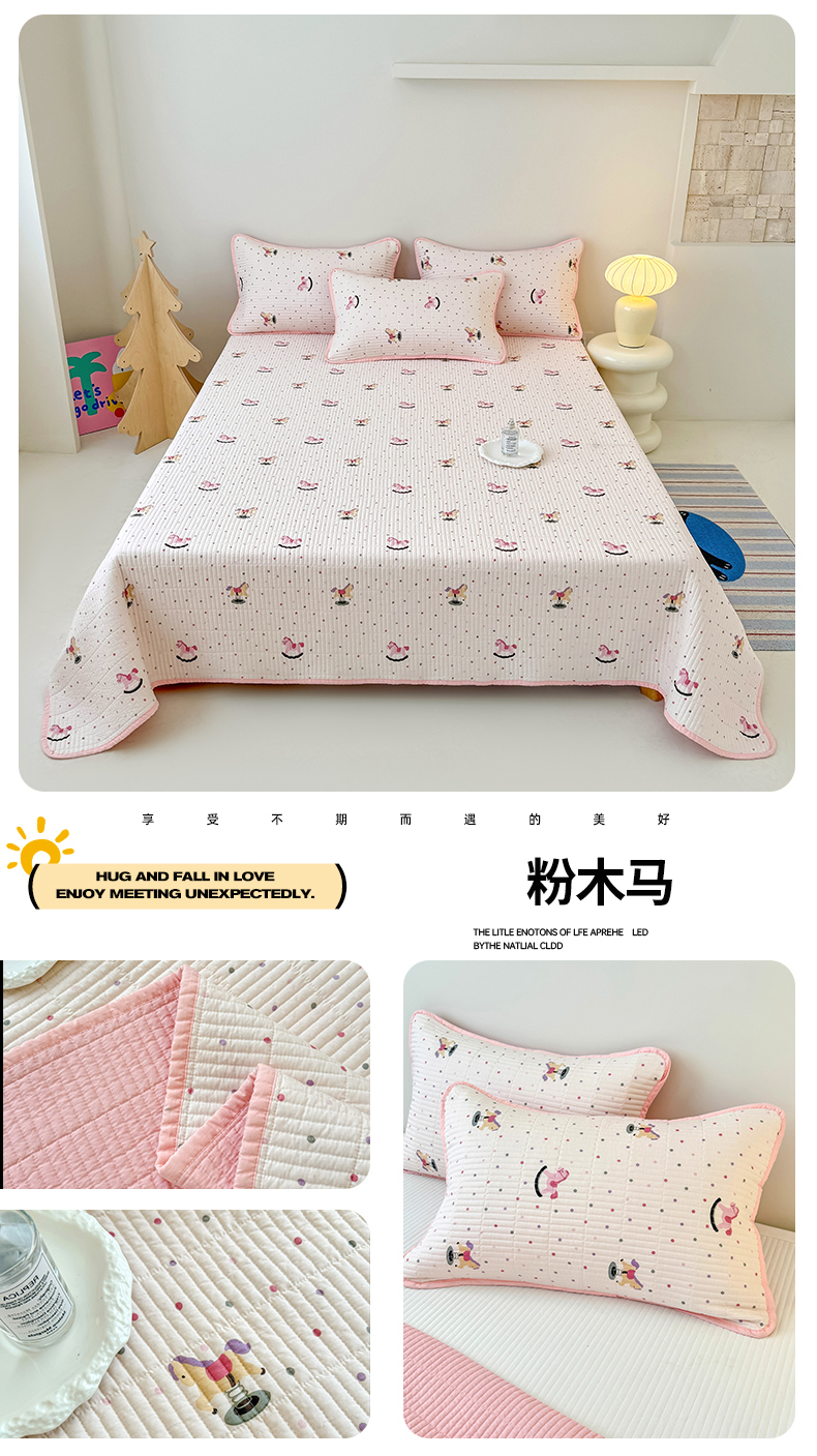 (总)橙子家居 2025新款双面全棉纯棉砂洗夹棉床盖三件套,贝丽花都,粉木马,腊肠狗,梦露花园,苹果趣事,甜心南瓜,小熊贝蒂,樱桃派,组合图仅供展示,格子小熊,赫本,莫娇-黄,沁花-绿,薇恋时光,雾里花-粉,雅清