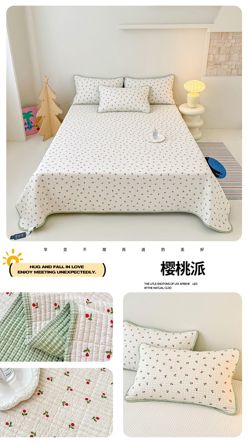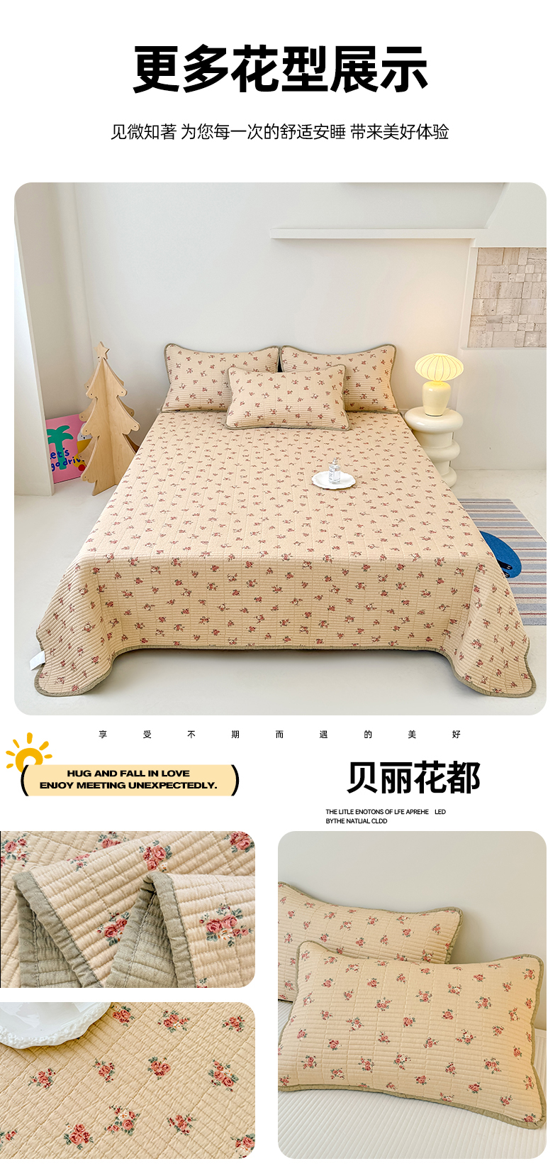 (总)橙子家居 2025新款双面全棉纯棉砂洗夹棉床盖三件套,贝丽花都,粉木马,腊肠狗,梦露花园,苹果趣事,甜心南瓜,小熊贝蒂,樱桃派,组合图仅供展示,格子小熊,赫本,莫娇-黄,沁花-绿,薇恋时光,雾里花-粉,雅清