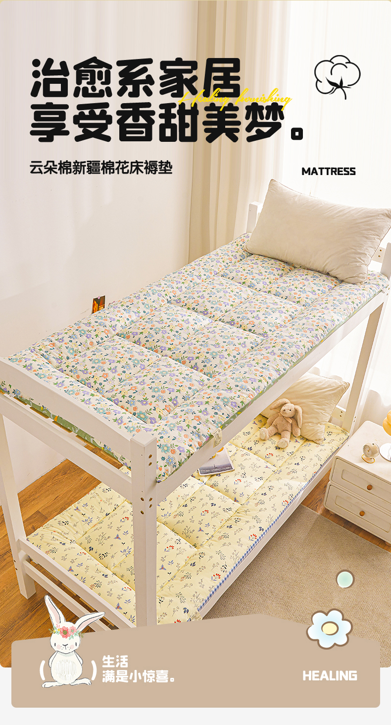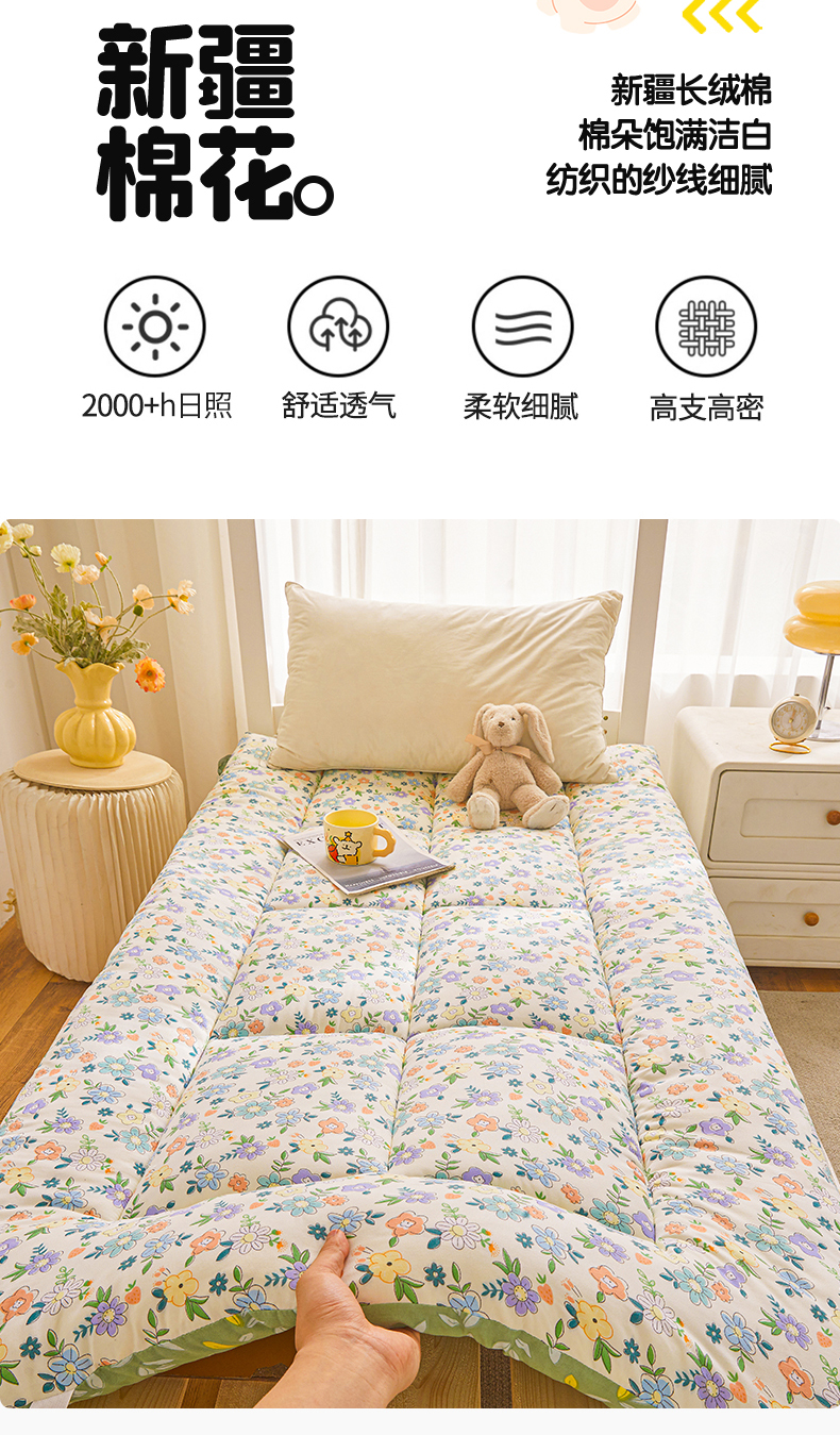当前位置: 91家纺网 > 商品网购 > 床垫/床褥 > 普通床垫 > 梵蒂莎 2025新款新疆棉花四季款秋冬两用床垫子褥子宿舍印花学生款棉花床褥垫(场景1)(含买家秀) 花韵恬梦-床垫