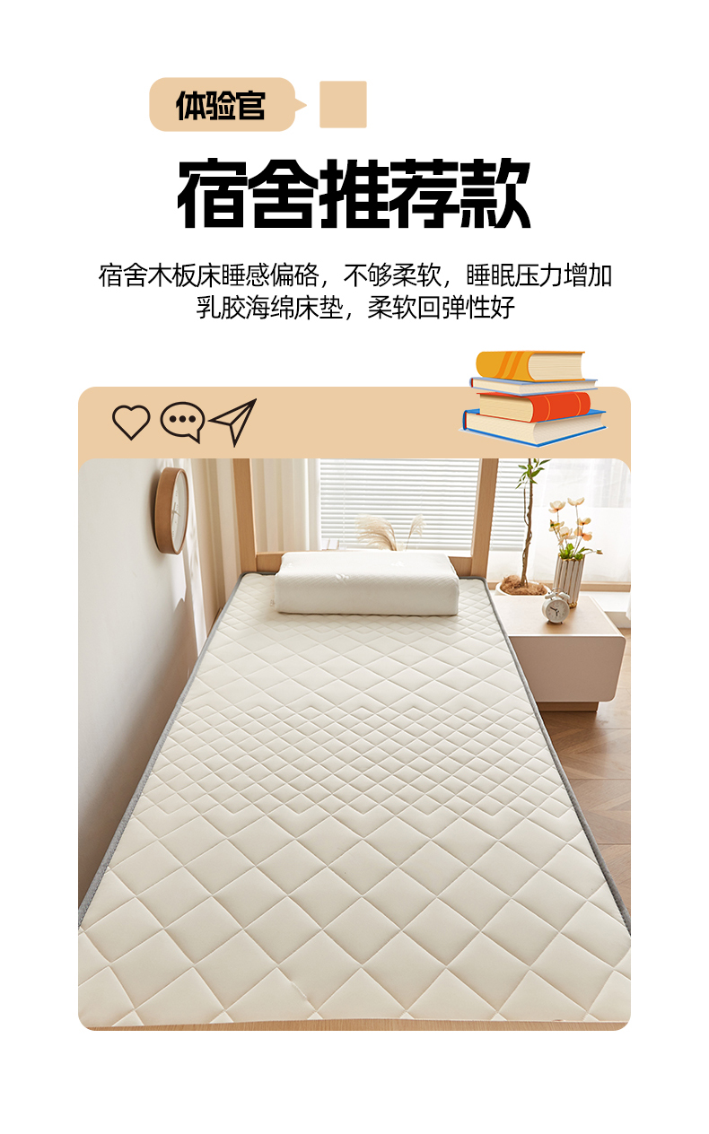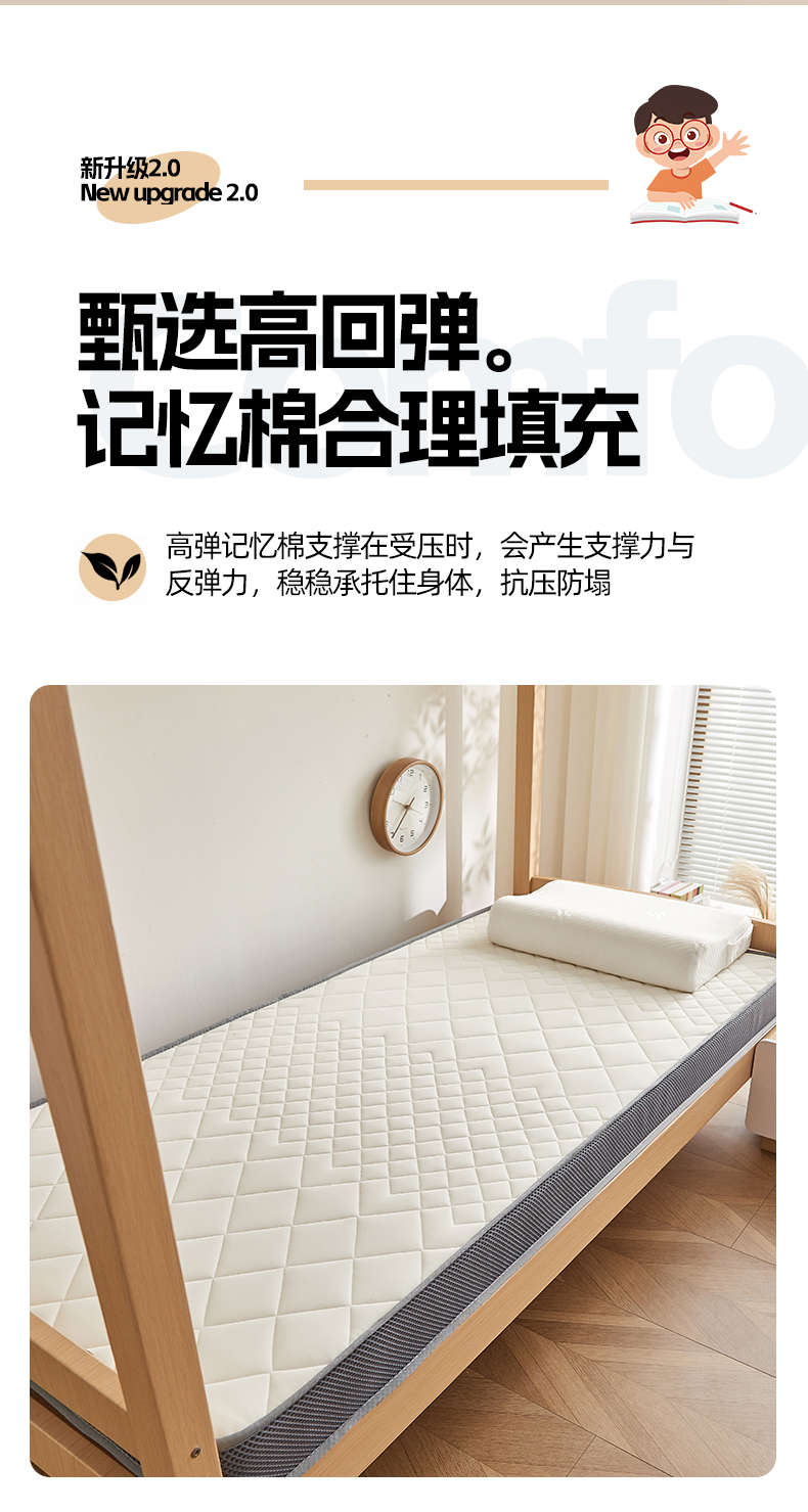 商品名称:(总)奇丝雅 2025新款牛奶丝学生宿舍床上下铺专用加厚记忆棉海绵立体乳胶床垫【高密记忆棉】