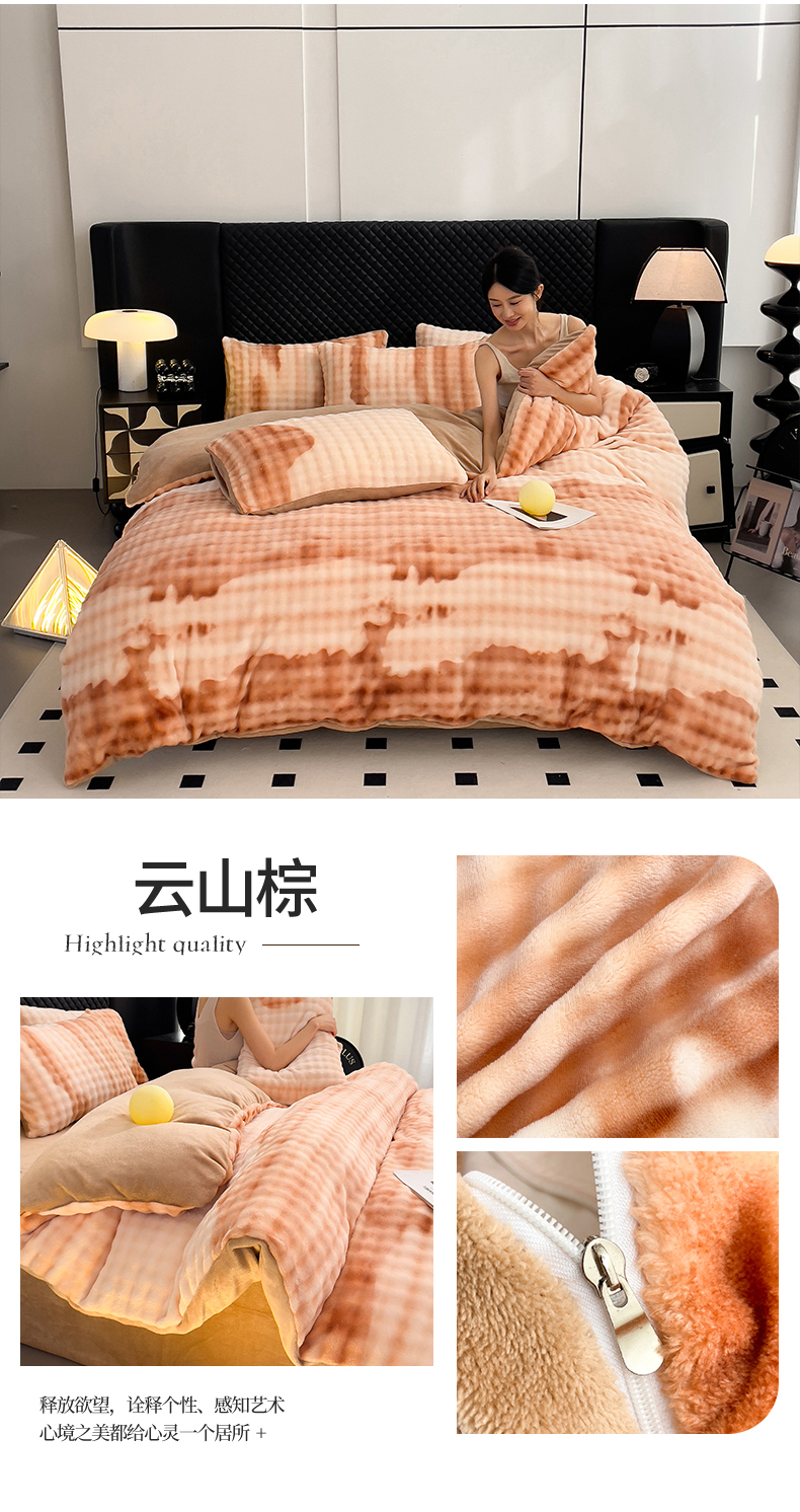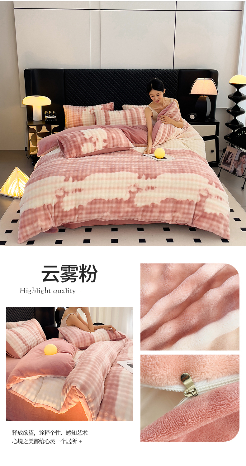 当前位置: 91家纺网 > 商品网购 > 床品套件 > 四件套 > 牛奶绒四件套 > 言熙居家纺 2025新款加厚高克重兔兔绒牛奶绒四件套 云雾粉