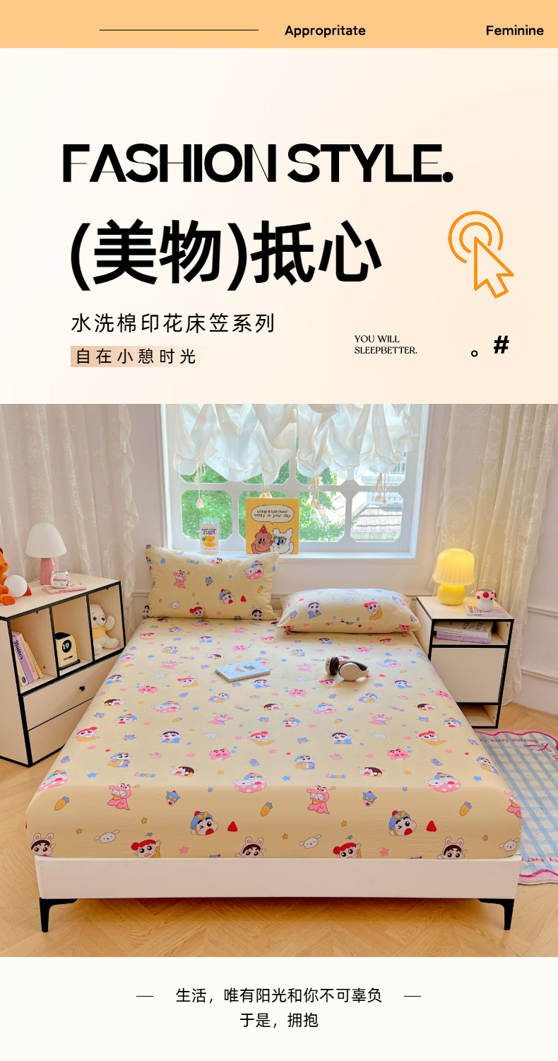 优佳优品 2025新款亲肤水洗棉印花床笠单品床笠单件单床笠 床笠款-快乐小新