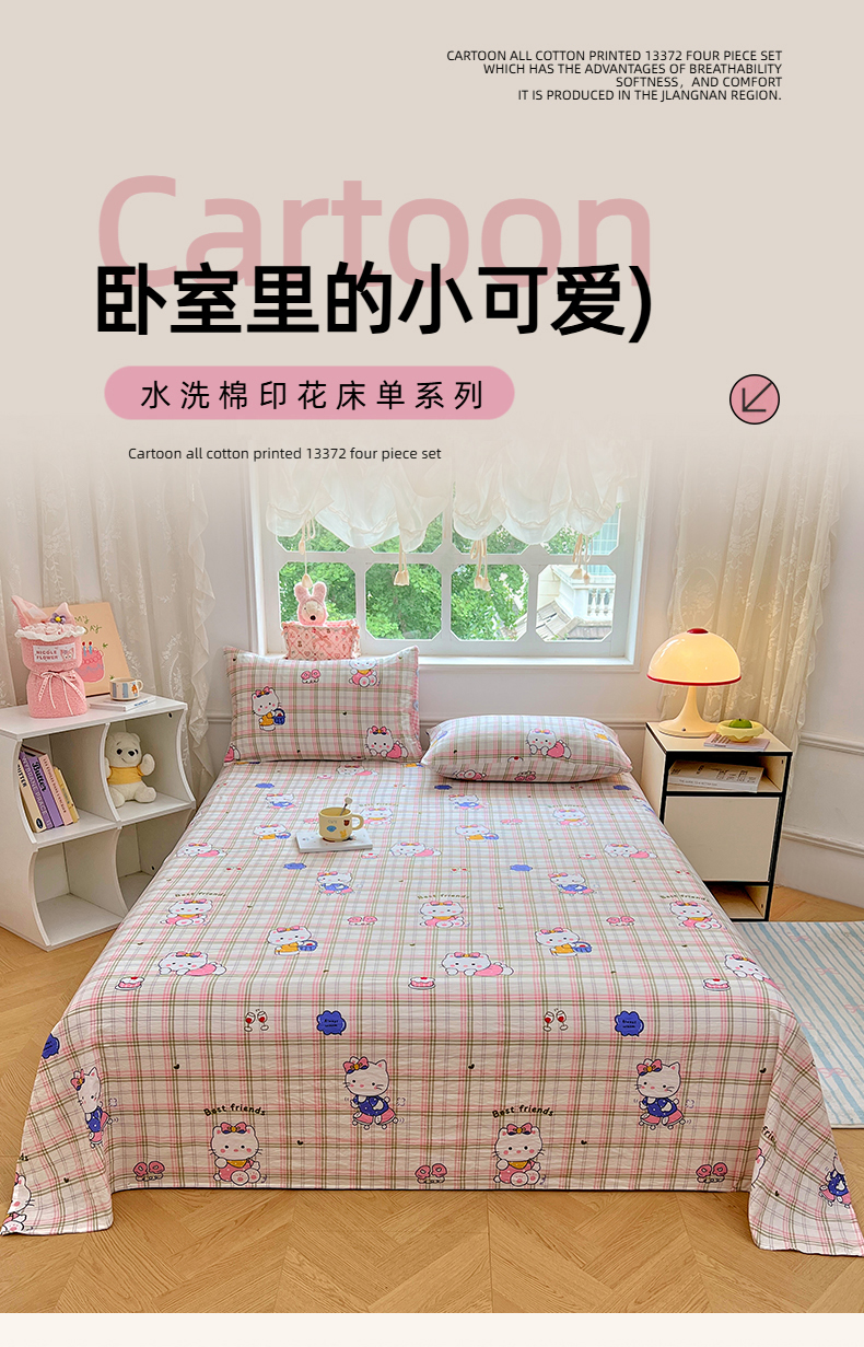 • 91家纺网 家纺一手货源 找家纺 优佳优品 2025新款亲肤水洗棉印花床单单品床单单件单床单 床单款-凯蒂猫
