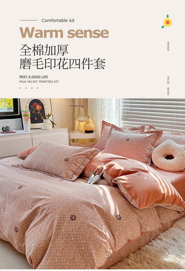 当前位置: 91家纺网 > 商品网购 > 床品套件 > 四件套 > 普通磨毛四件套 > 简约家纺 2025新款全棉磨毛四件套 山茶诗篇-咖