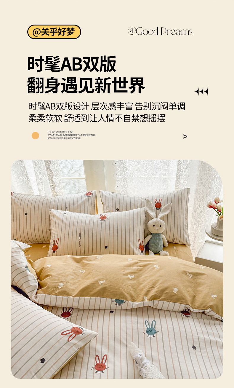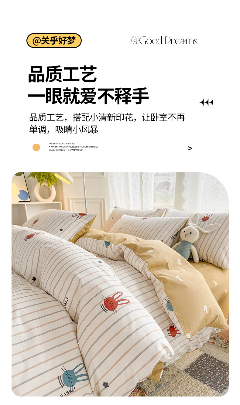 (总)梦洋家纺 2025春夏秋冬新款A类全棉四件套,爱心樱桃,桂花,蝴蝶结,花丛兔,蘑菇乐园,木槿花,水母花,司藤花,太阳花-水波纹,泰迪熊,向日葵,小棕熊-格子,星星兔-条纹,樱桃-点点,樱桃园,虞美人,玉兔园,郁金香