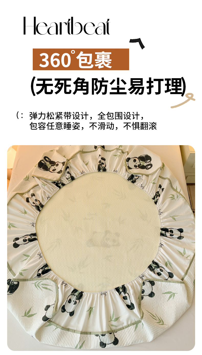 • 91家纺网 家纺一手货源 找家纺 富馨莱 2025新款纯棉夹棉单件床笠 熊猫团子