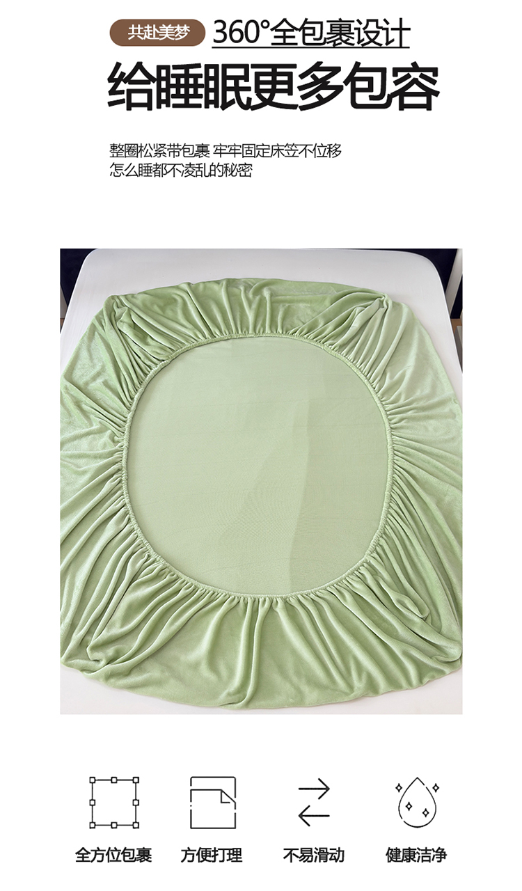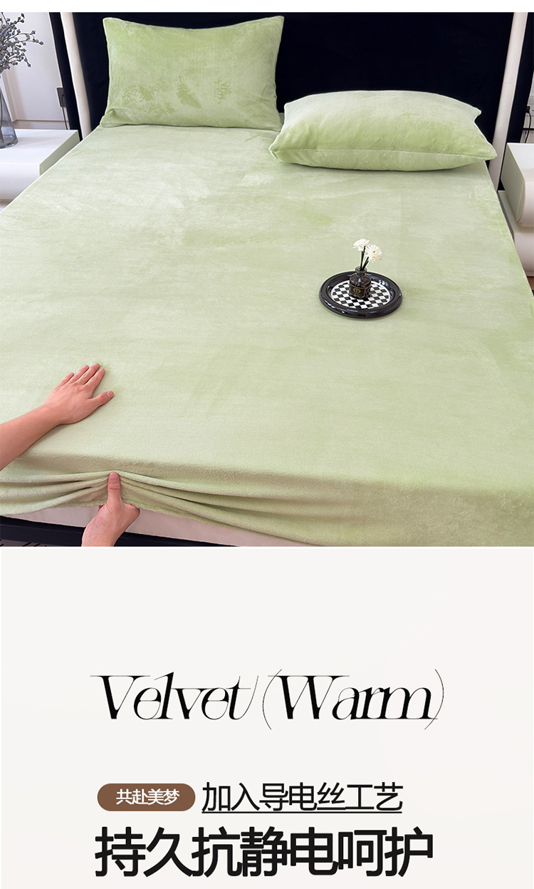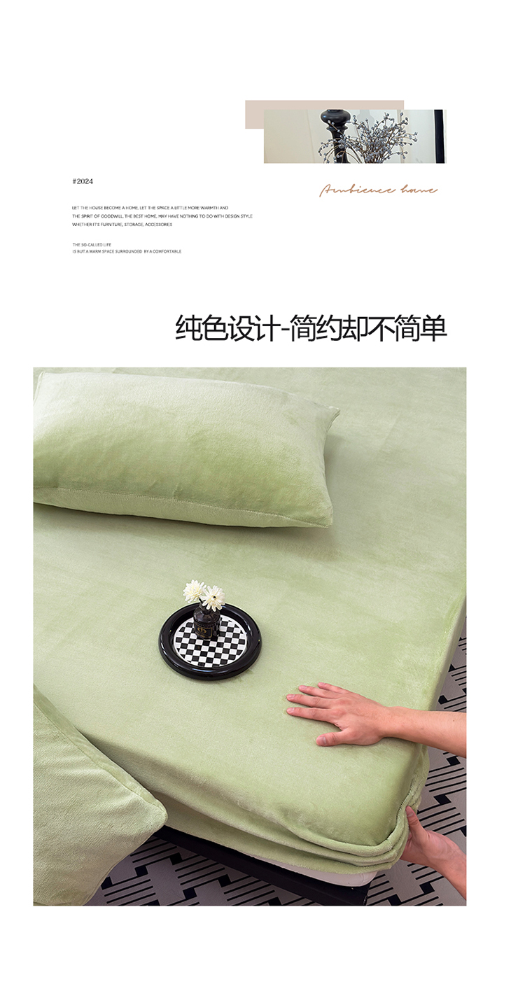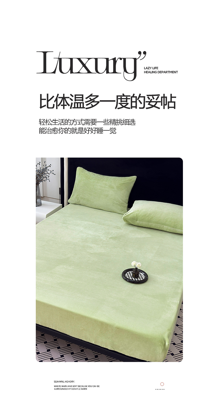 商品名称:2025新款高克重纯色保暖牛奶绒单床笠枕套 浅水绿