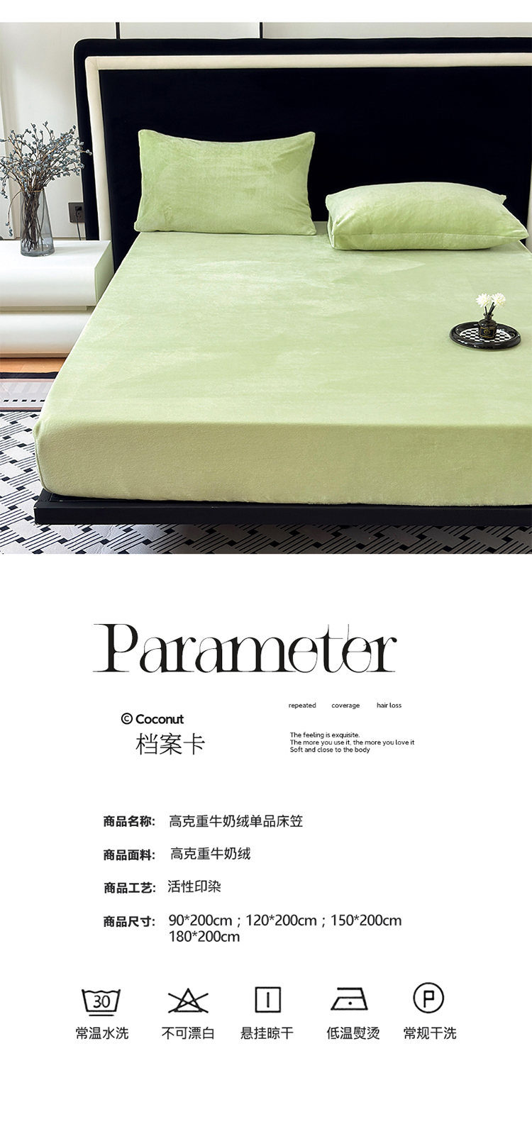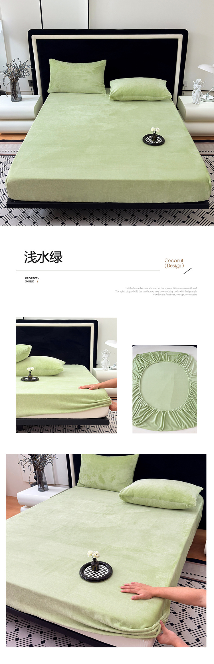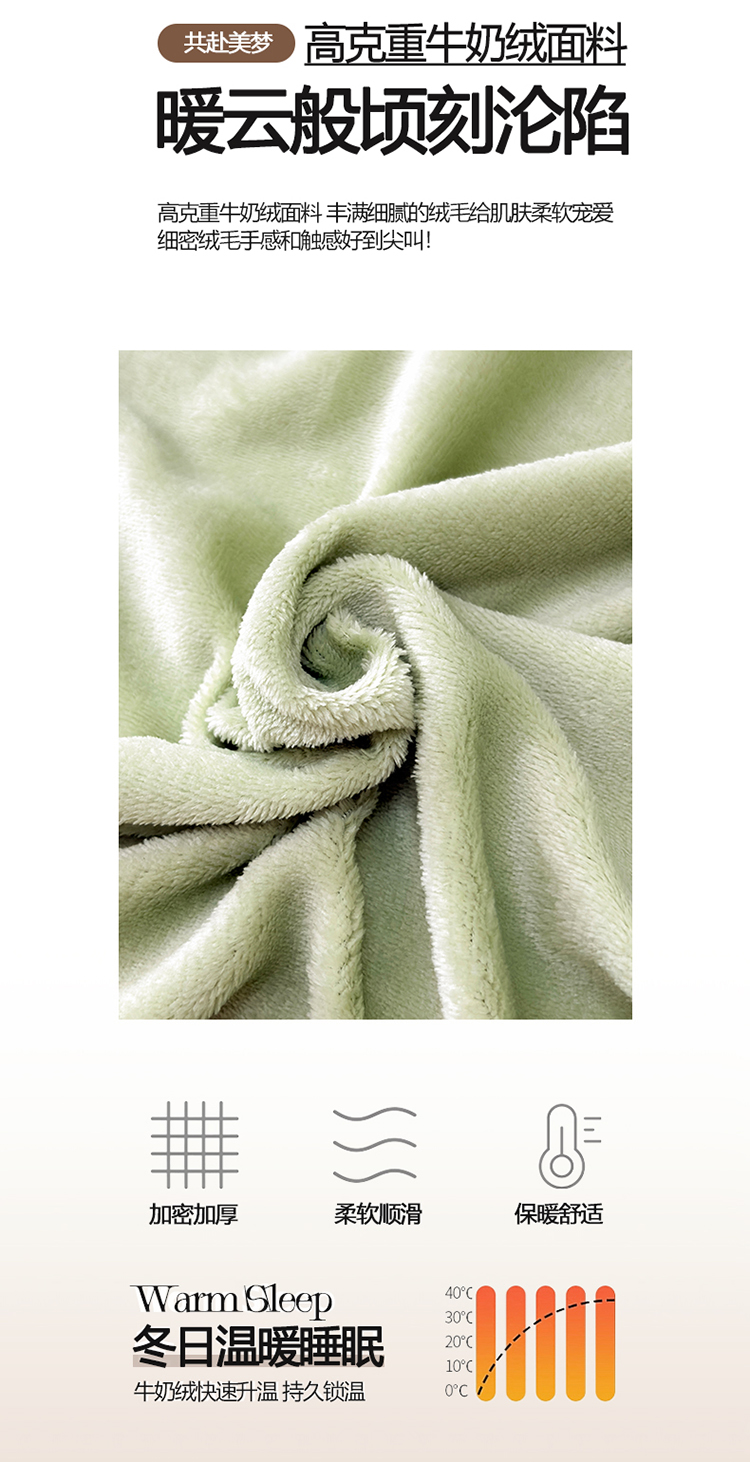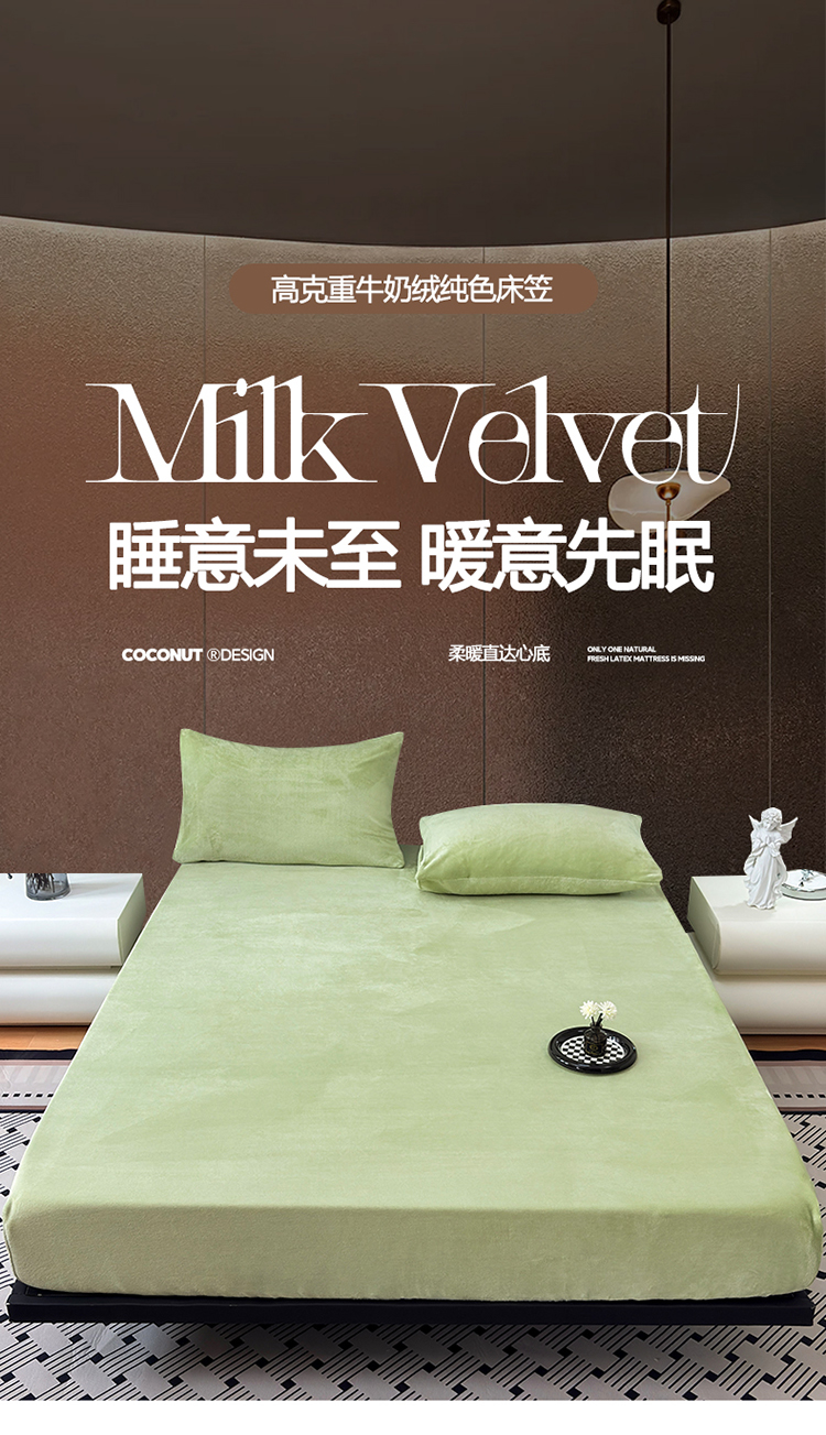 商品名称:2025新款高克重纯色保暖牛奶绒单床笠枕套 浅水绿
