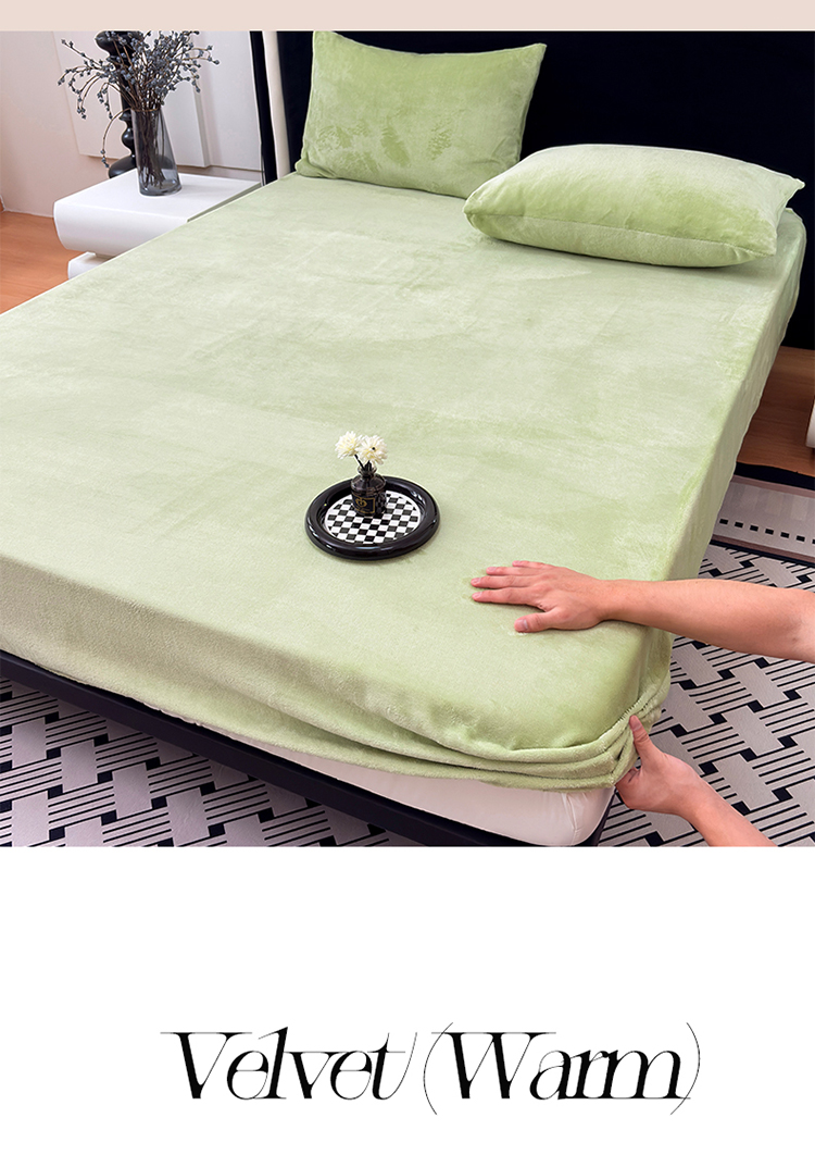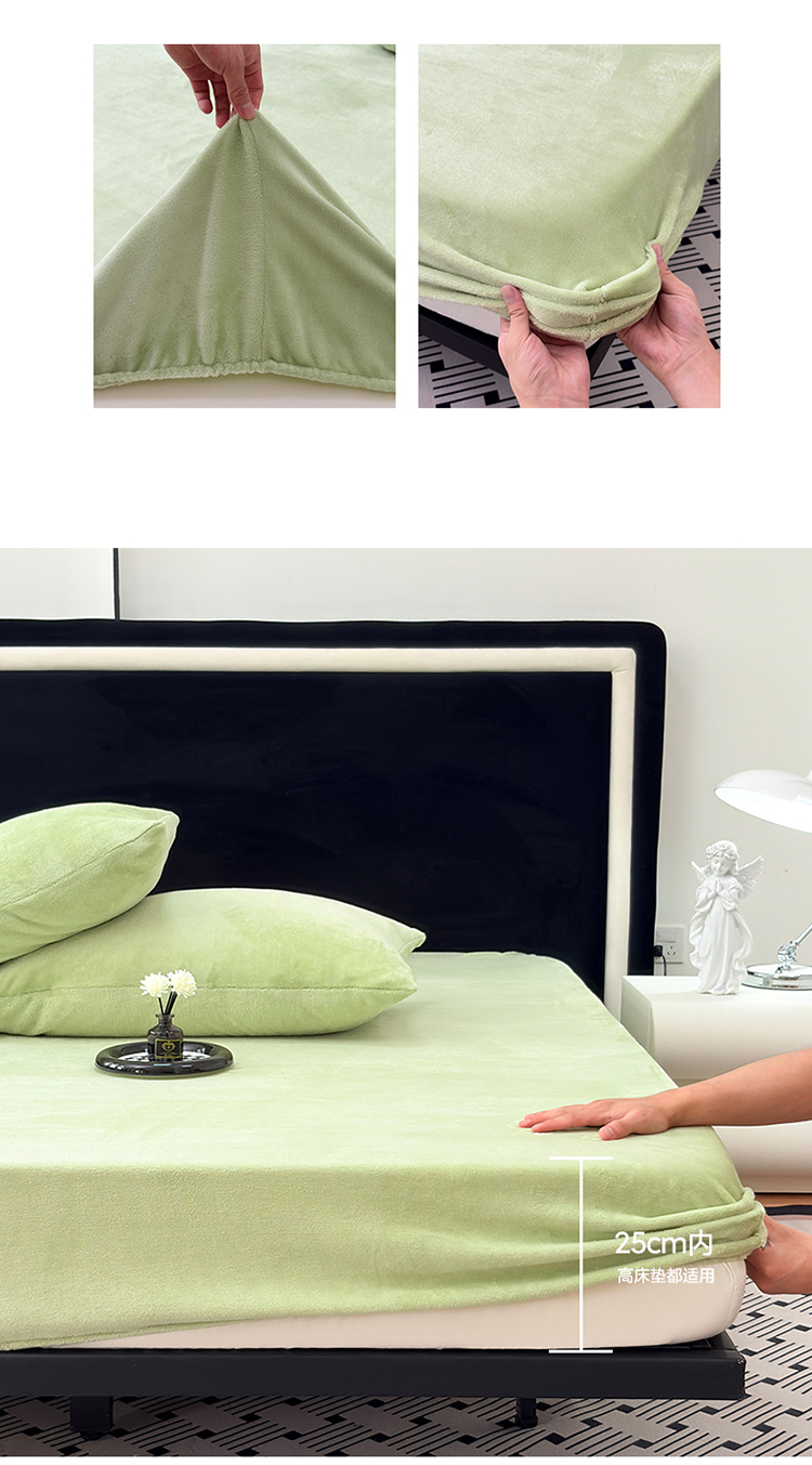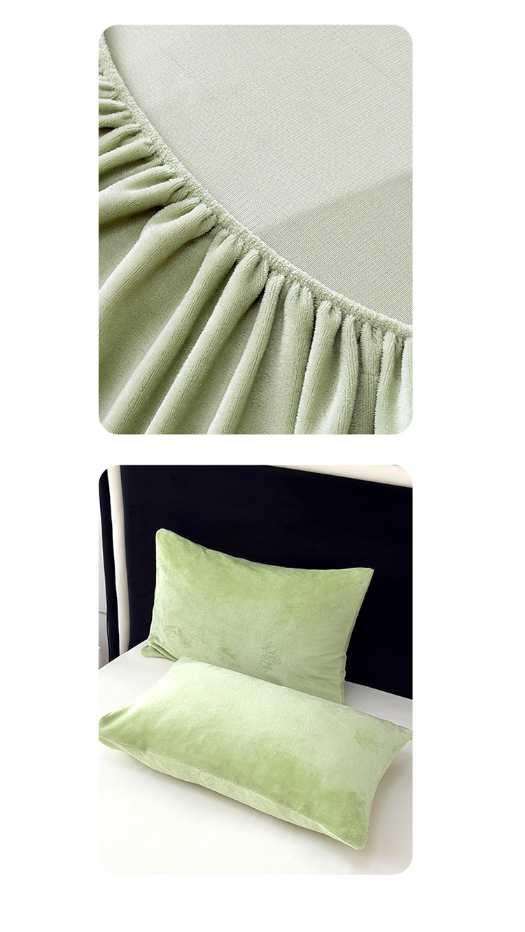 2025新款高克重纯色保暖牛奶绒单床笠枕套 浅水绿