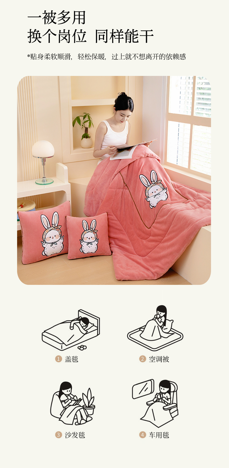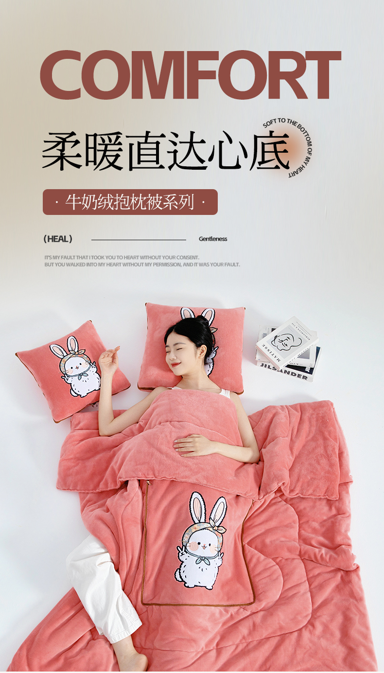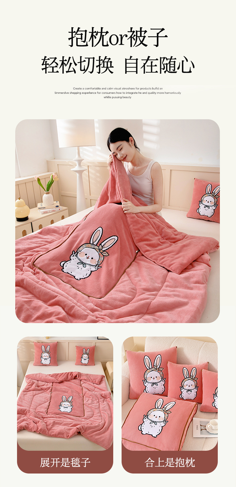 商品名称:(总)阳光依佰抱枕被 2025秋冬新款牛奶绒多功能抱枕被系列-大耳兔