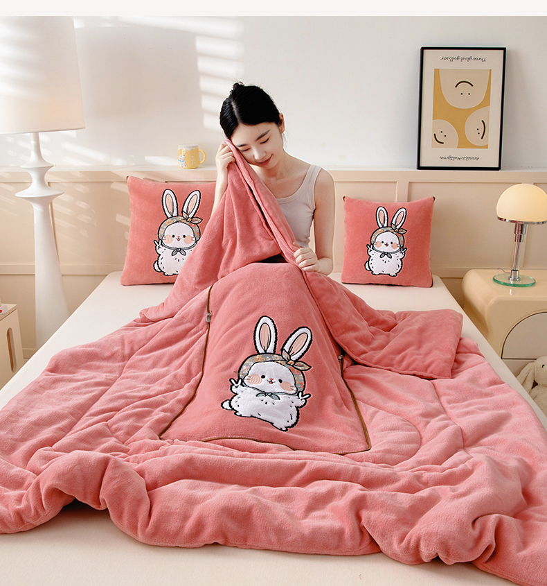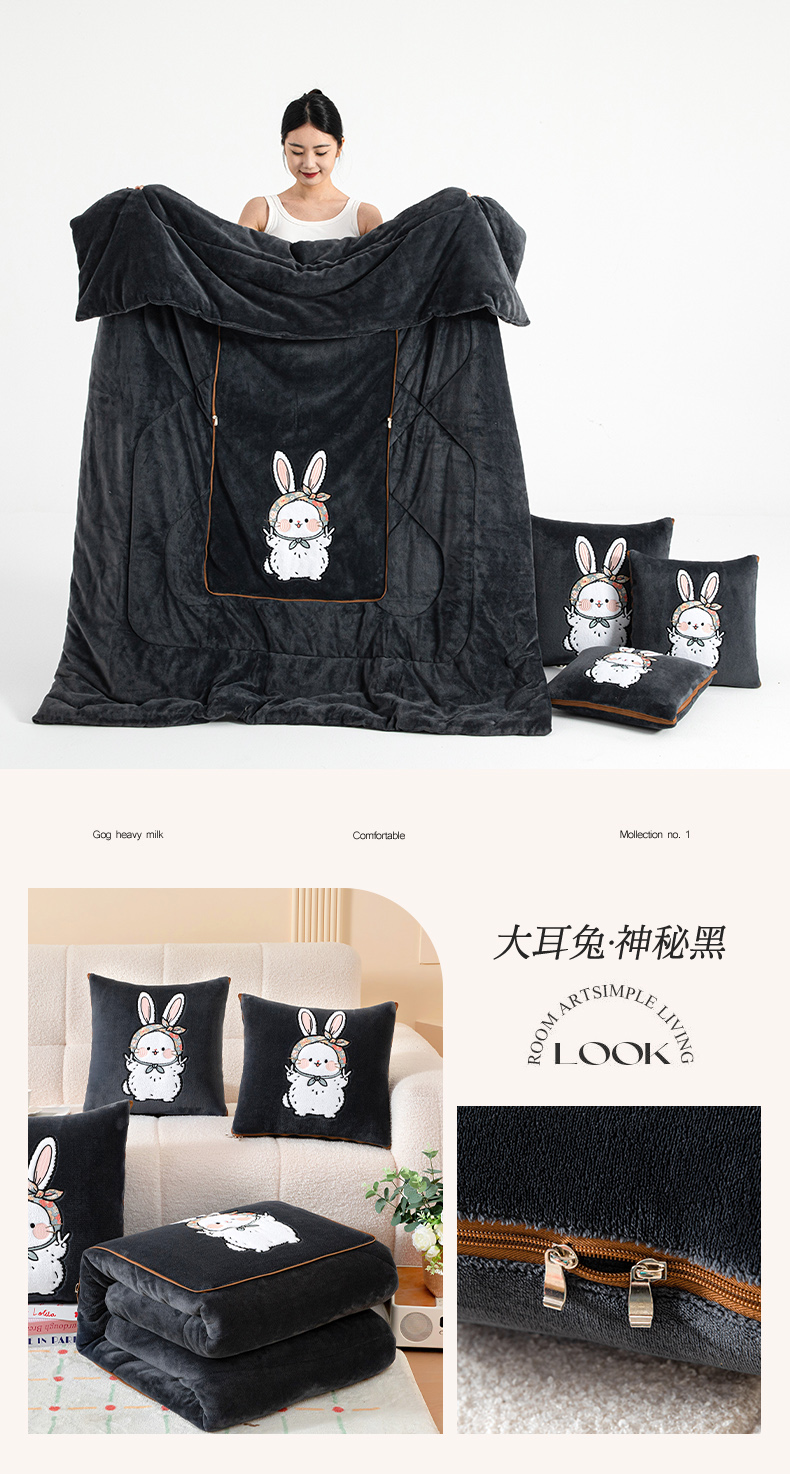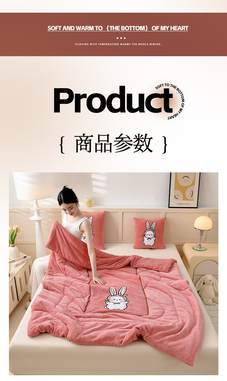 商品名称:(总)阳光依佰抱枕被 2025秋冬新款牛奶绒多功能抱枕被系列-大耳兔