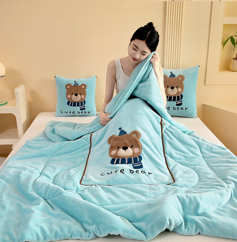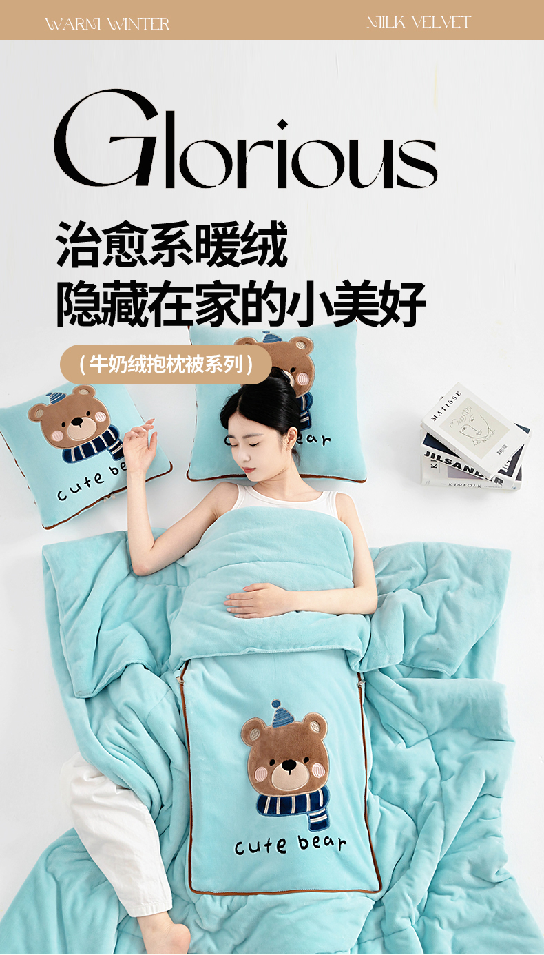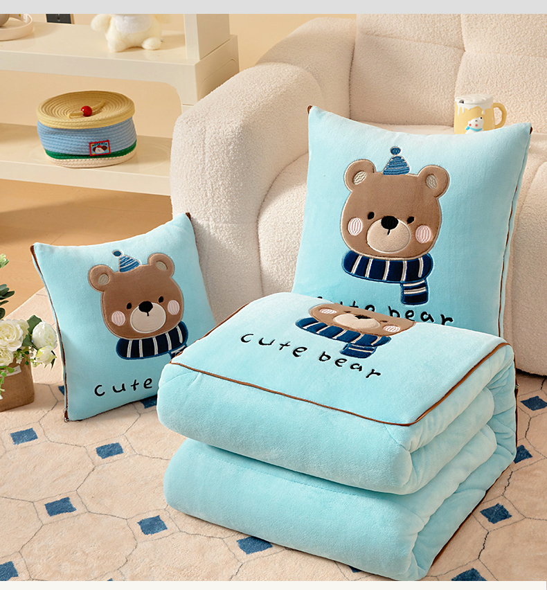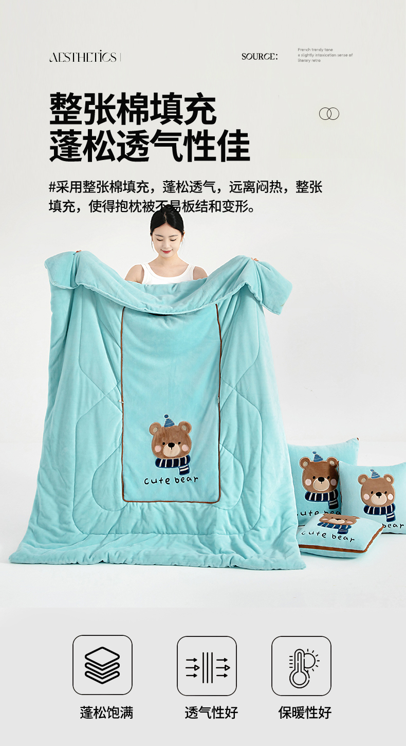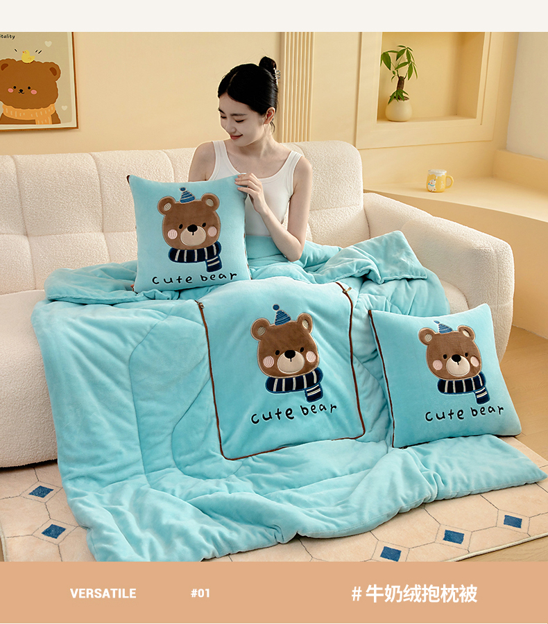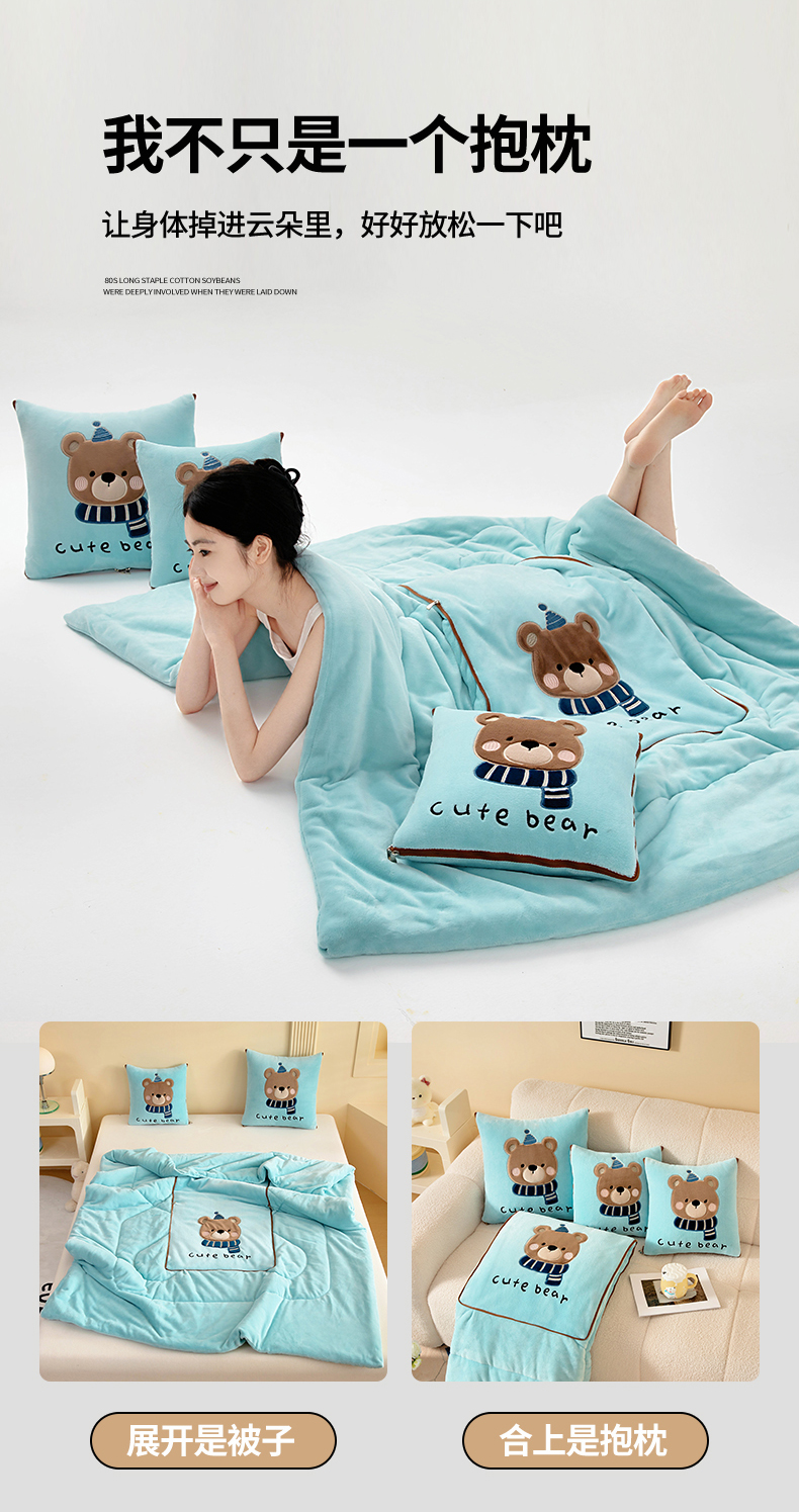 阳光依佰抱枕被 2025秋冬新款牛奶绒多功能抱枕被系列-抱抱熊 抱抱熊---浅蓝色
