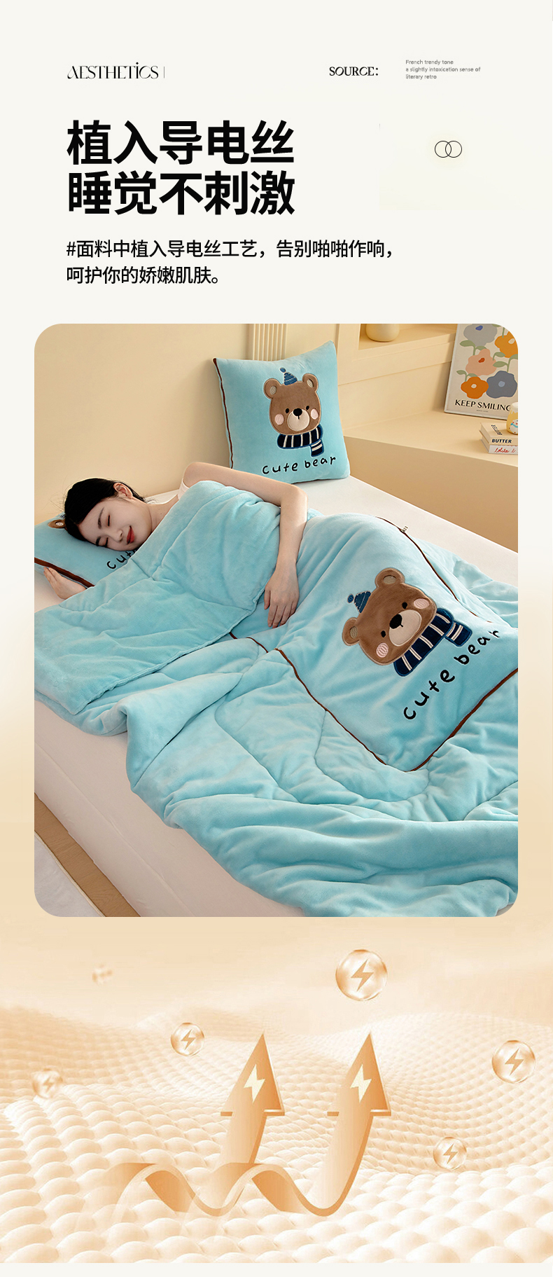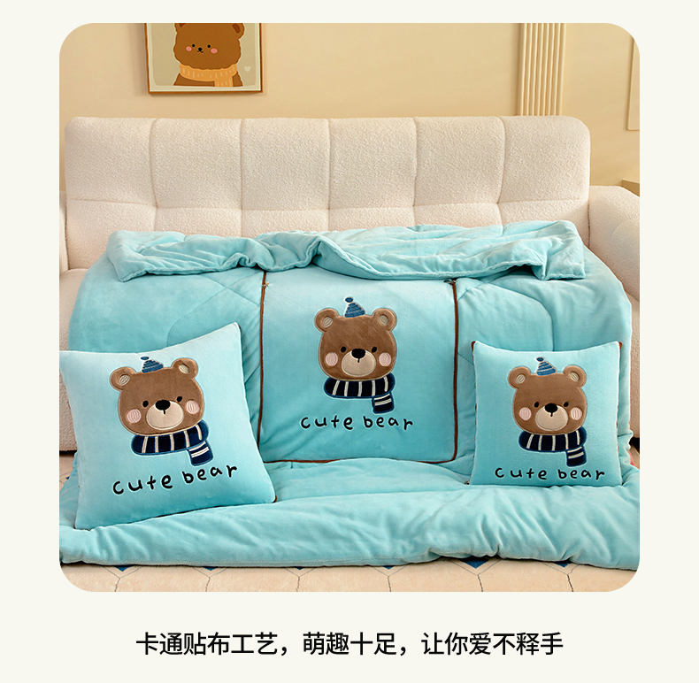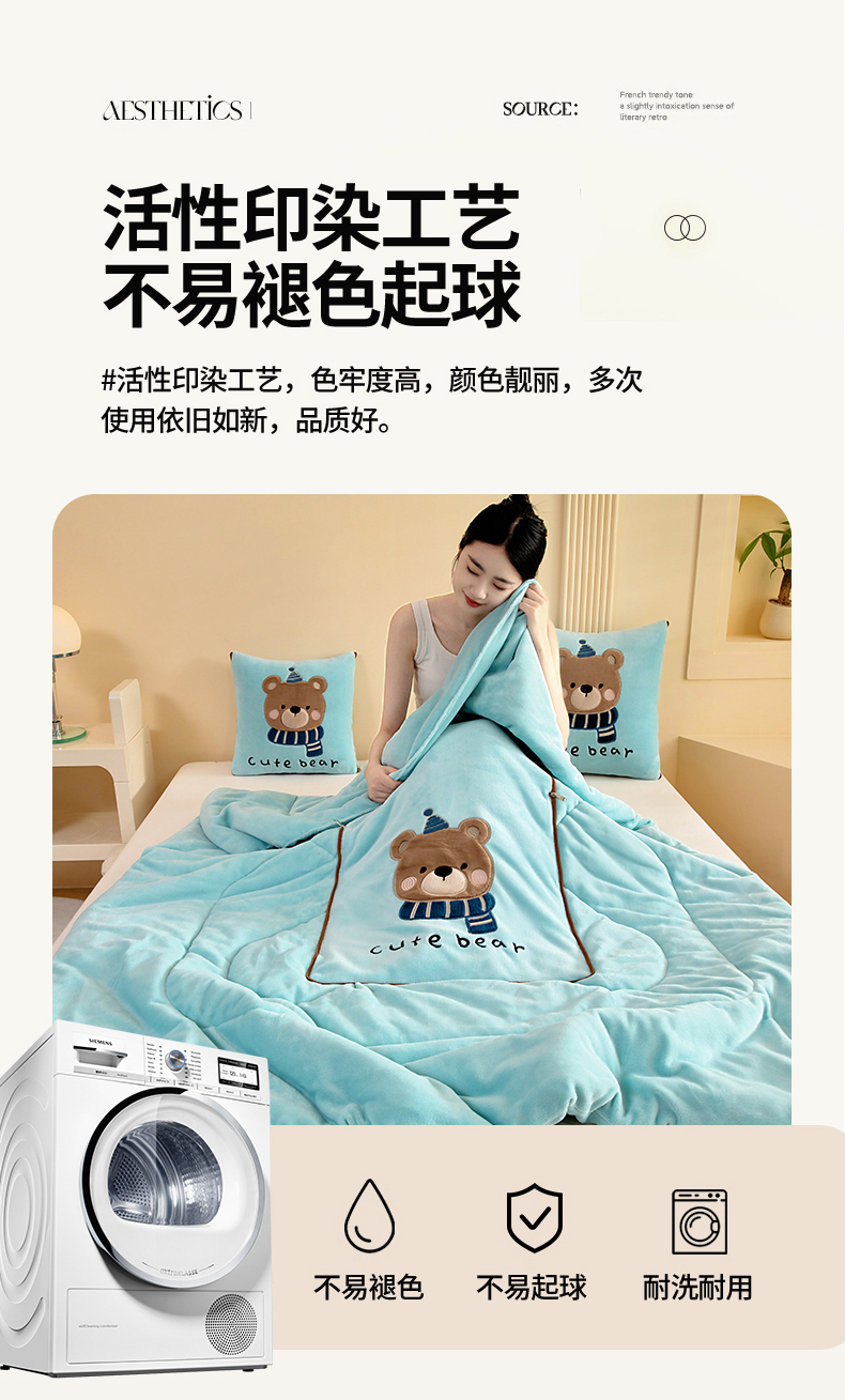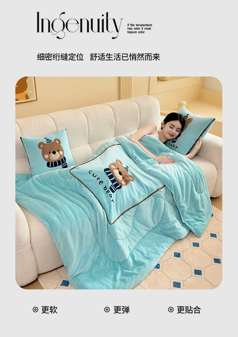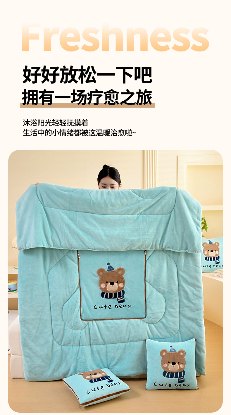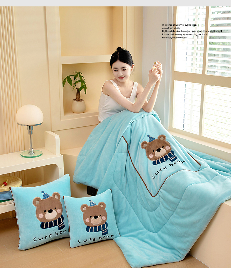 阳光依佰抱枕被 2025秋冬新款牛奶绒多功能抱枕被系列-抱抱熊 抱抱熊---浅蓝色