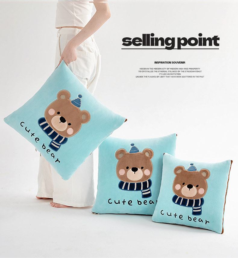 (总)阳光依佰 2024新款四季款全棉贴布绣华夫格抱枕被--元气熊系列,元气熊-冰川蓝,元气熊-橄榄绿,元气熊-奶昔灰,元气熊-青柠,元气熊-樱花粉