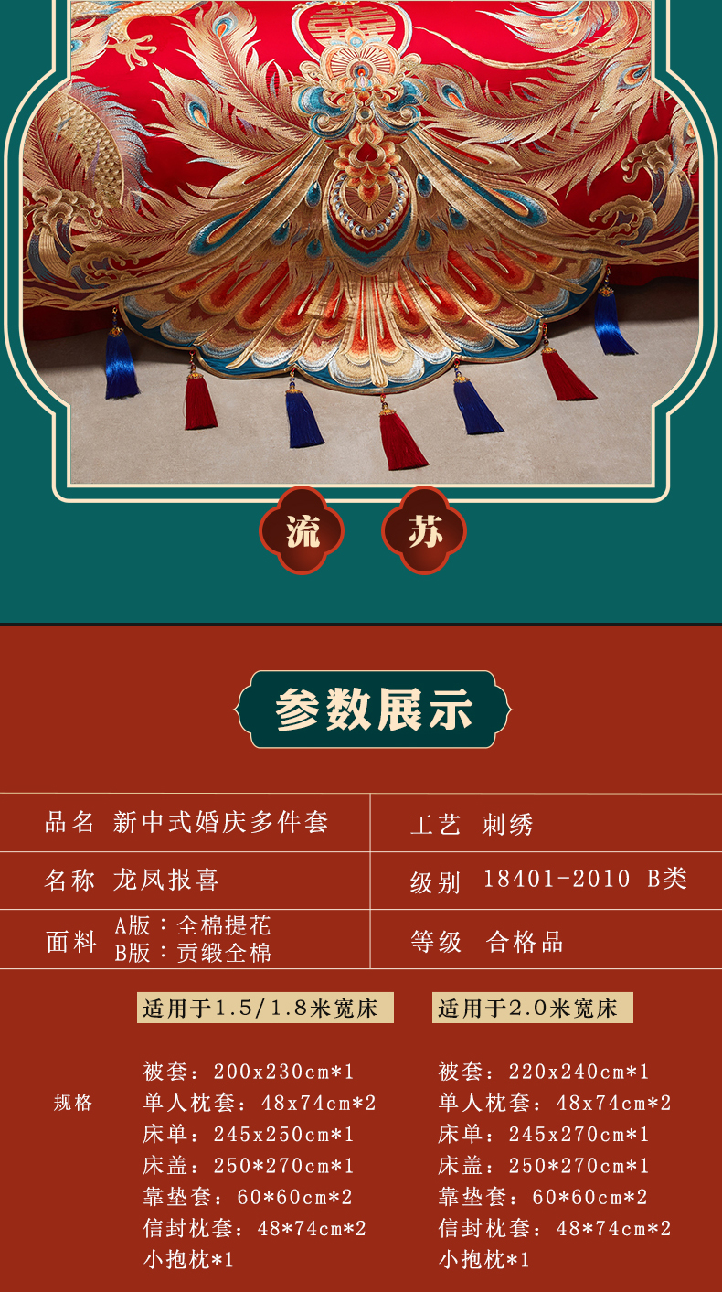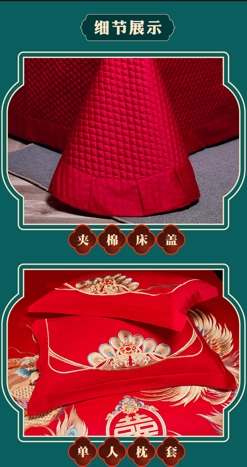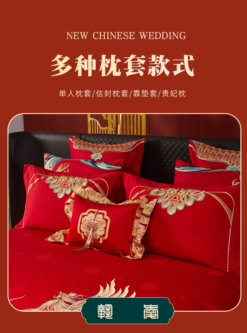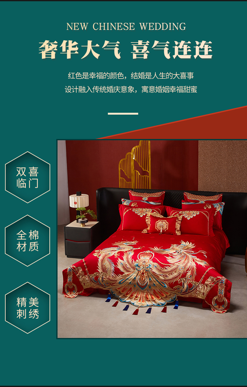 当前位置: 91家纺网 > 商品网购 > 床品套件 > 四件套 > 婚庆四件套 > 宏羽纺家纺 2025新款高支高密全棉提花新中式婚庆多件套 高支高密龙凤报喜