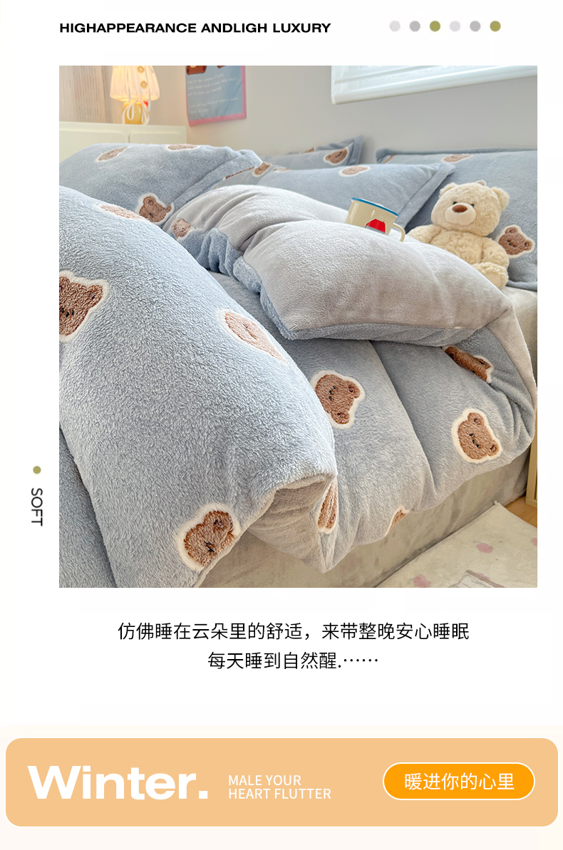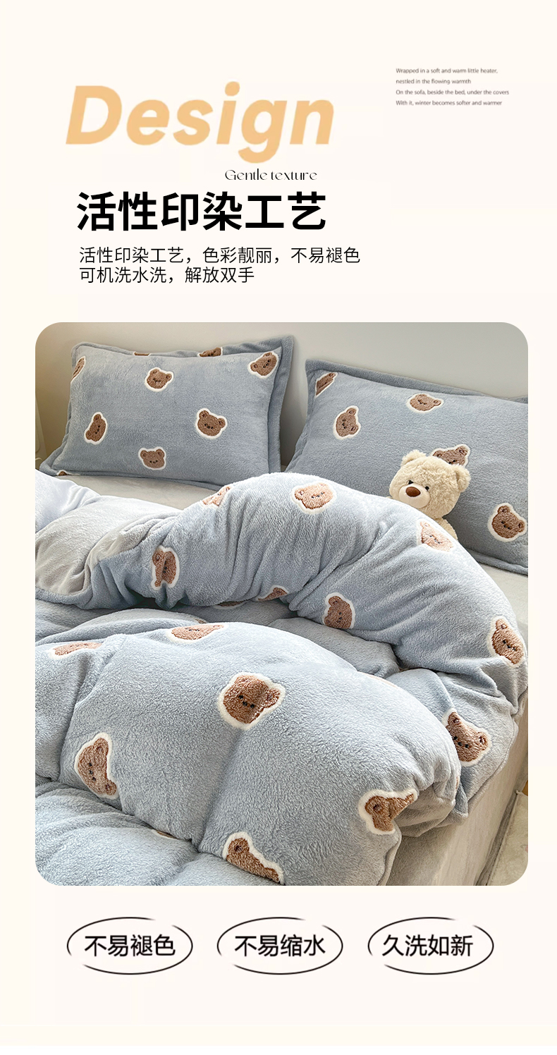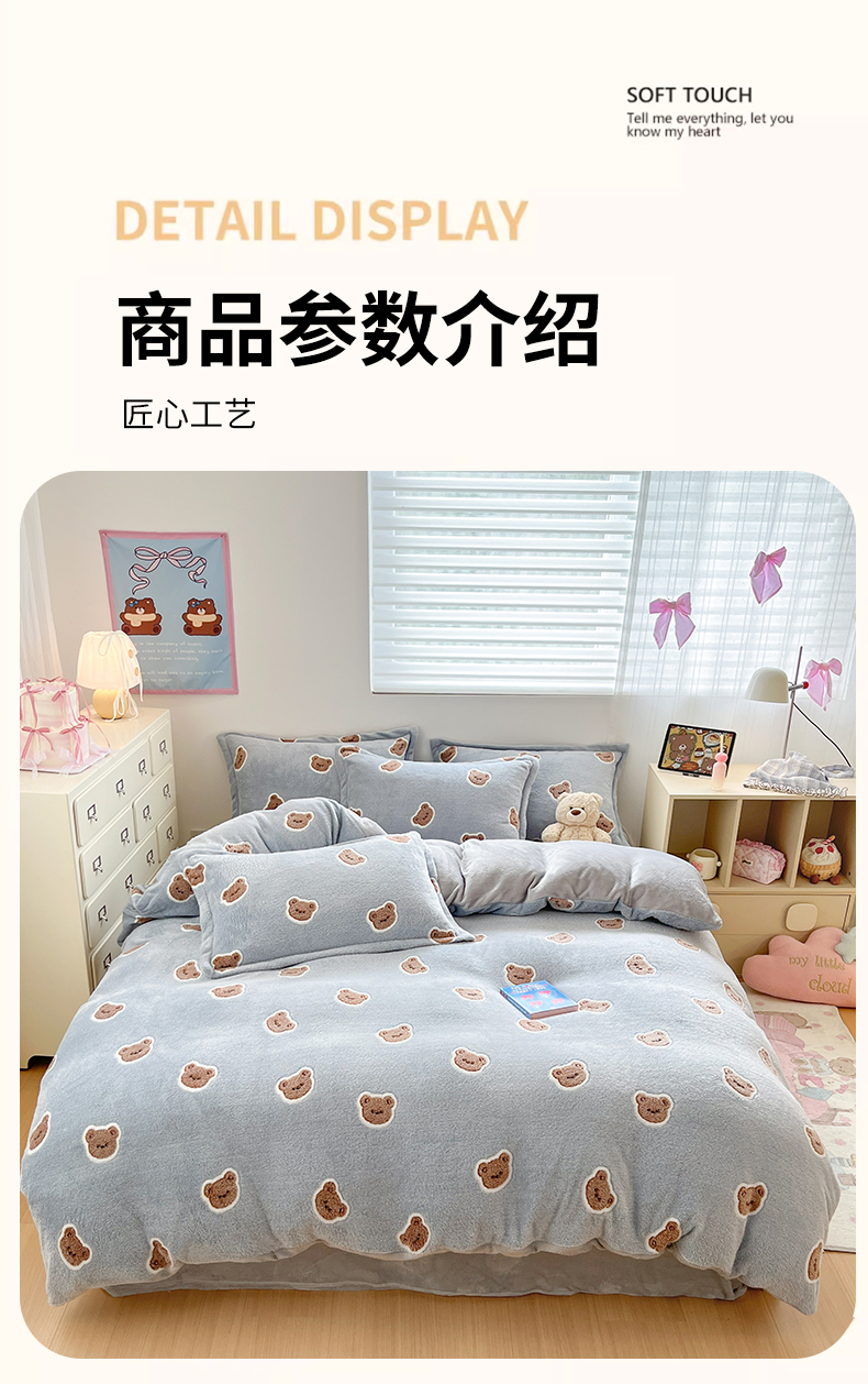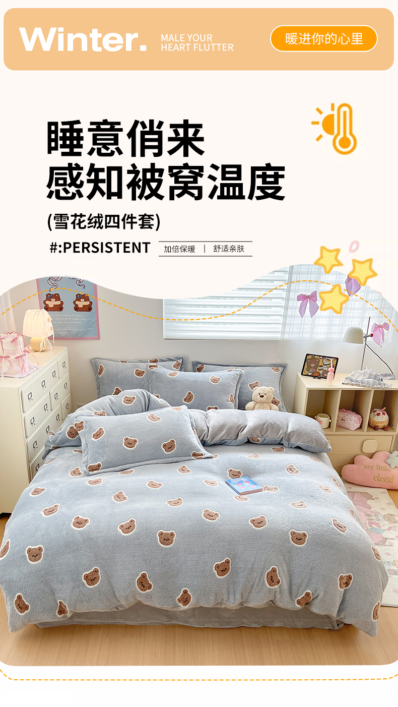 当前位置: 91家纺网 > 商品网购 > 床品套件 > 四件套 > 其它四件套 > 川悦生活 2025新款立体雪花绒印花大床四件套系列一场景一 波波熊
