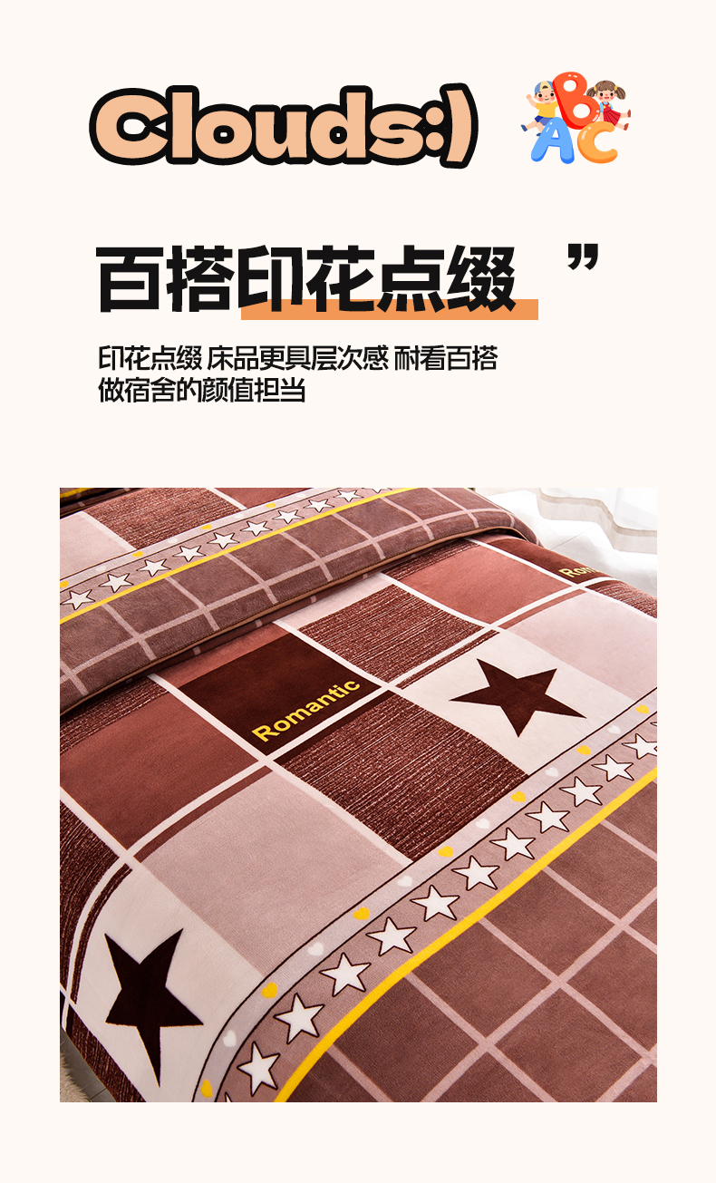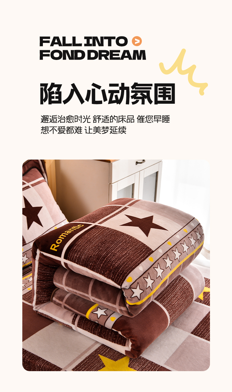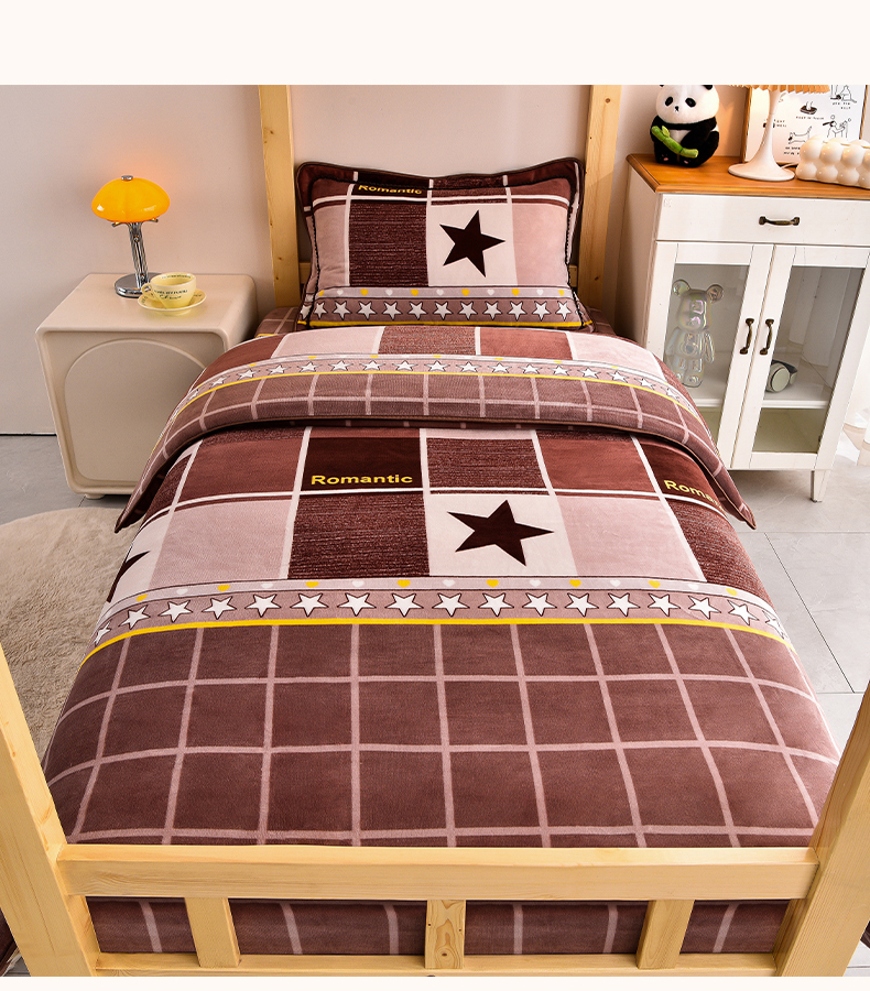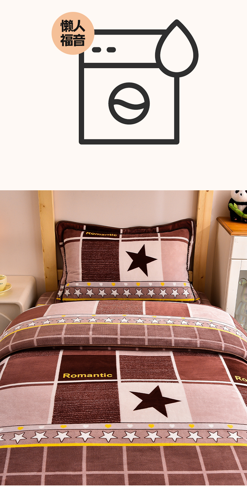 当前位置: 91家纺网 > 商品网购 > 床品套件 > 三件套 > 博兰蒂 2025新款床裙款高克重牛奶绒印花学生三件套 浪漫之星