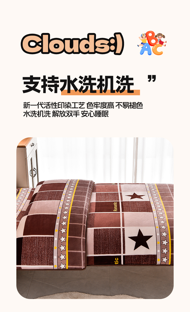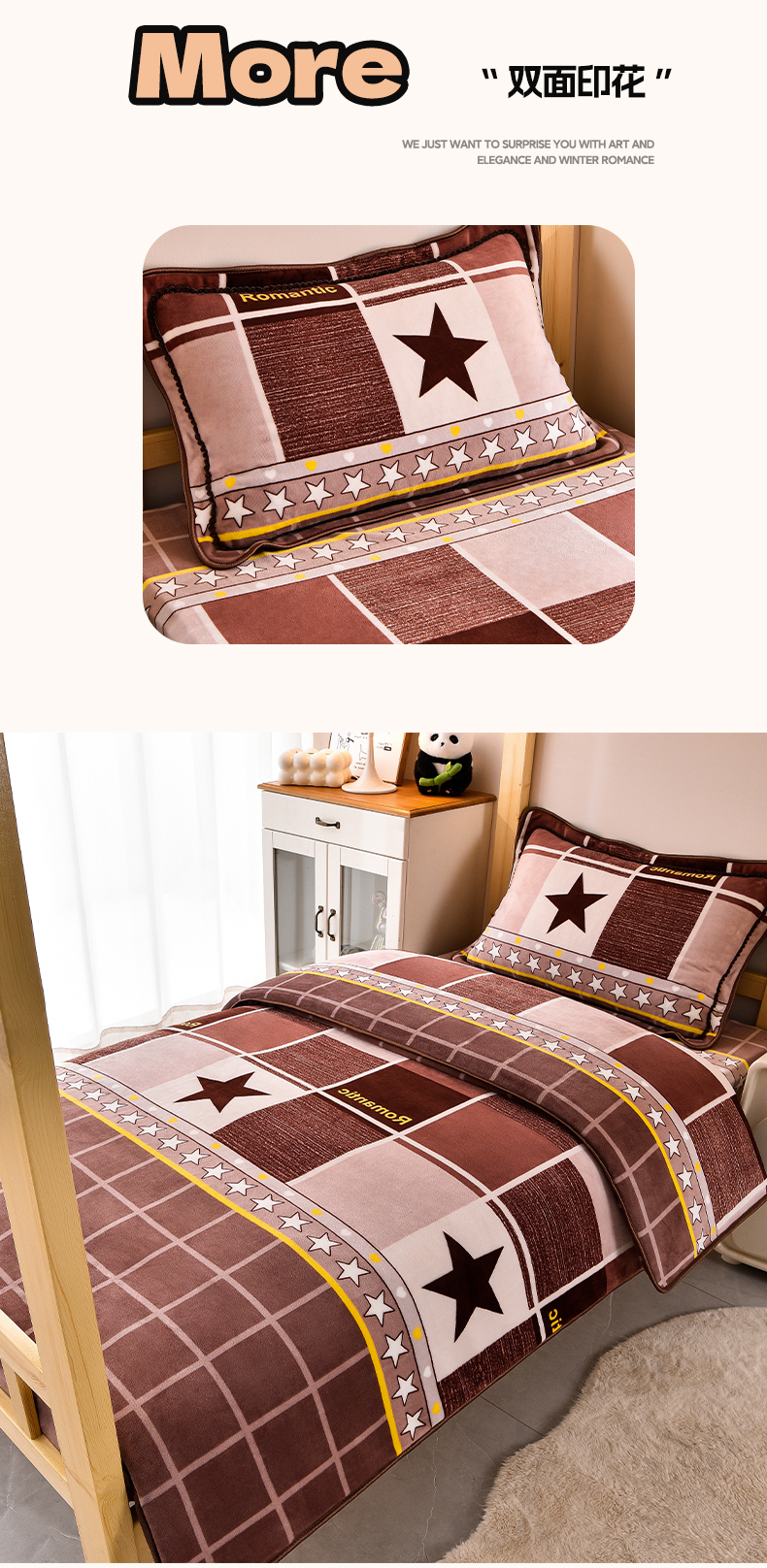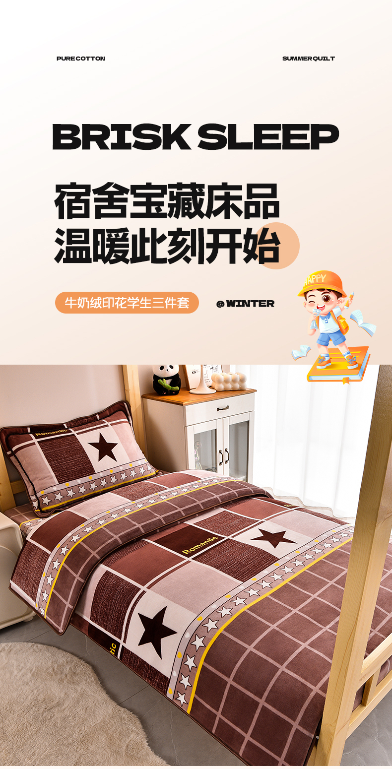 当前位置: 91家纺网 > 商品网购 > 床品套件 > 三件套 > 博兰蒂 2025新款床裙款高克重牛奶绒印花学生三件套 浪漫之星