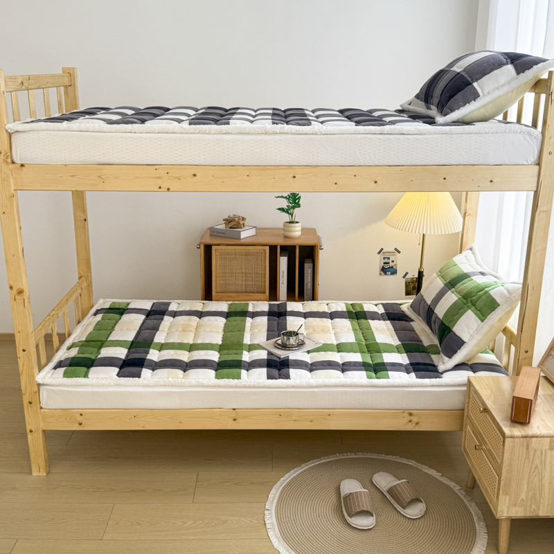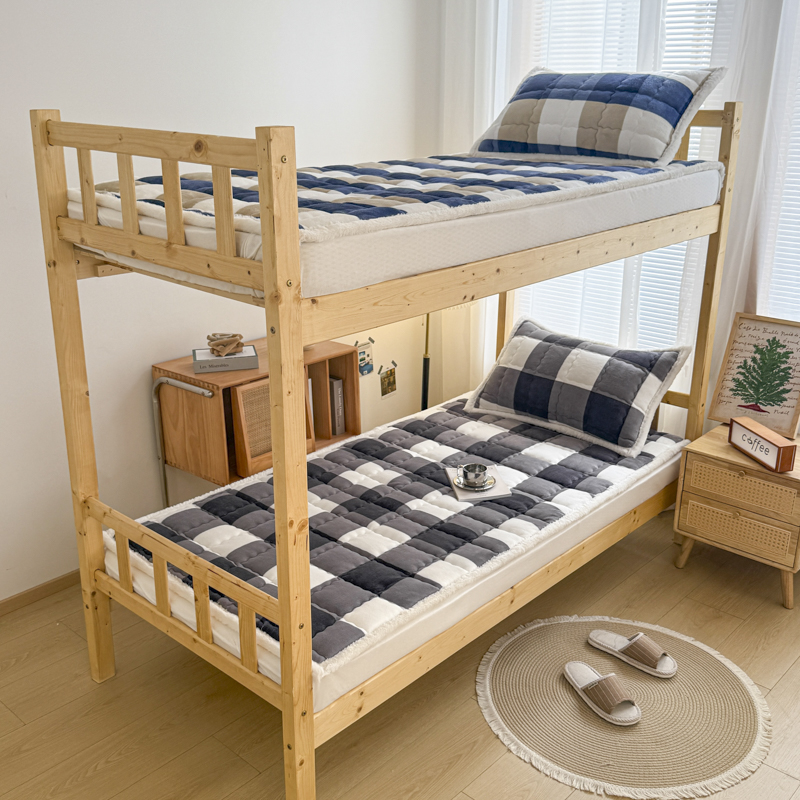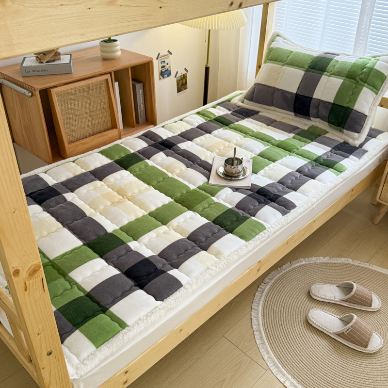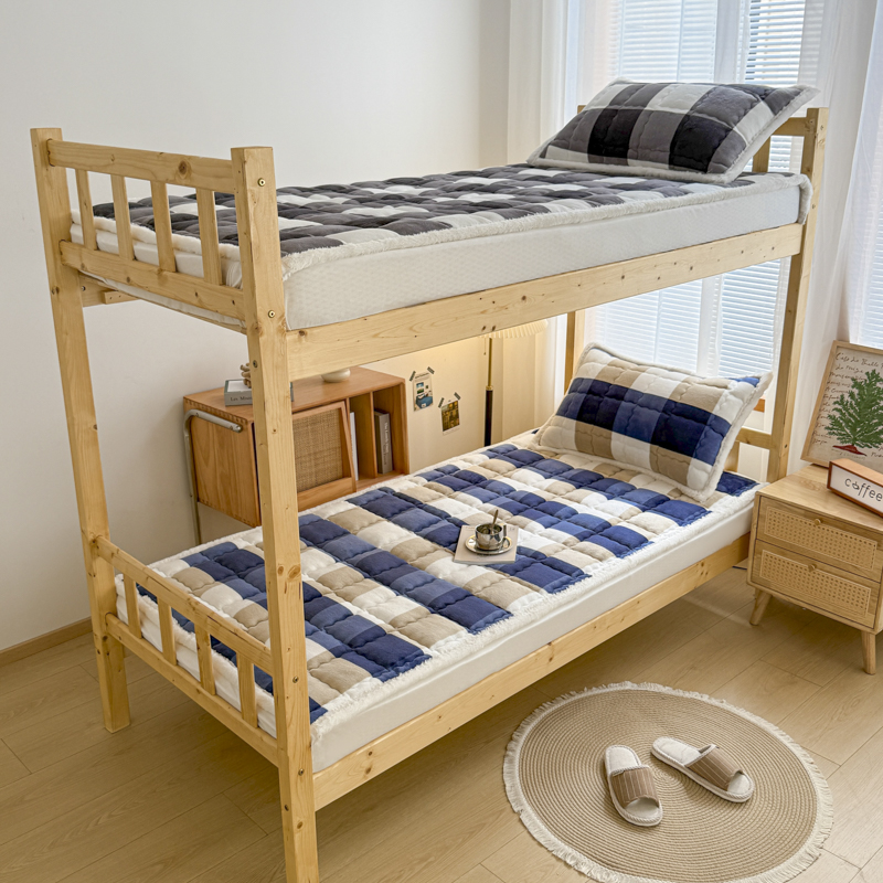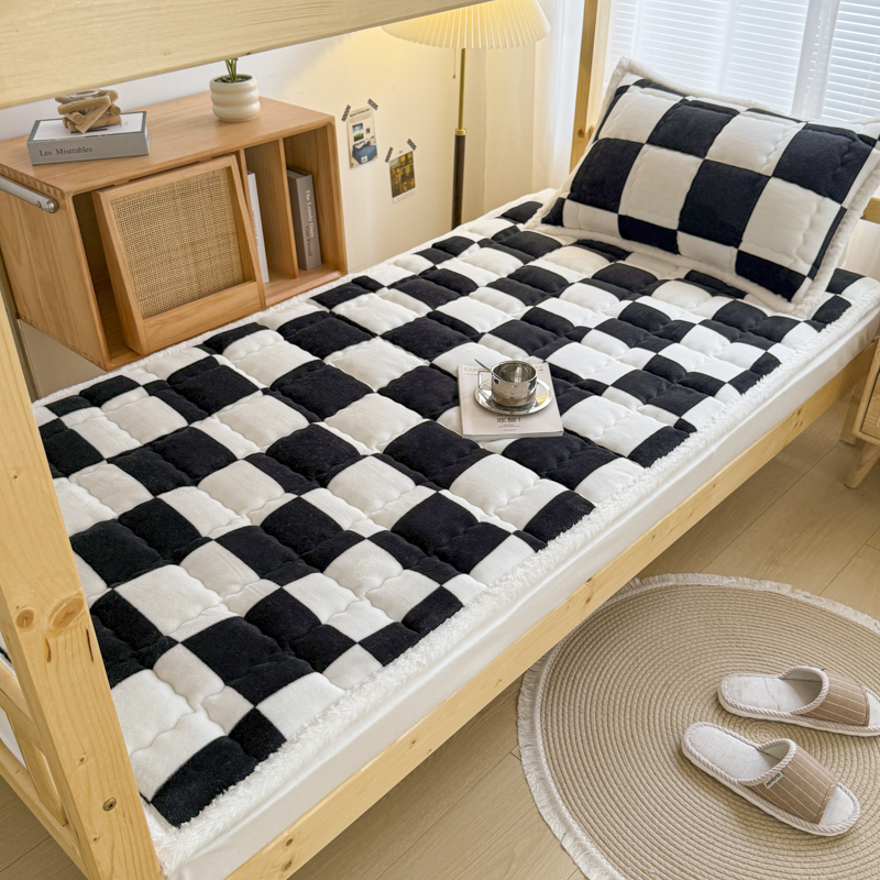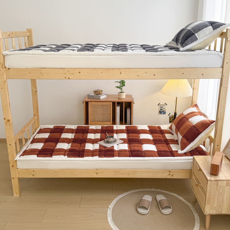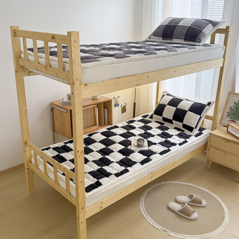 迪梦思家纺 2025新款A类牛奶绒无印风格子床褥床护垫学生床垫--学生床图 平铺款-灰简格