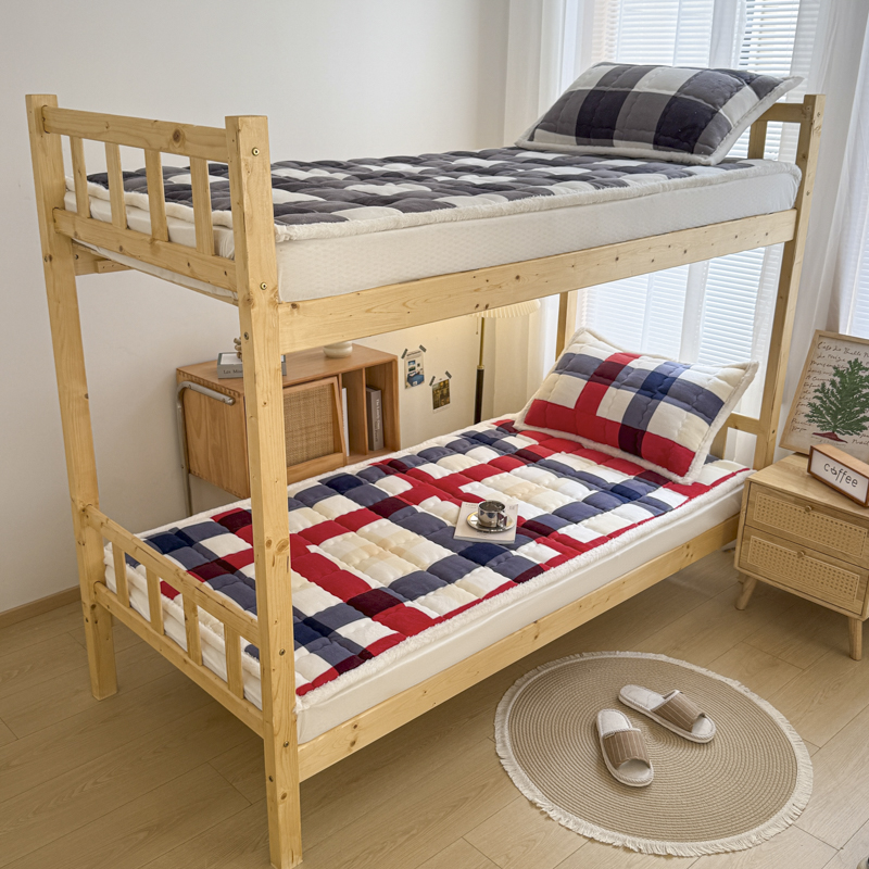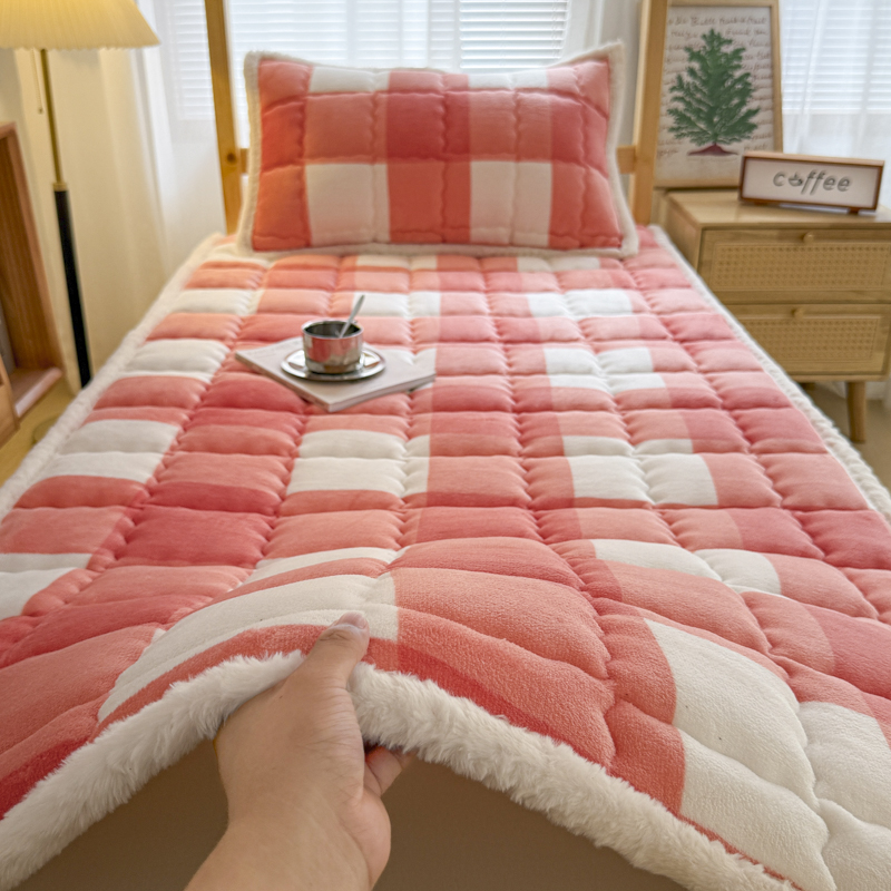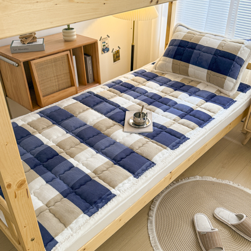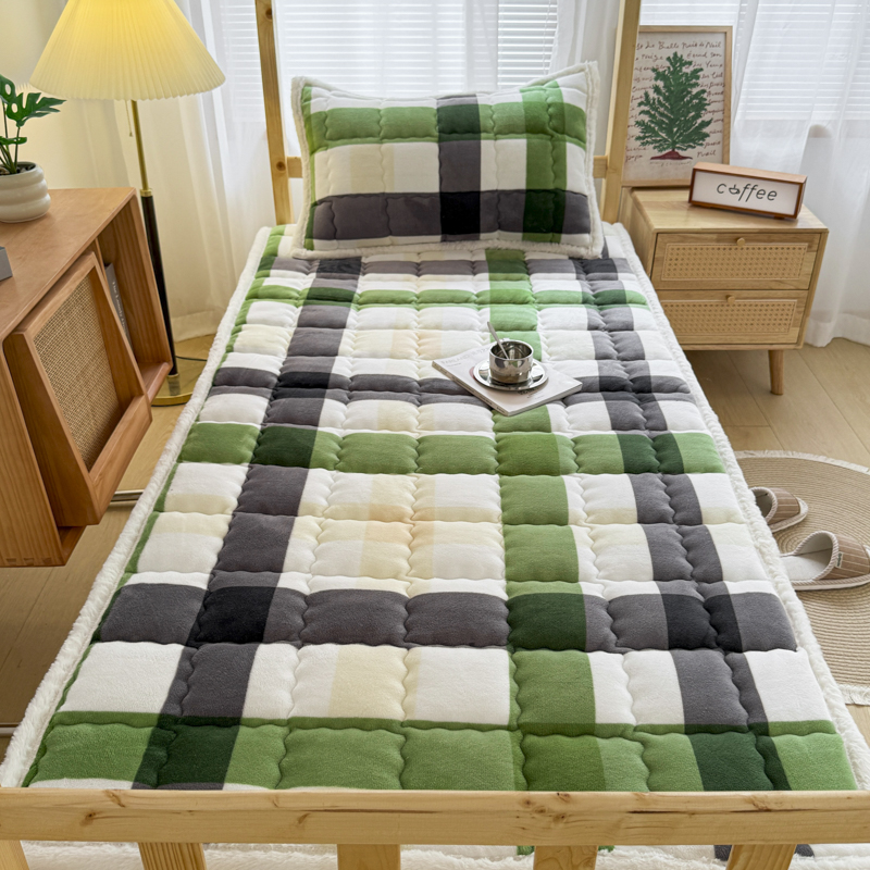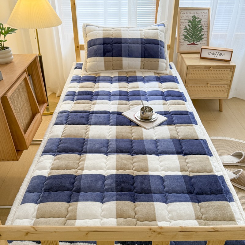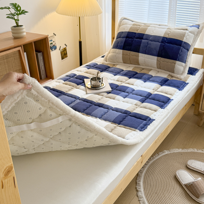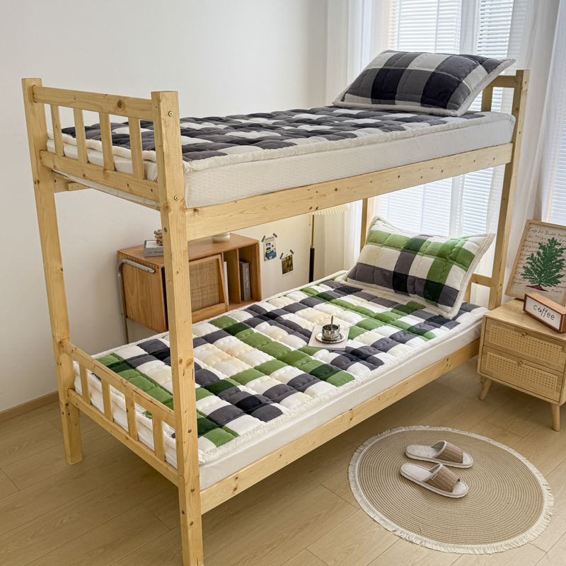 迪梦思家纺 2025新款A类牛奶绒无印风格子床褥床护垫学生床垫--学生床图 平铺款-灰简格