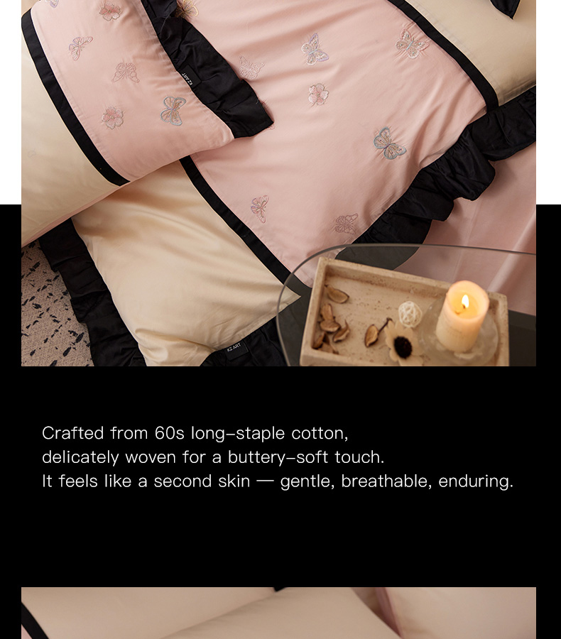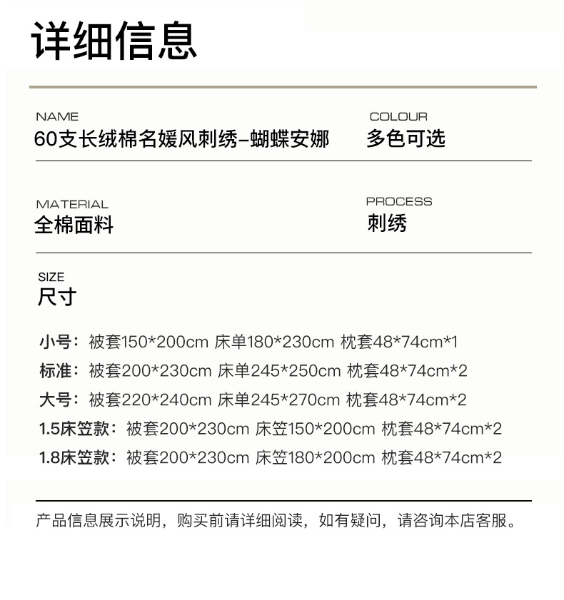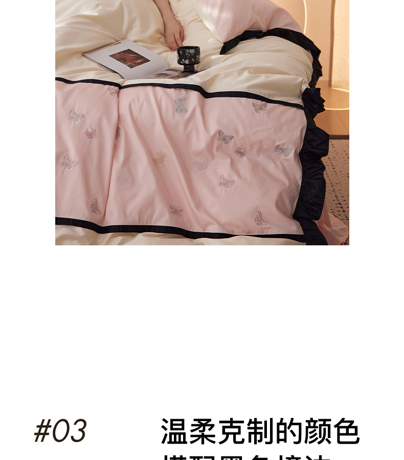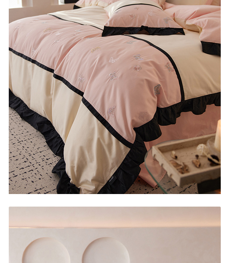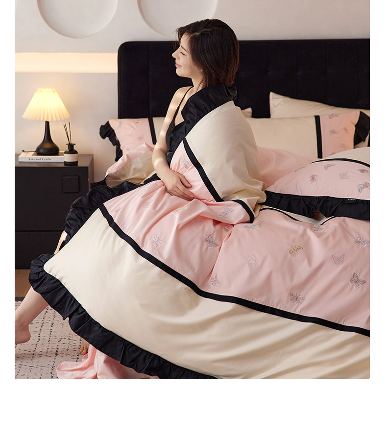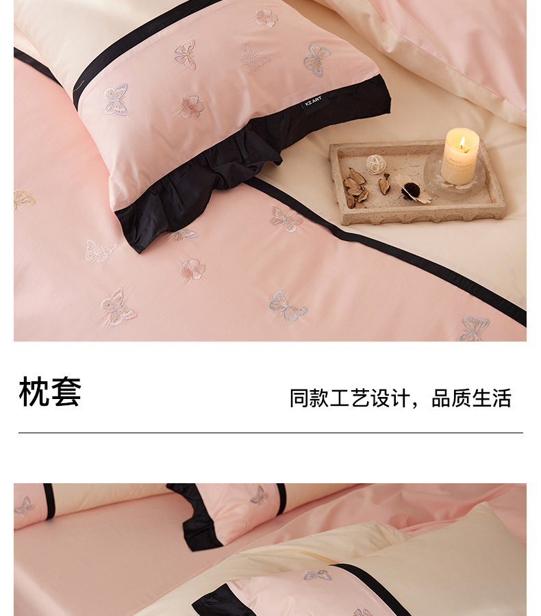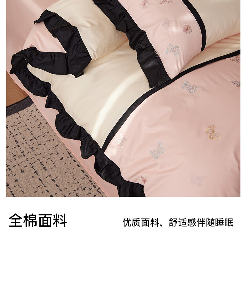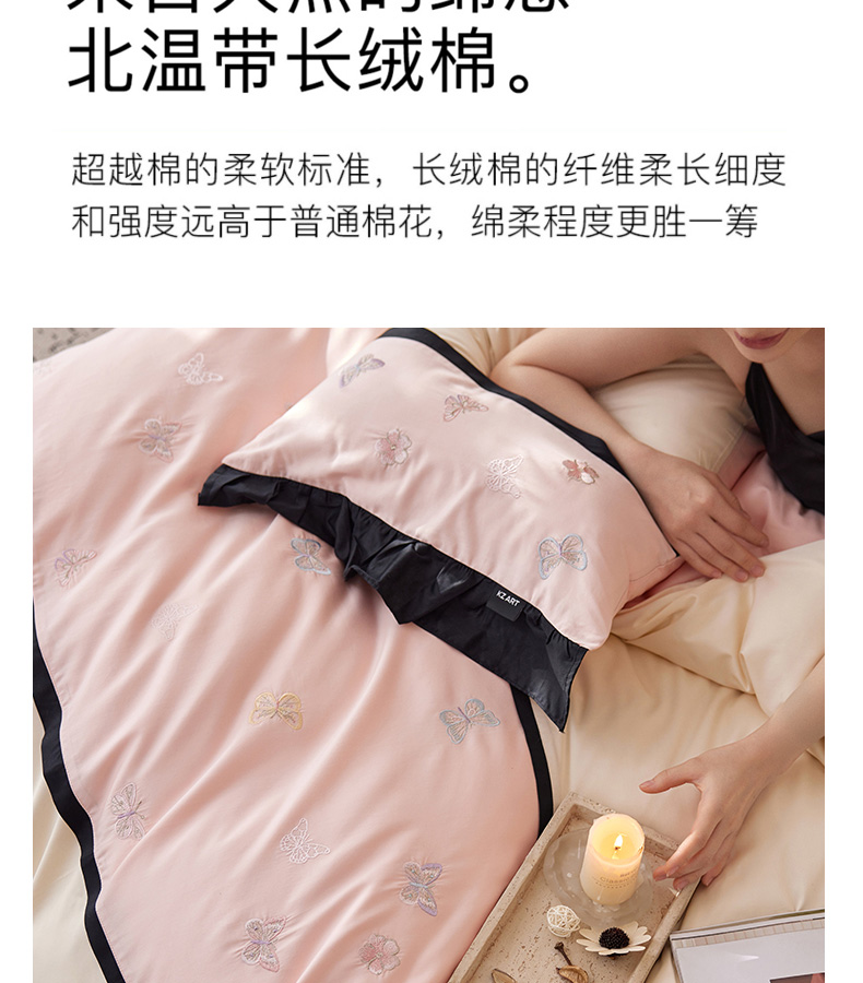 商品名称:卡姿家纺 2025秋冬60支长绒棉名媛风刺绣四件套-蝴蝶安娜 蝴蝶安娜-粉