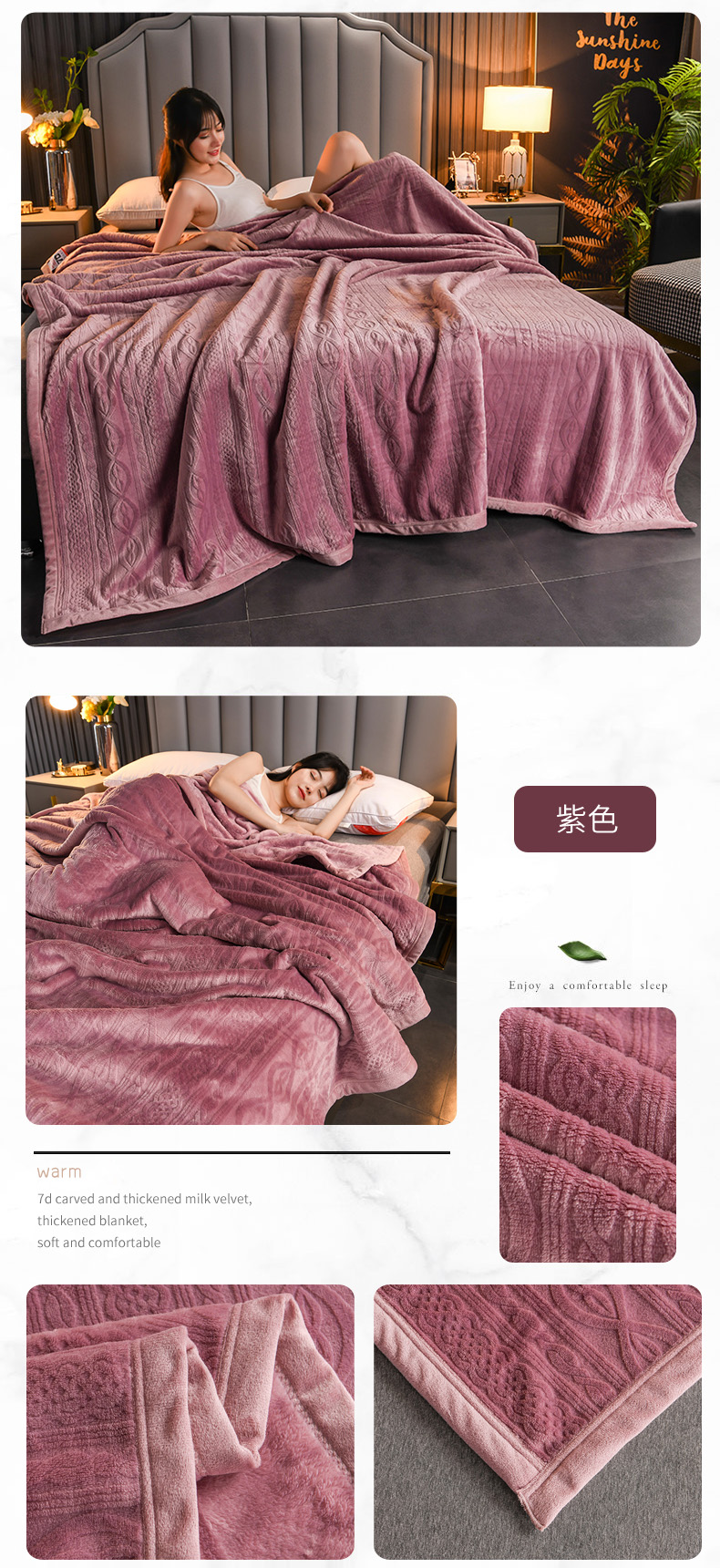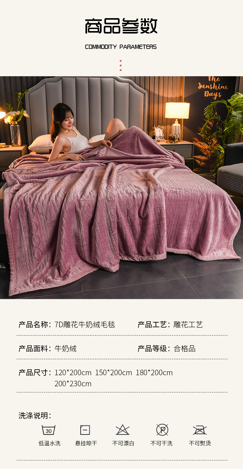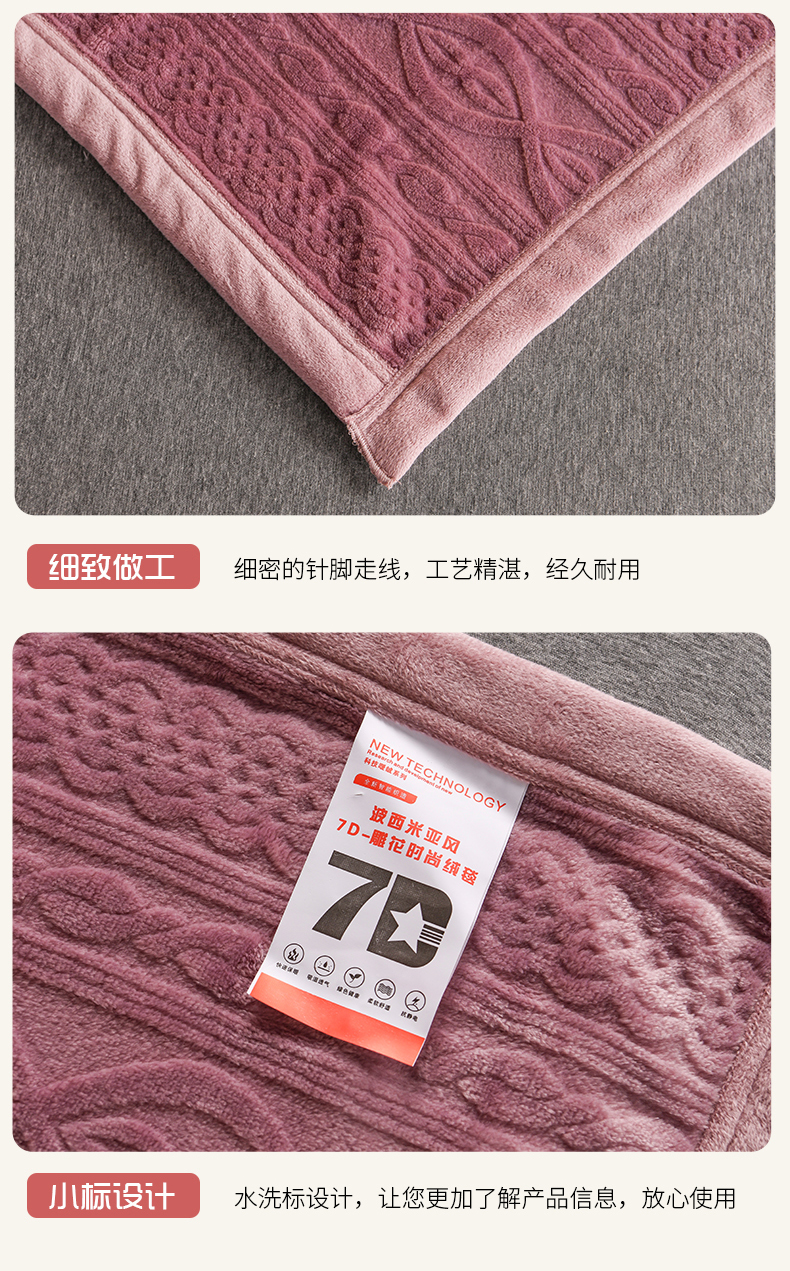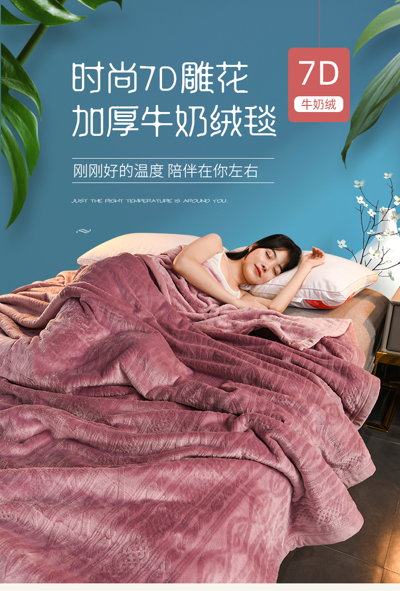 商品名称:小牛席业 2025新款7D雕花牛奶绒毛毯 紫色
