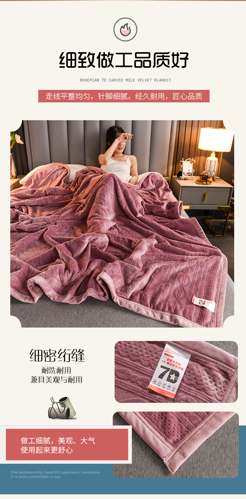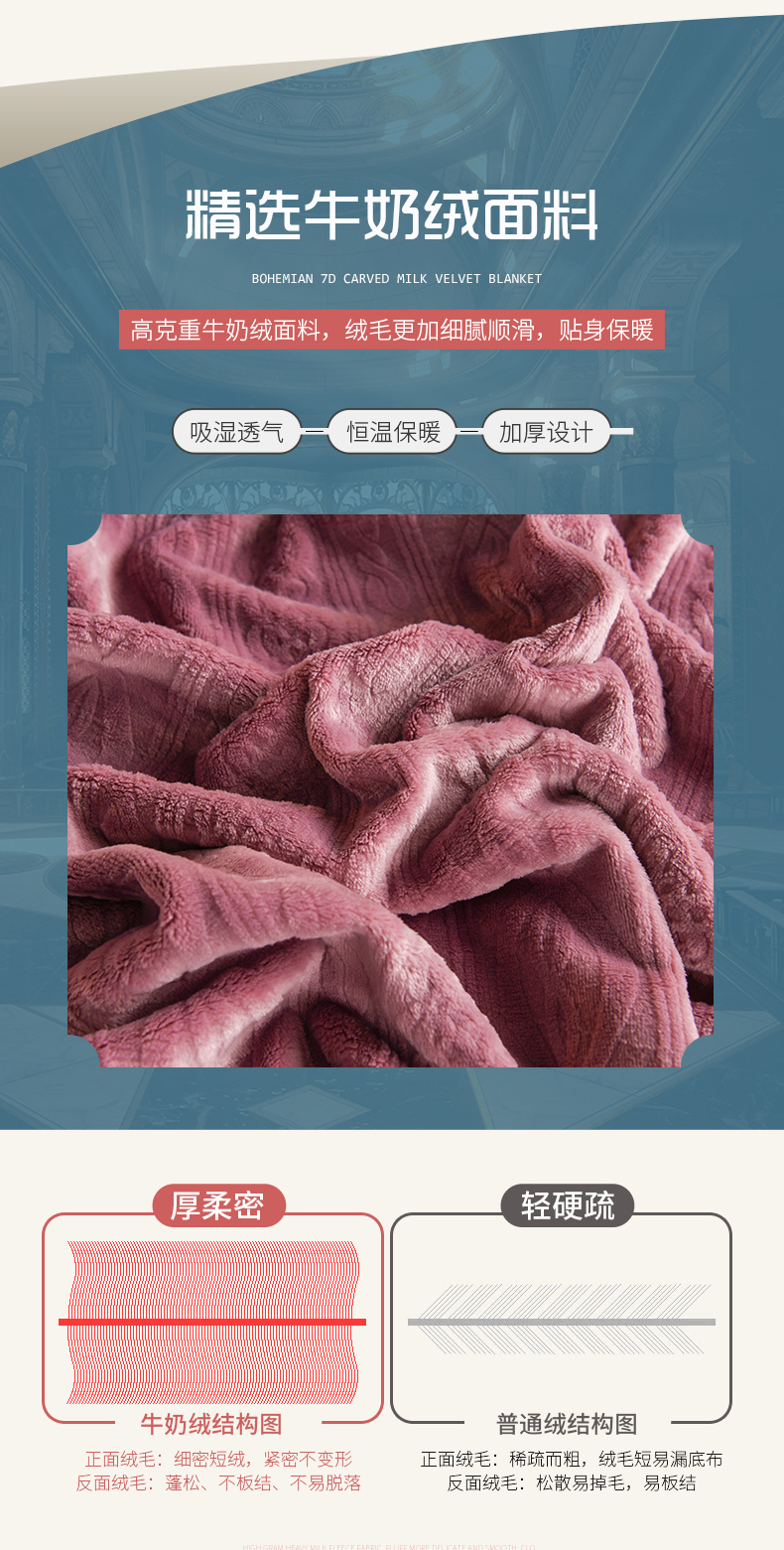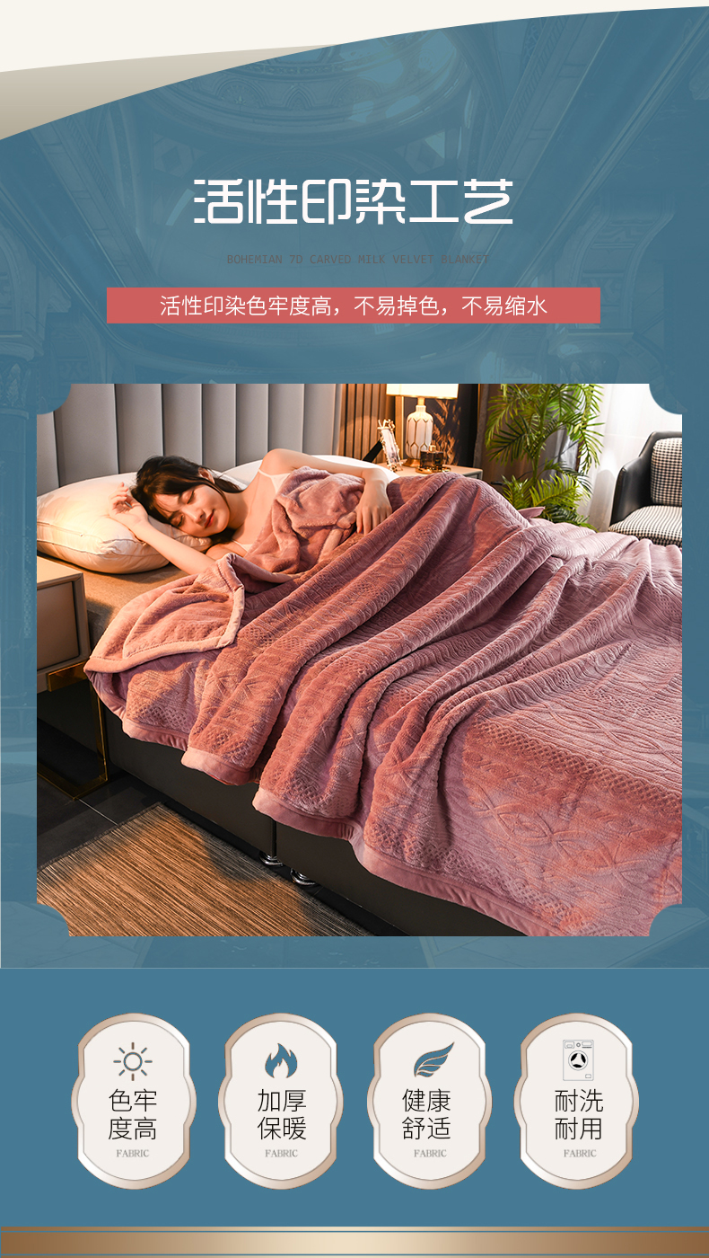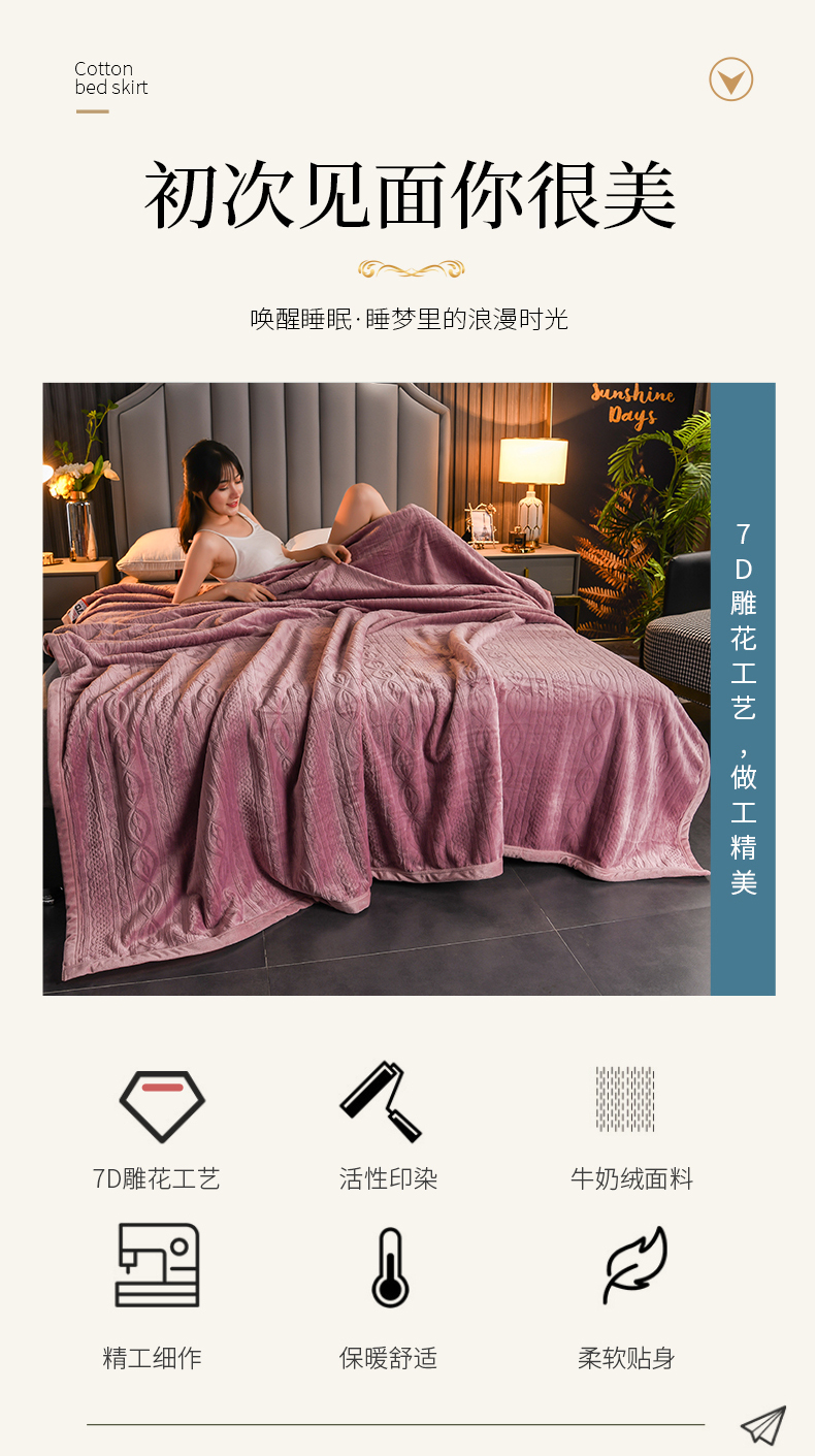 商品名称:小牛席业 2025新款7D雕花牛奶绒毛毯 紫色