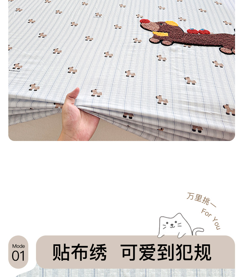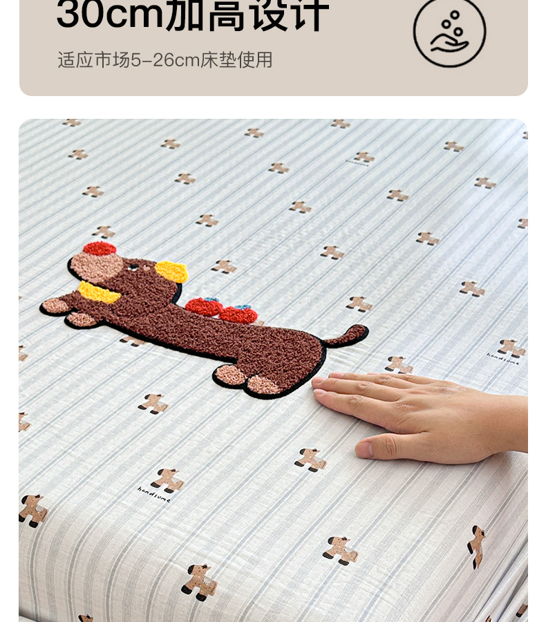 • 91家纺网 家纺一手货源 找家纺 卡姿家纺 2025秋冬全棉双层纱-床笠三件套 床笠-苹果腊肠狗