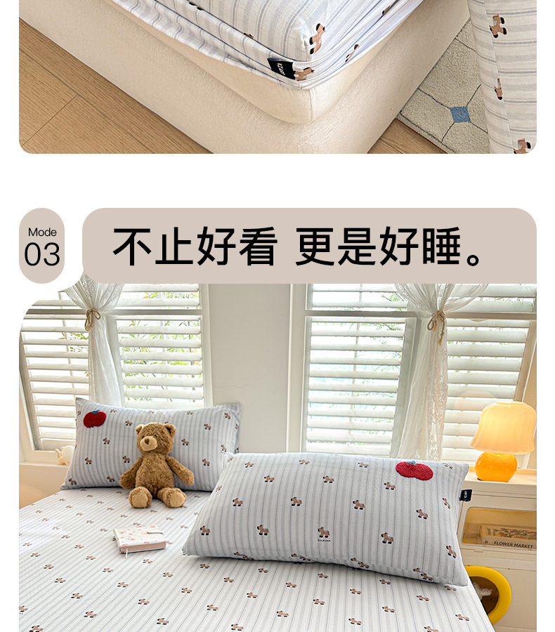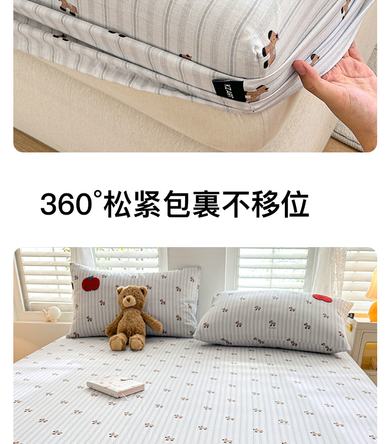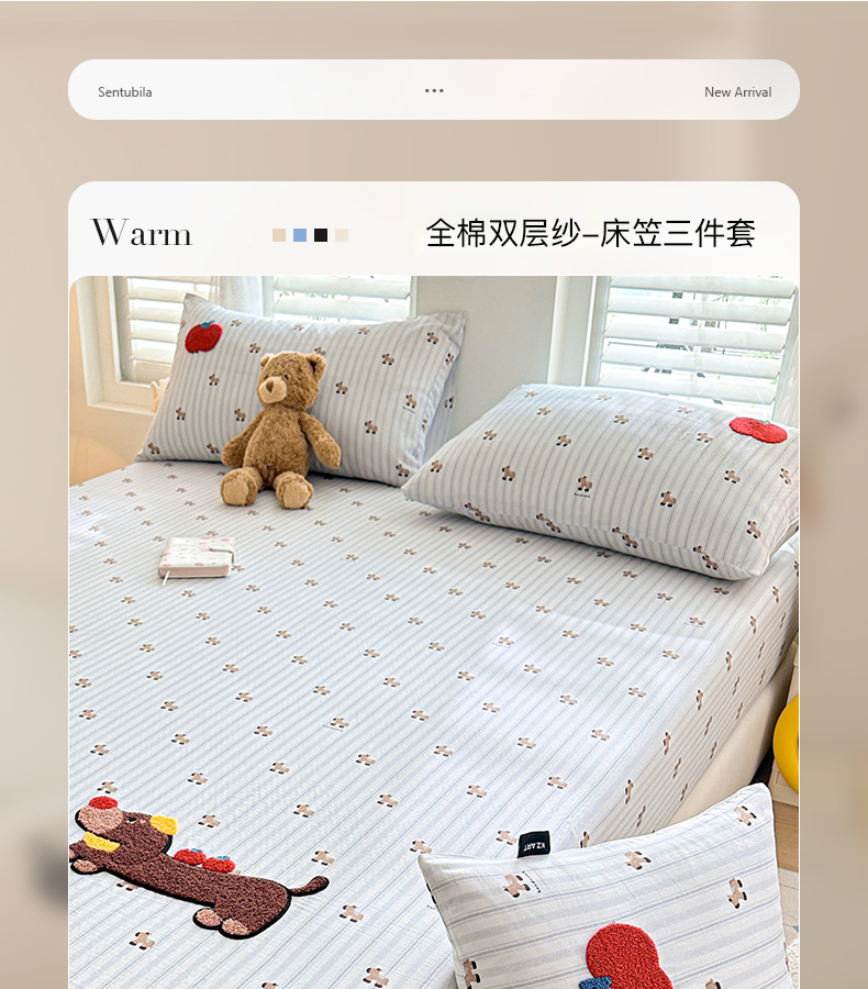 (总)卡姿家纺 2026春夏全棉双层纱床盖式床笠三件套,彩球小猫,圣诞树,糖果小熊,小狗贝塔,小狗喜乐,小狗元宝