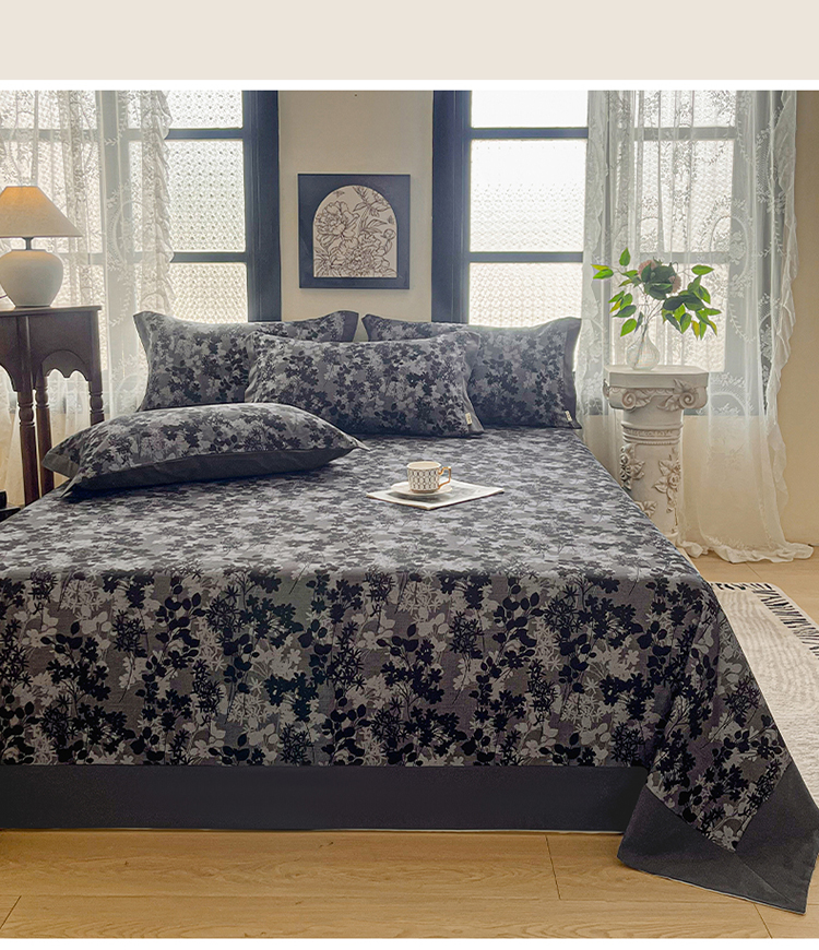 慕梵家居2025新款100%全棉磨毛包边单床单 繁花藤叙