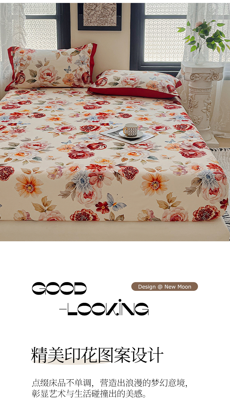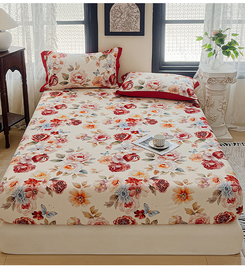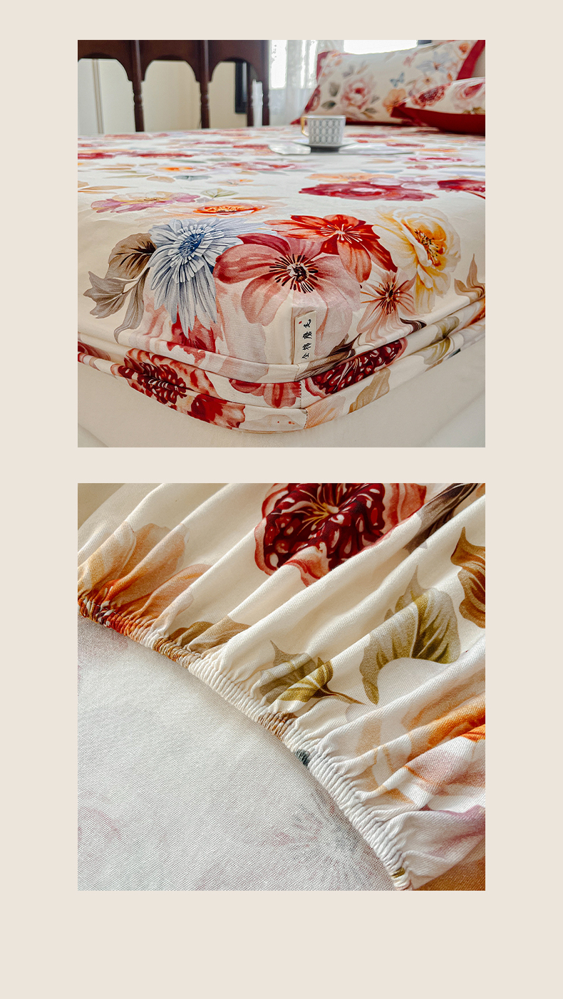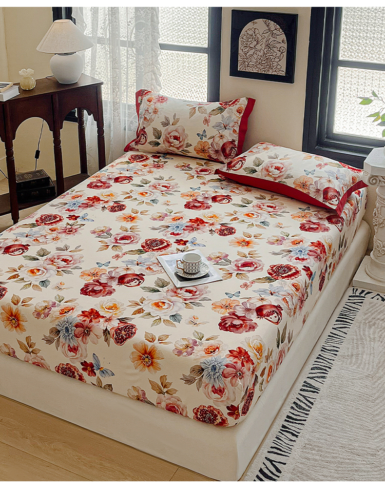 (总)慕梵家居2025新款100%全棉磨毛床笠纯棉磨毛床罩,繁花藤叙,红色玫瑰,暮秋鎏金,石榴花红,石榴花灰,硕果累累,甜梦茶语