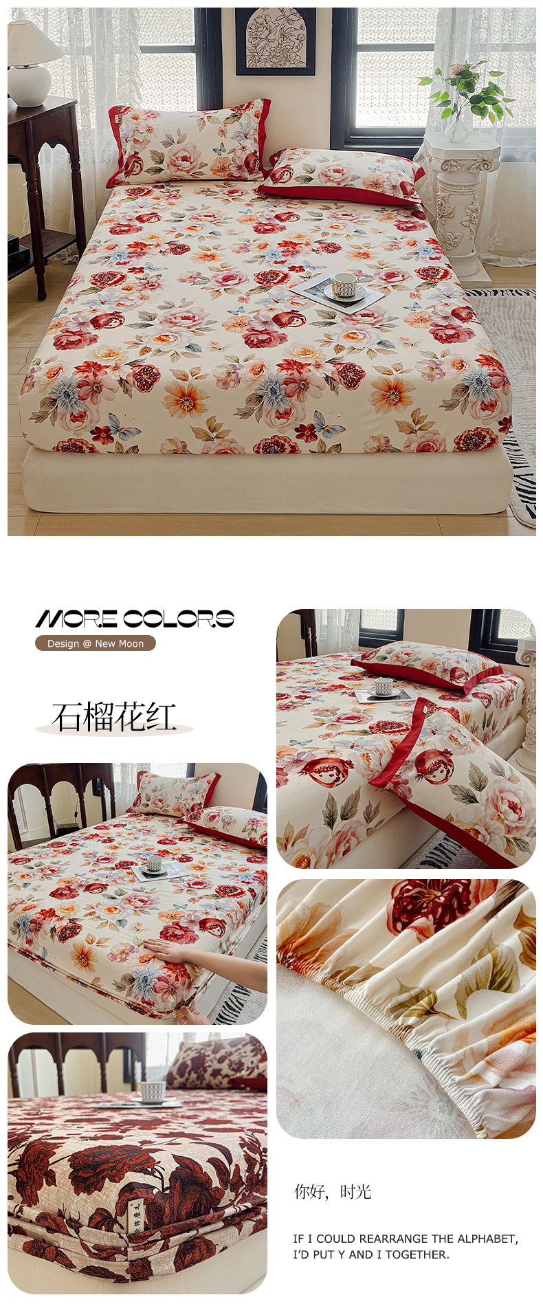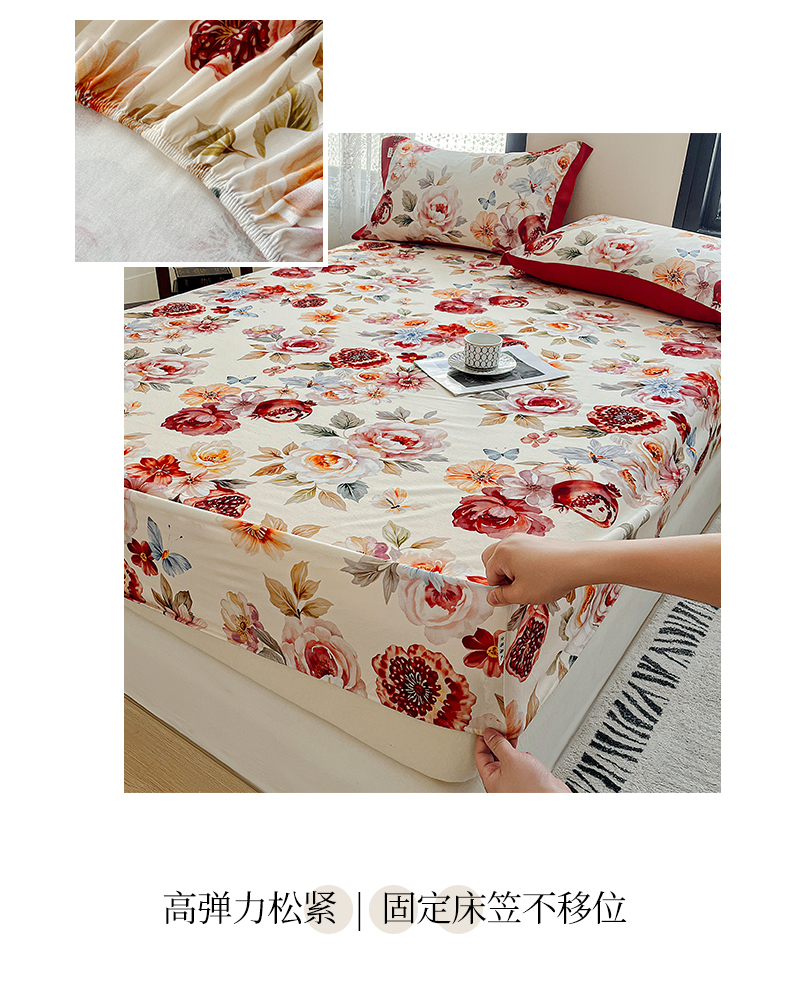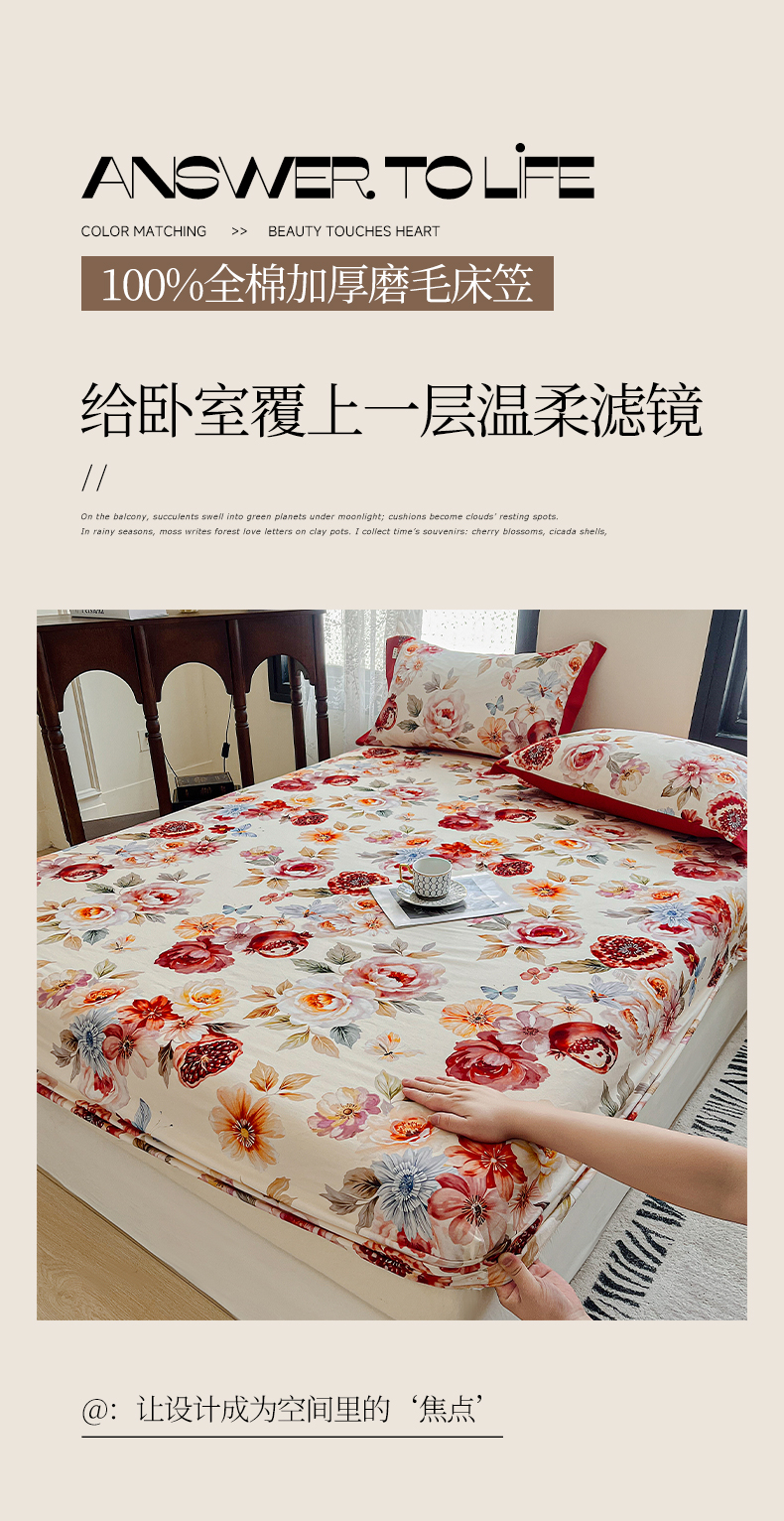 (总)慕梵家居2025新款100%全棉磨毛床笠纯棉磨毛床罩,繁花藤叙,红色玫瑰,暮秋鎏金,石榴花红,石榴花灰,硕果累累,甜梦茶语