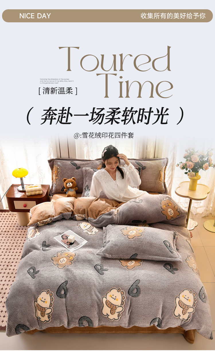 当前位置: 91家纺网 > 商品网购 > 床品套件 > 四件套 > 其它四件套 > 牵梦萦 2025新款雪花绒小清新印花四件套 啵啵龙