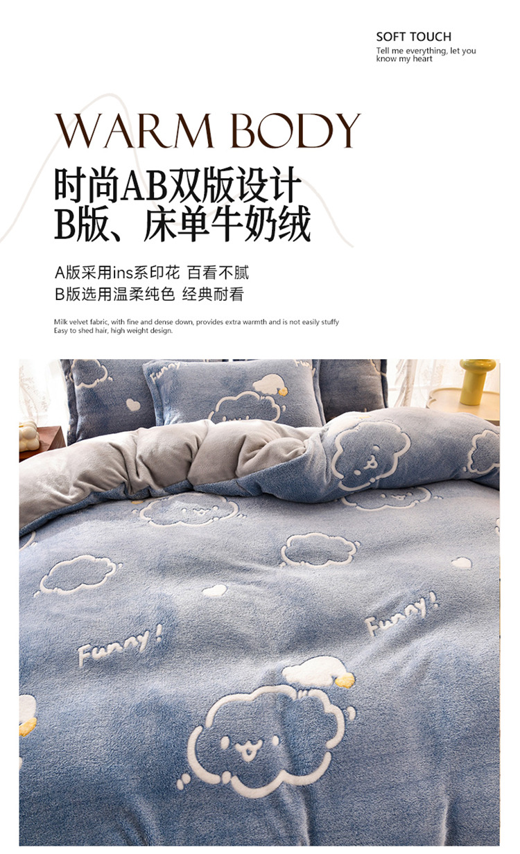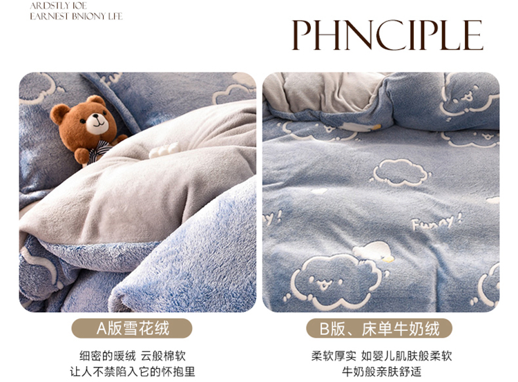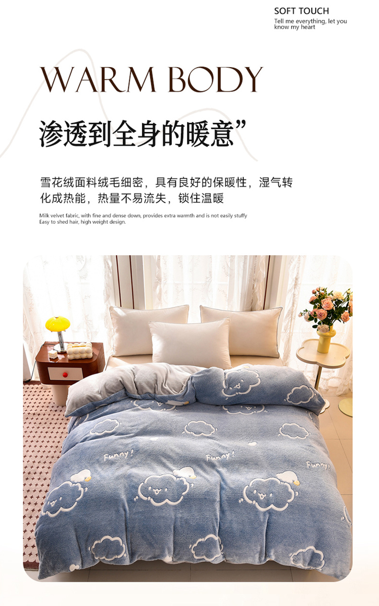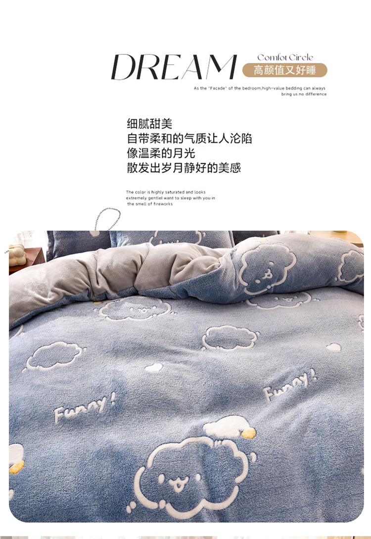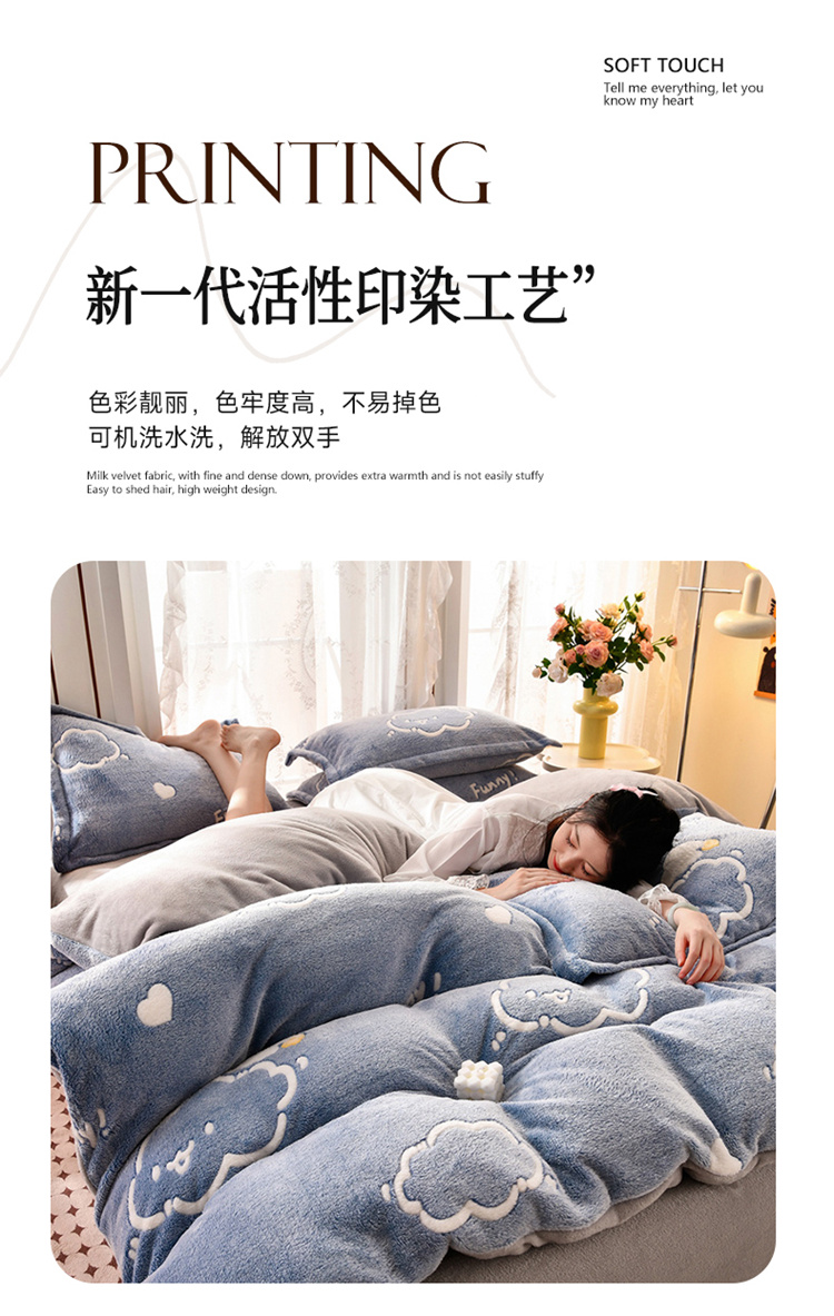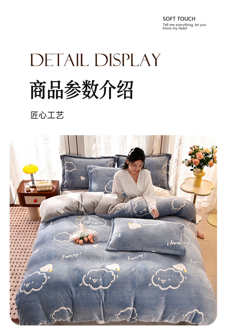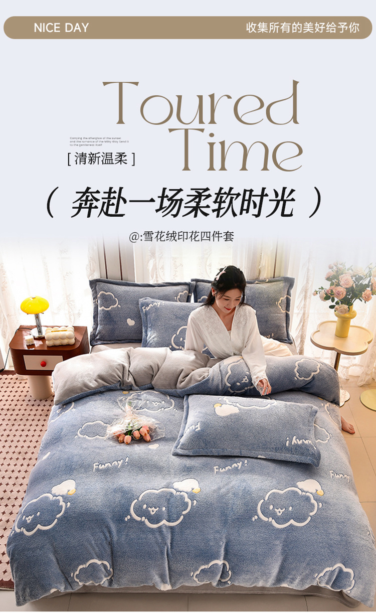 当前位置: 91家纺网 > 商品网购 > 床品套件 > 四件套 > 其它四件套 > 牵梦萦 2025新款雪花绒小清新印花四件套 云朵