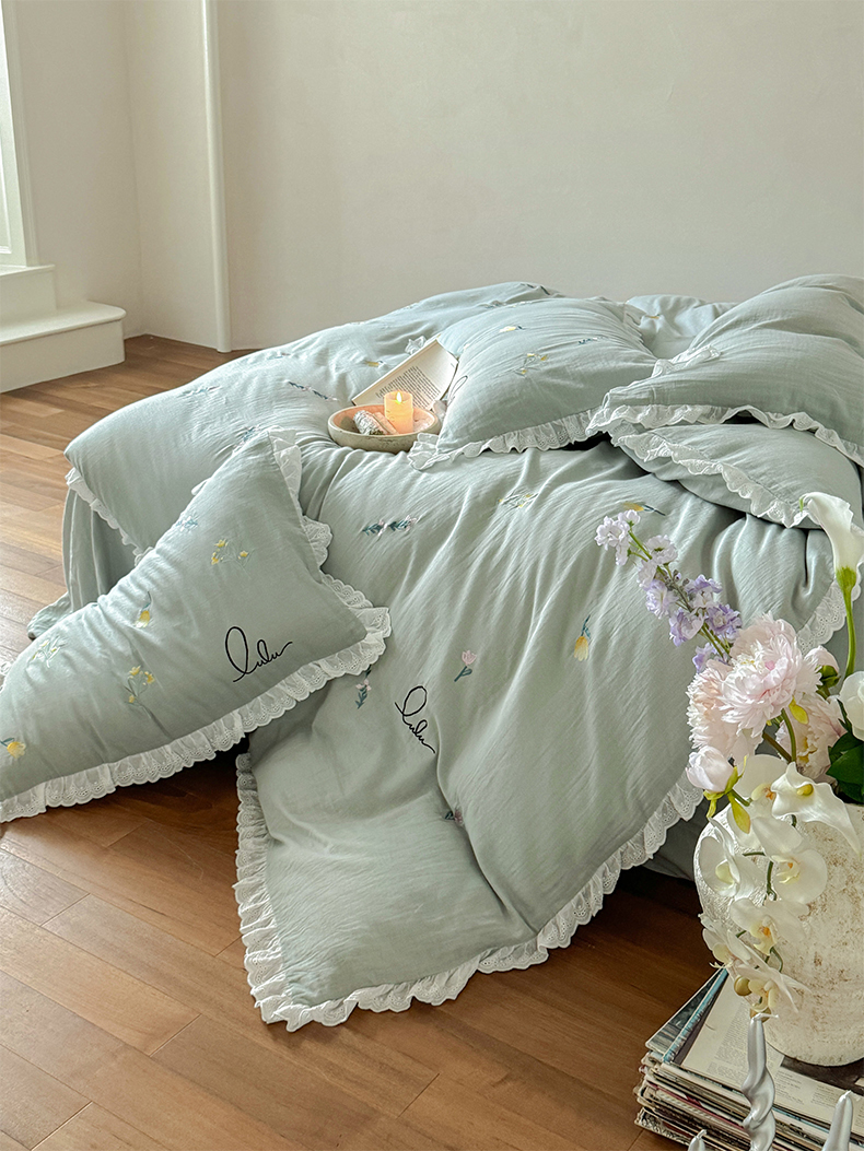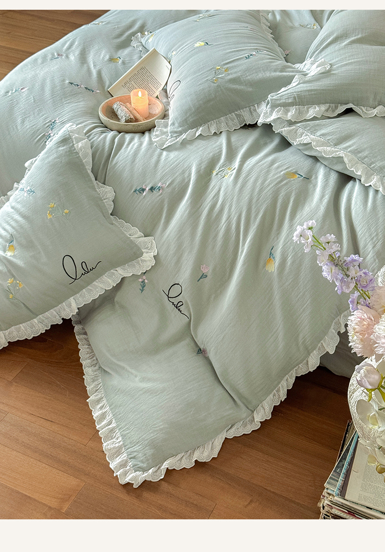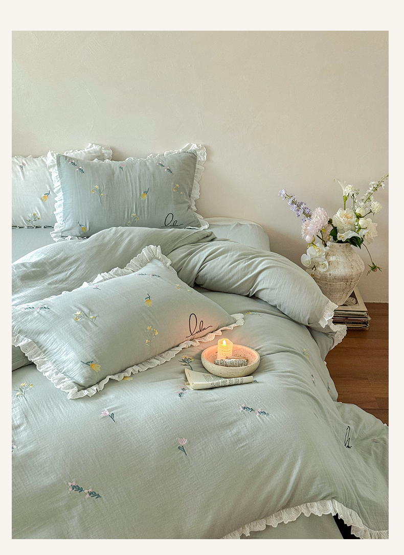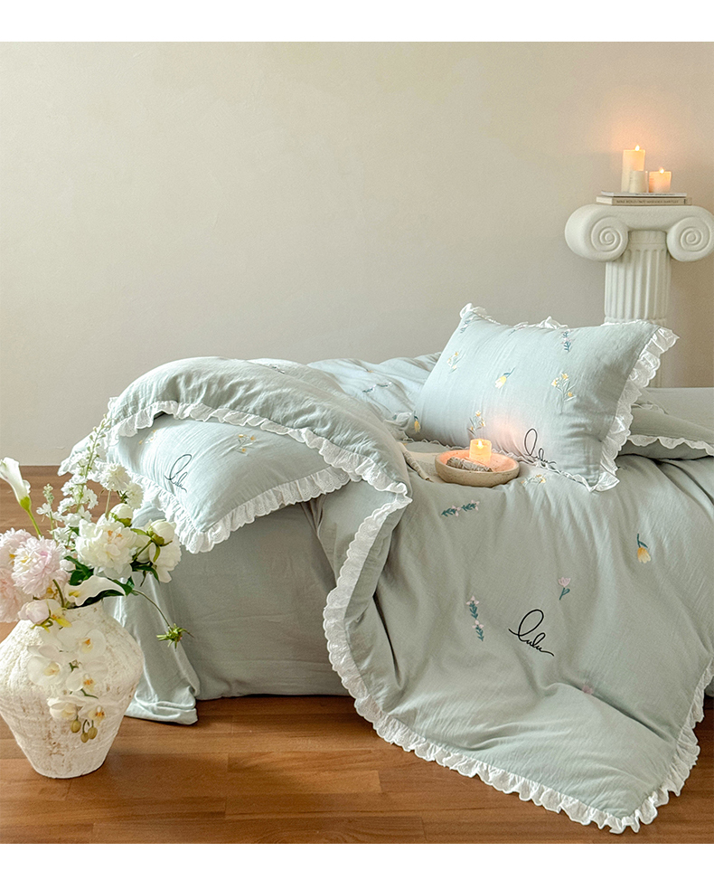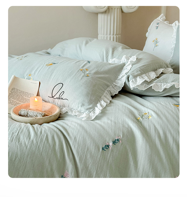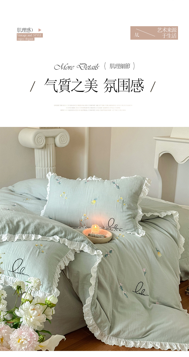 当前位置: 91家纺网 > 商品网购 > 床品套件 > 四件套 > 双层纱四件套 > FORTWO家纺原创设计(FOR TWO家纺) 2025新款40支全棉纯棉双层纱刺绣花边款四件套-小花园 小花园-绿