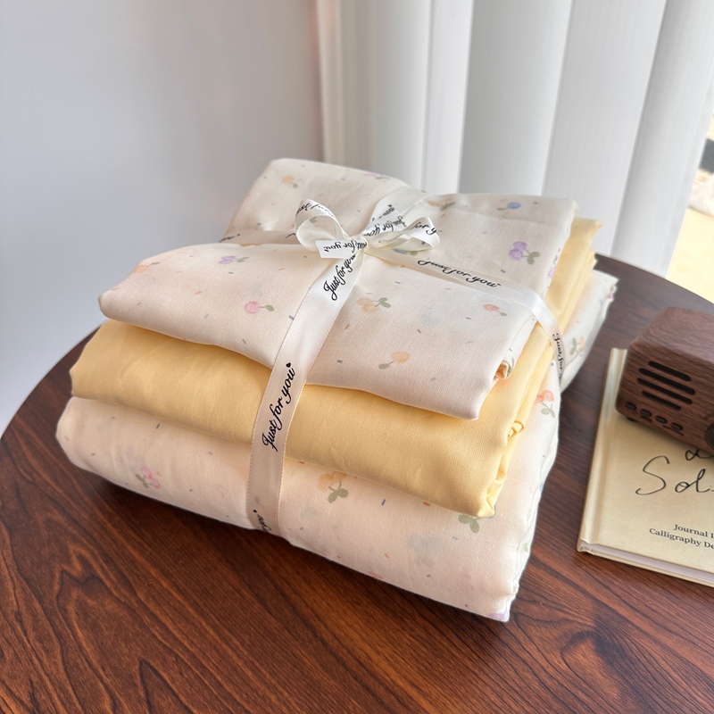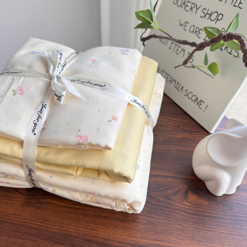 当前位置: 91家纺网 > 商品网购 > 床品套件 > 四件套 > 双层纱四件套 > 爱思佳 2024新款A类母婴全棉双层纱印花四件套直播热卖系列三 叠拍图 奶油樱桃
